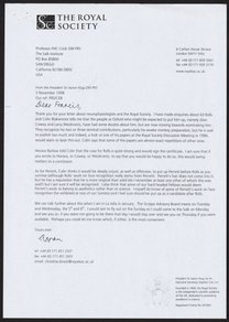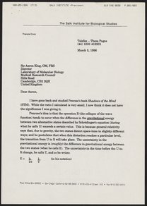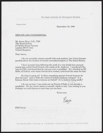 Francis Crick (1916-2004) sends Aaron Klug (1926-2018) a copy of the first page of a handwritten letter from Roger Penrose (1931-).