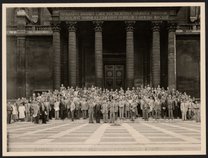 Group photograph in front of the Sorbonne Chapel in Paris, France