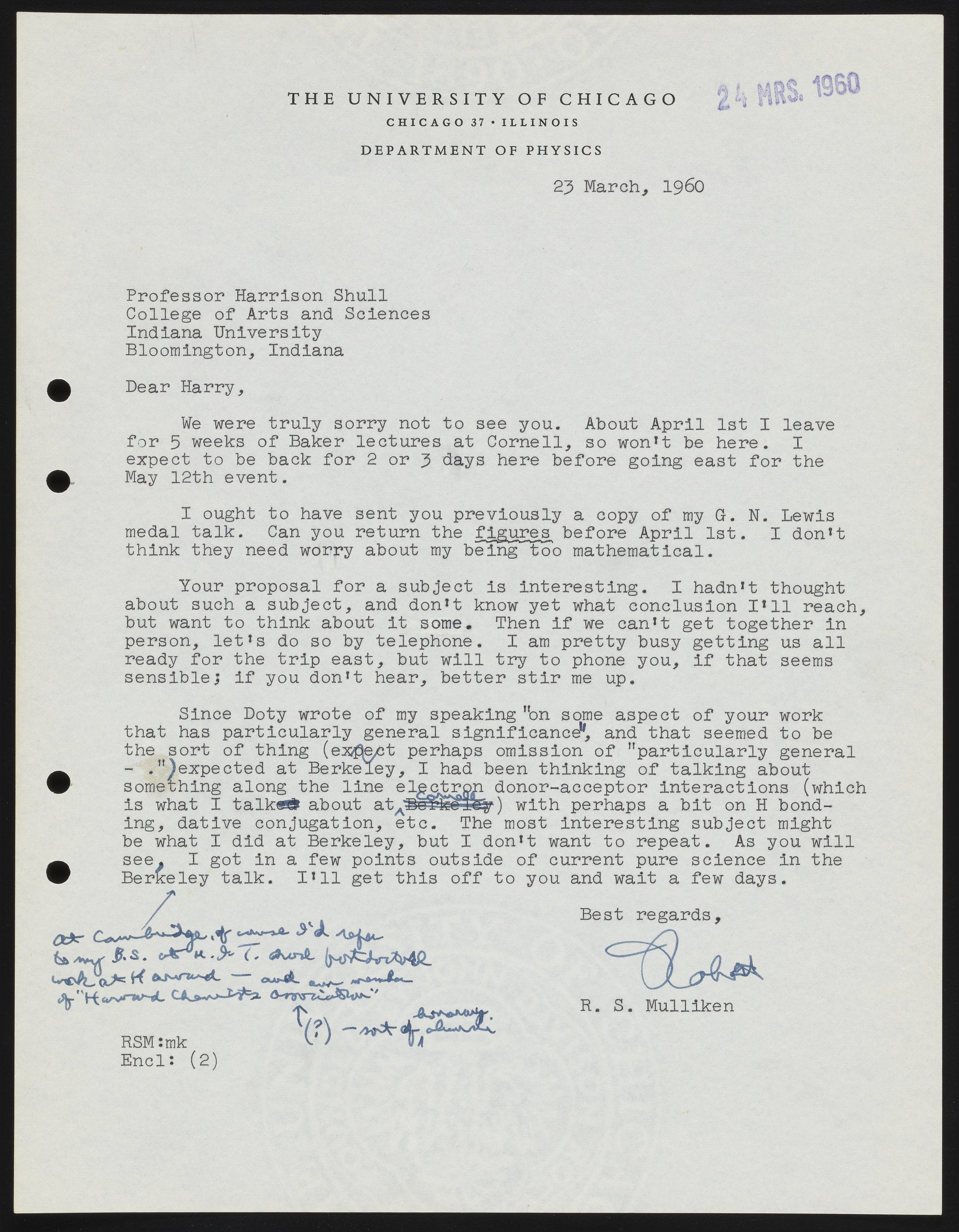 Letter from Robert S. Mulliken to Harrison Shull, 1960