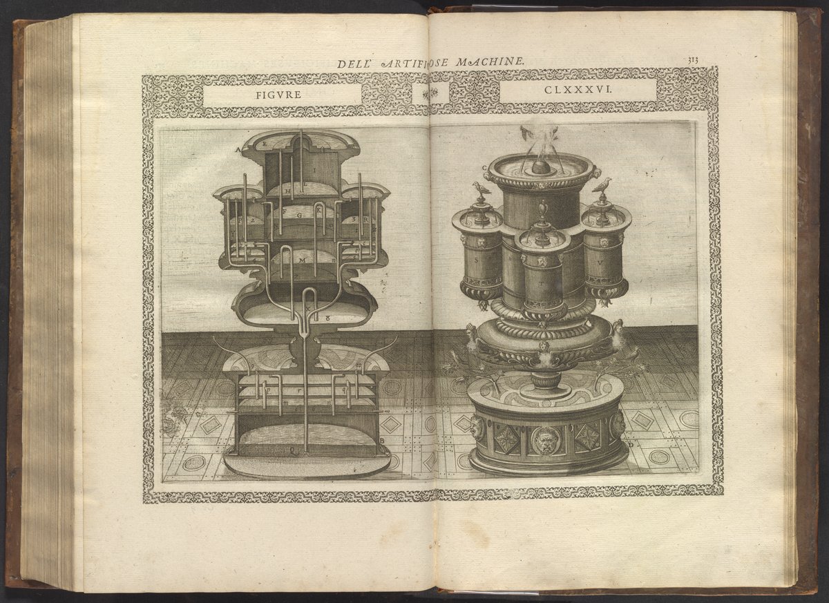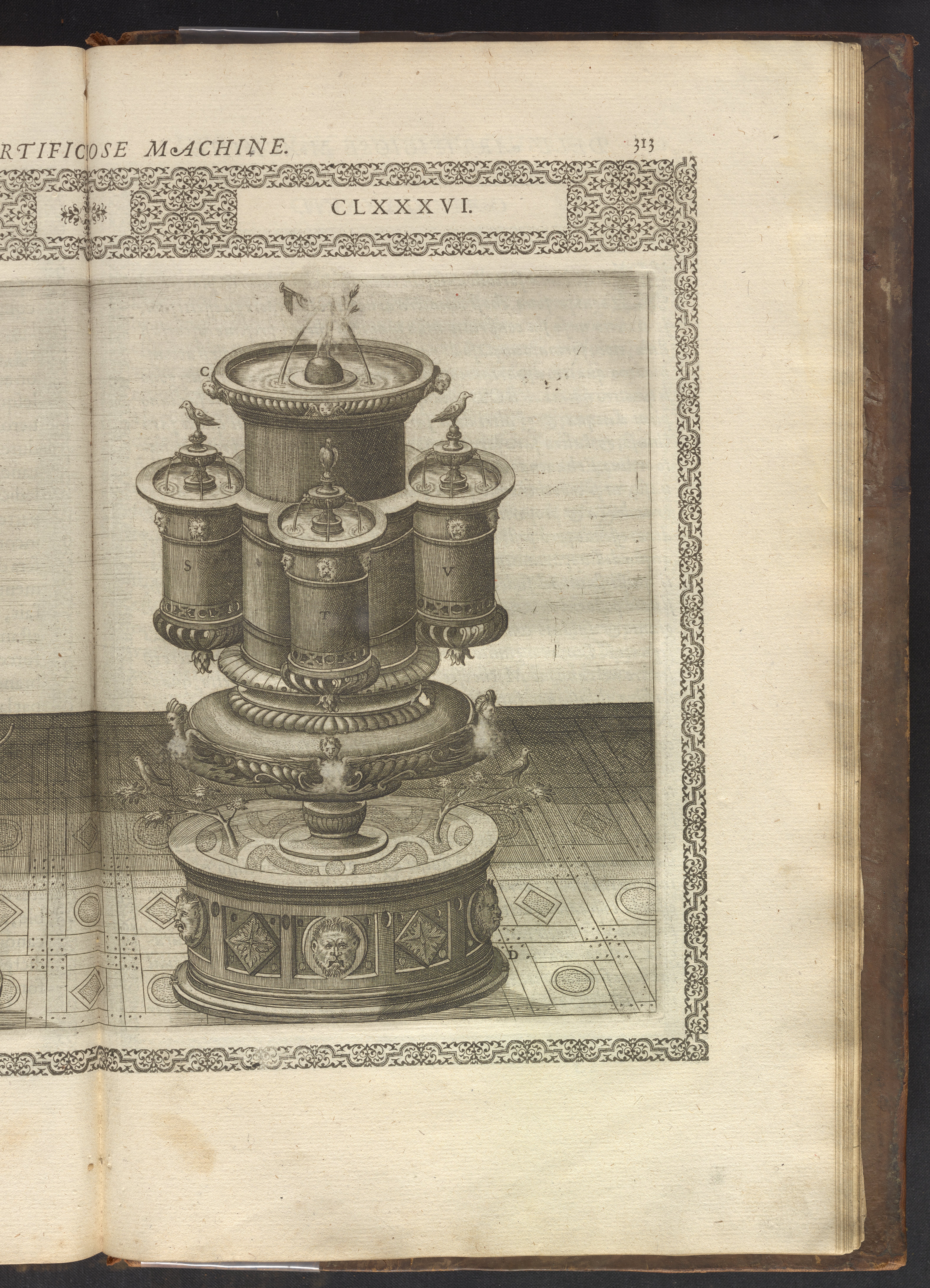 Plate 186: Fountain with chirping birds shown in elevation and cross-section