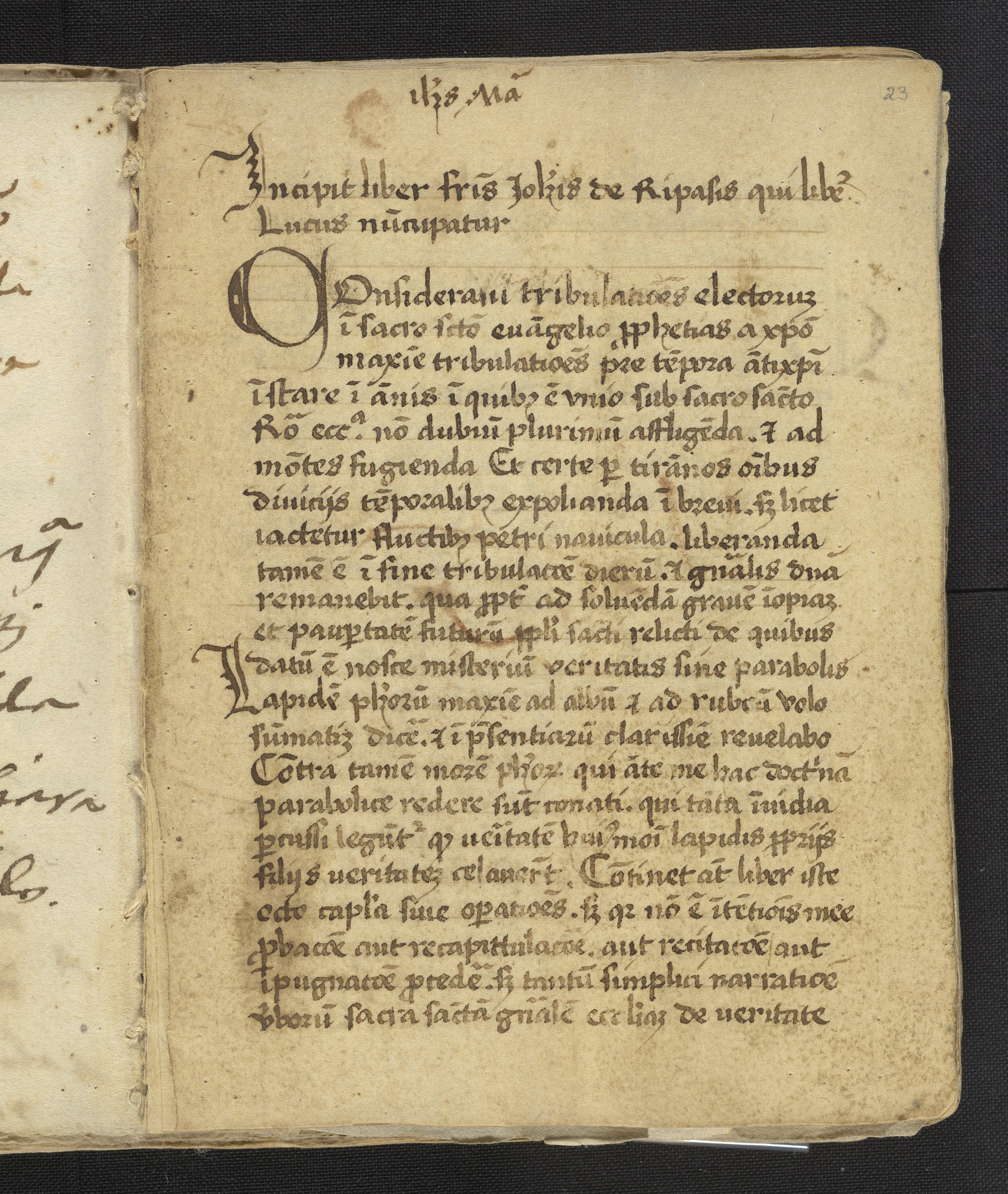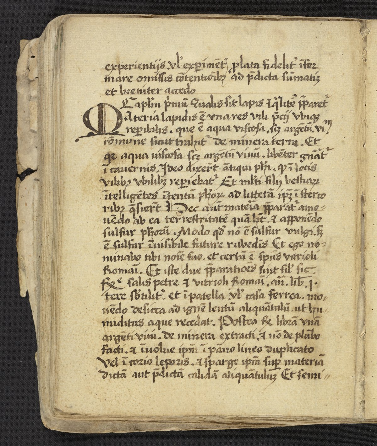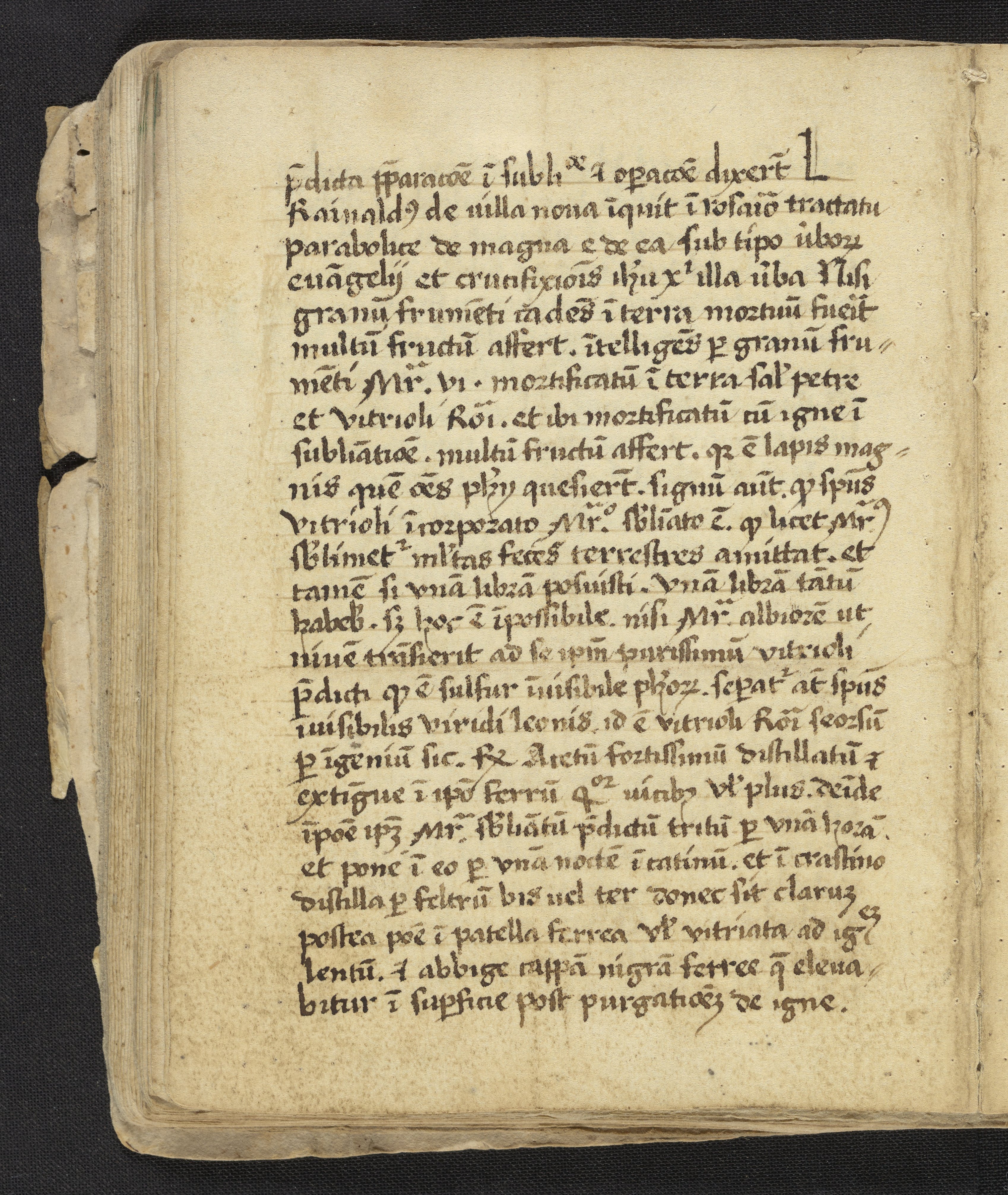 Small JPG1200 x 1422px — 372 KBLarge JPG2880 x 3413px — 1.9 MBFull-sized JPG3396 x 4024px — 2.5 MBOriginal fileTIFF — 3396 x 4024px — 39.2 MBFound in its original plain binding of parchment, this work was most likely compiled by a practitioner of alchemy and medicine. Containing a handwritten copy of Liber lucis by John of Rupescissa (Johannes de Rupescissa) which contains a recipe for the philosopher's stone. Also includes alchemical notes and extracts from Turba philosophorium by Giovanni Agostino Panteo, Voarchadumia contra alchimiam attributed to Pseudo-Geber (Jābir ibn Hayyān), Summa perfectionis magisterii, the redaction of Secretum secretorum by Roger Bacon, and Rosarium philosophorum ascribed to Arnold of Villanova.