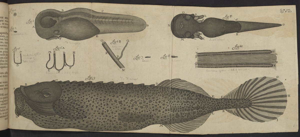 Leeuwenhoek, Antoni van. “Microscopic Study of Frog and Fish Specimens.” In Arcana Naturae Detecta. Delft, Netherlands: Henrik van Kroonevelt, 1695. https://digital.sciencehistory.org/works/02870x111.