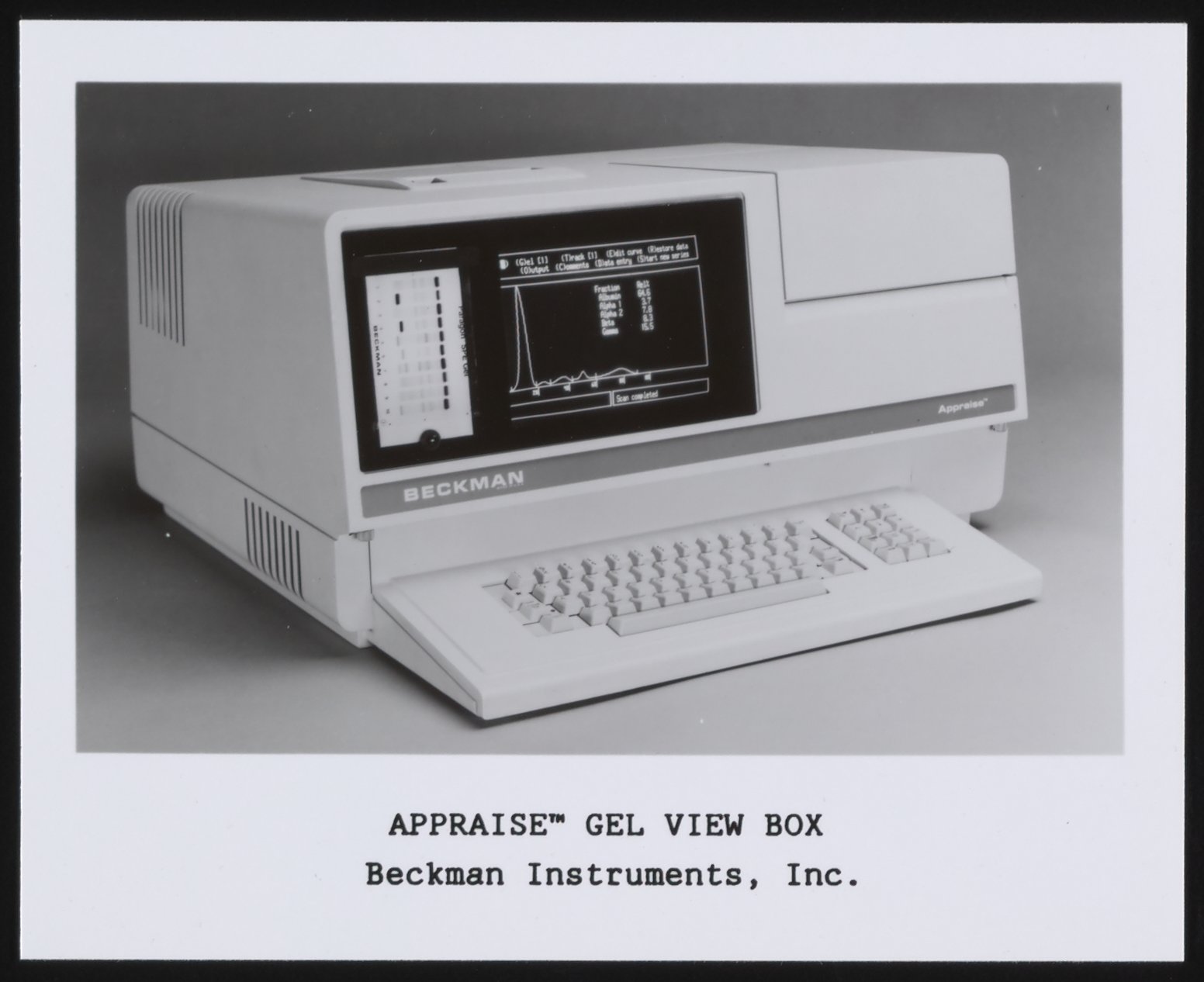 “Beckman Appraise Densitometer with Gel View Box,” 1980–1989. Beckman Historical Collection, Box 77. Science History Institute. Philadelphia. https://digital.sciencehistory.org/works/05741r744.