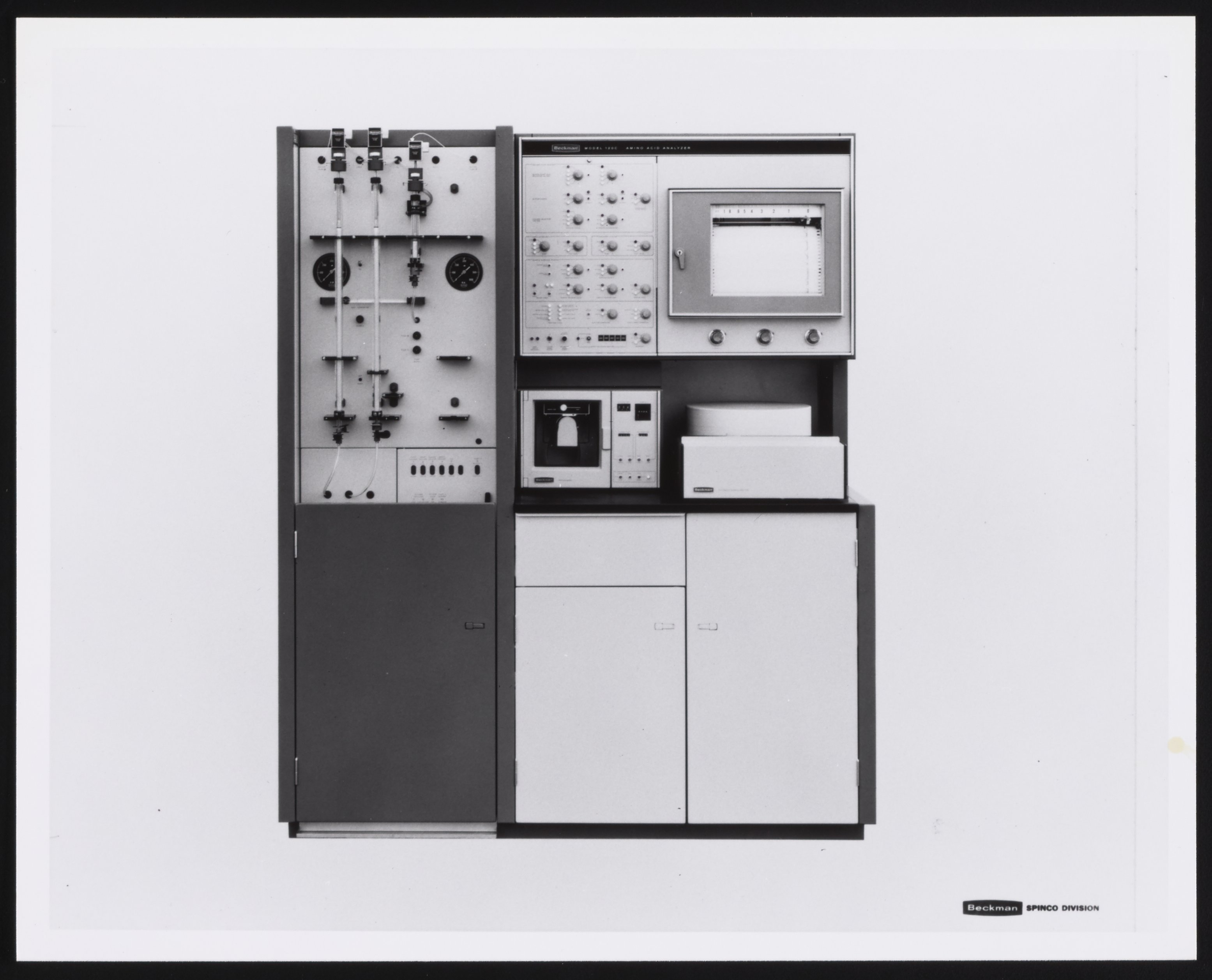 “Beckman Model 121-C Amino Acid Analyzer,” 1969–1978. Beckman Historical Collection, Box 77. Science History Institute. Philadelphia. https://digital.sciencehistory.org/works/08612n67z.
