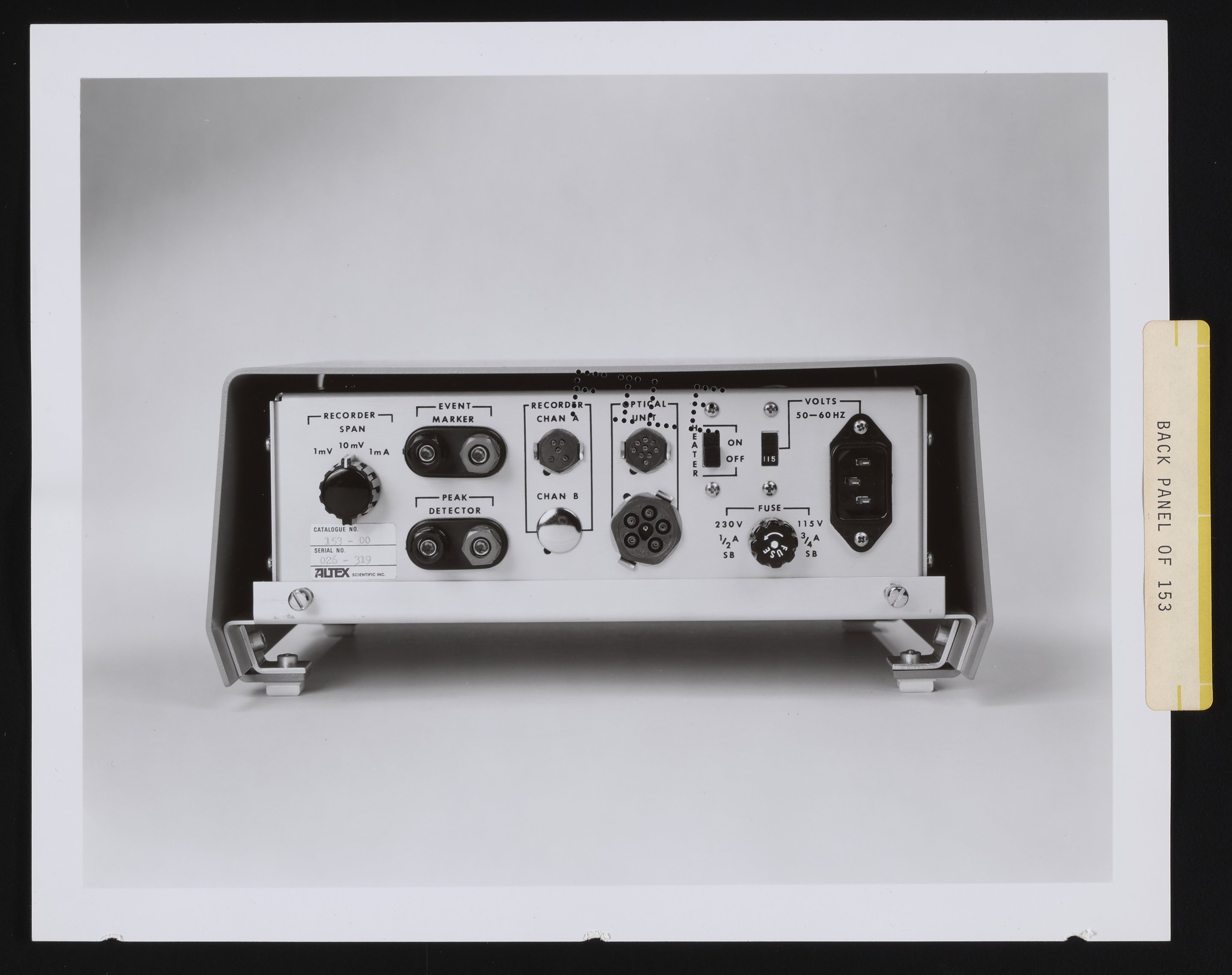 Herrington-Olson Photography. “Altex Model 153 UV Detector Back Panel,” 1978. Beckman Historical Collection, Box 83. Science History Institute. Philadelphia. https://digital.sciencehistory.org/works/08612n75n.