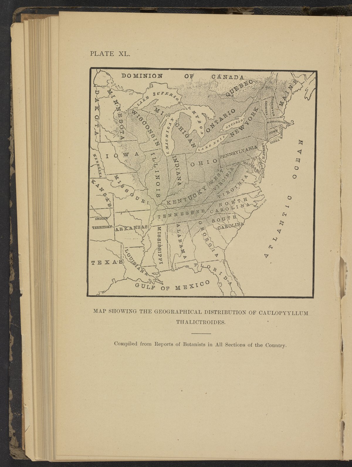 Plate XL: Map showing the geographical distribution of caulopyyllum thalictroides