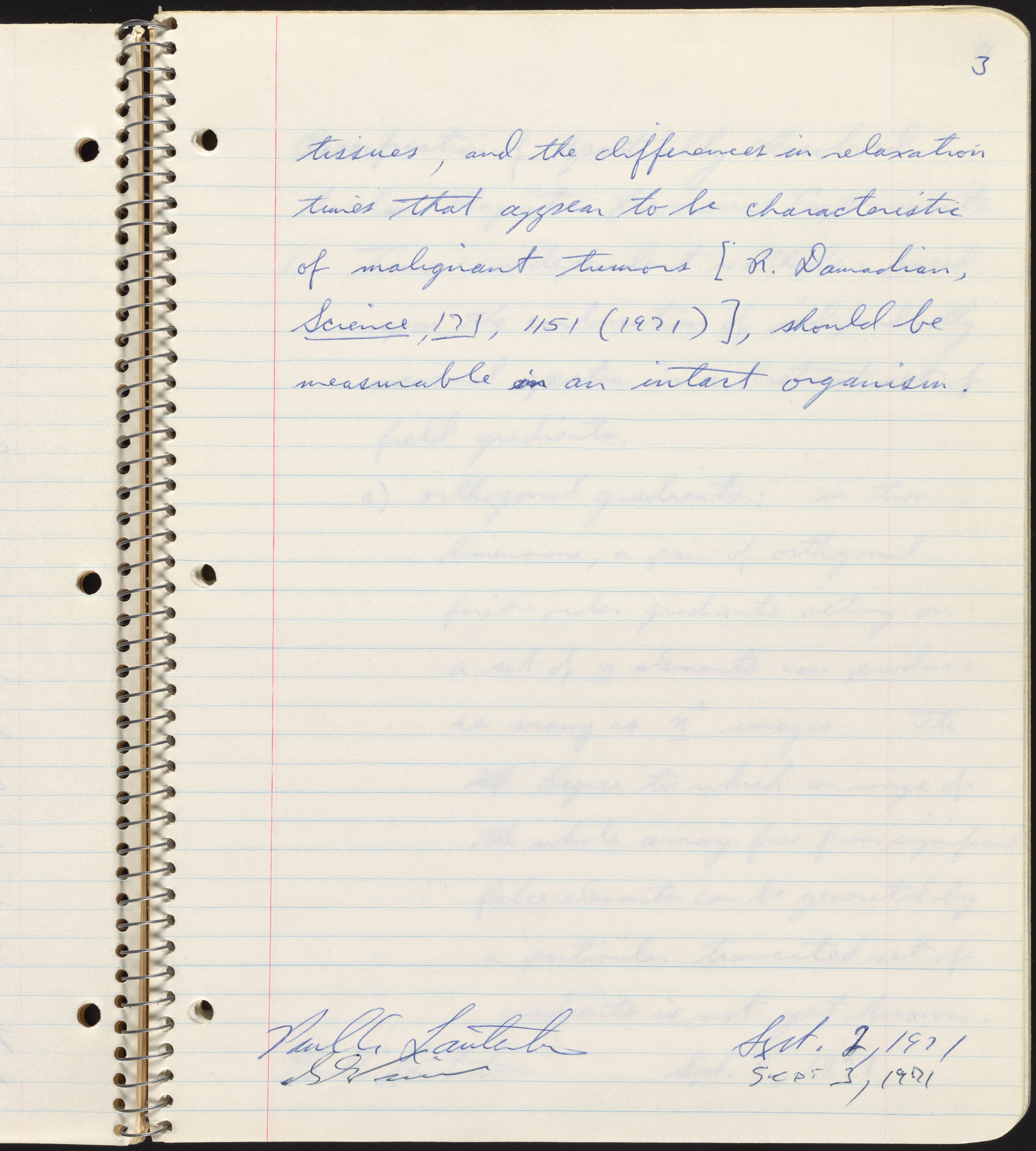 Lauterbur, Paul C. “Paul C. Lauterbur Notebook,” 1971. Box 1. Science History Institute. Philadelphia. https://digital.sciencehistory.org/works/0c483j46q.