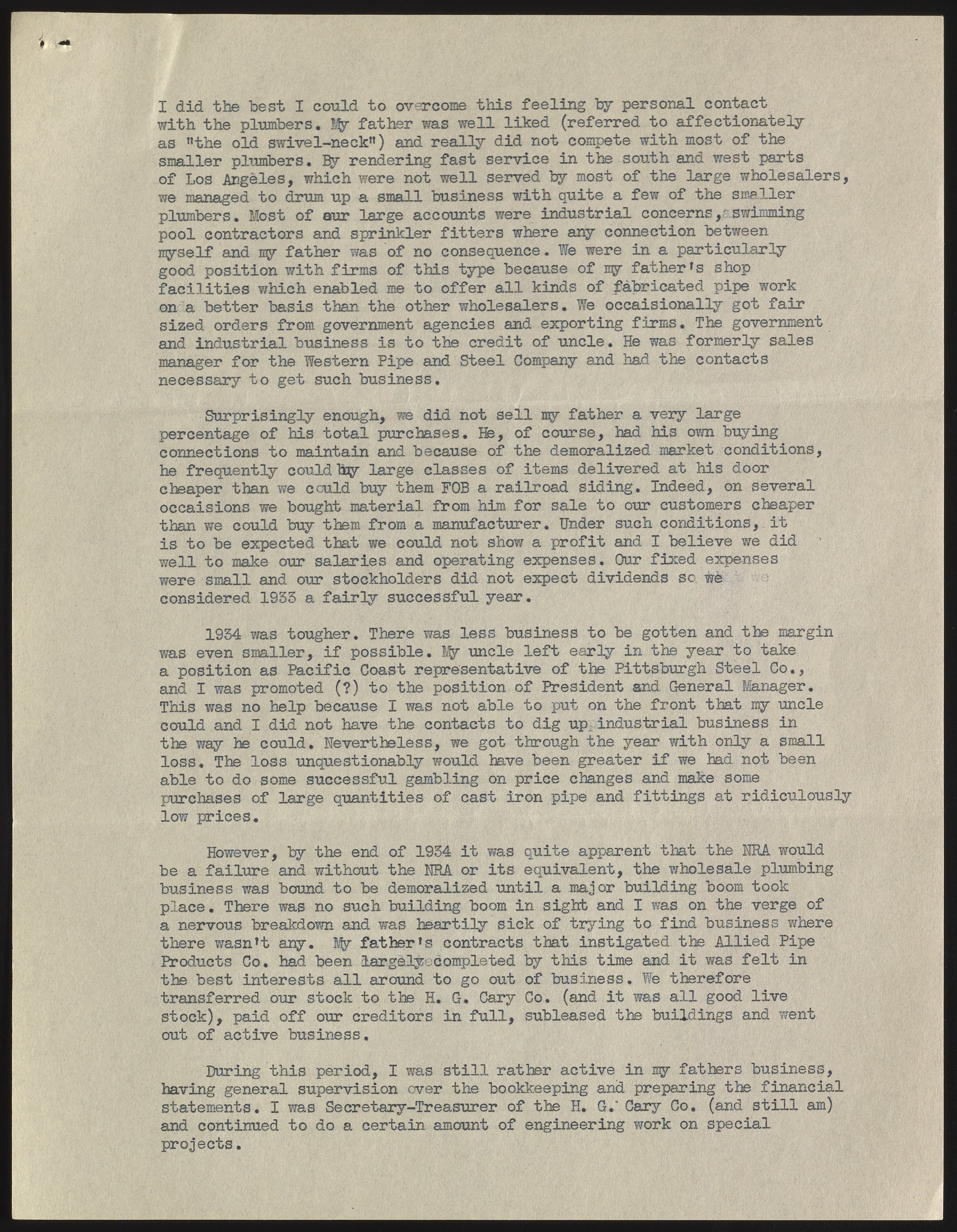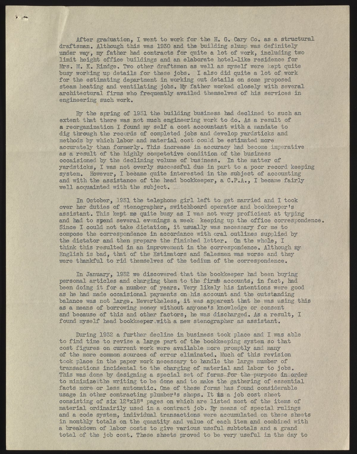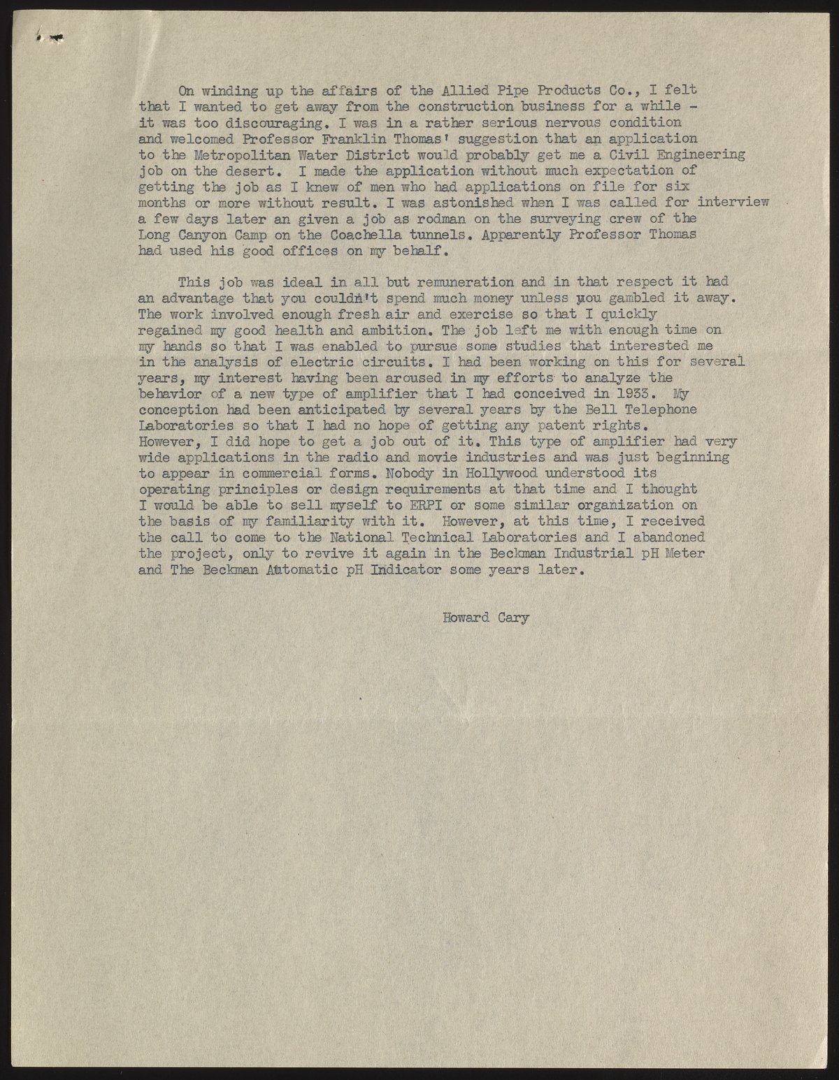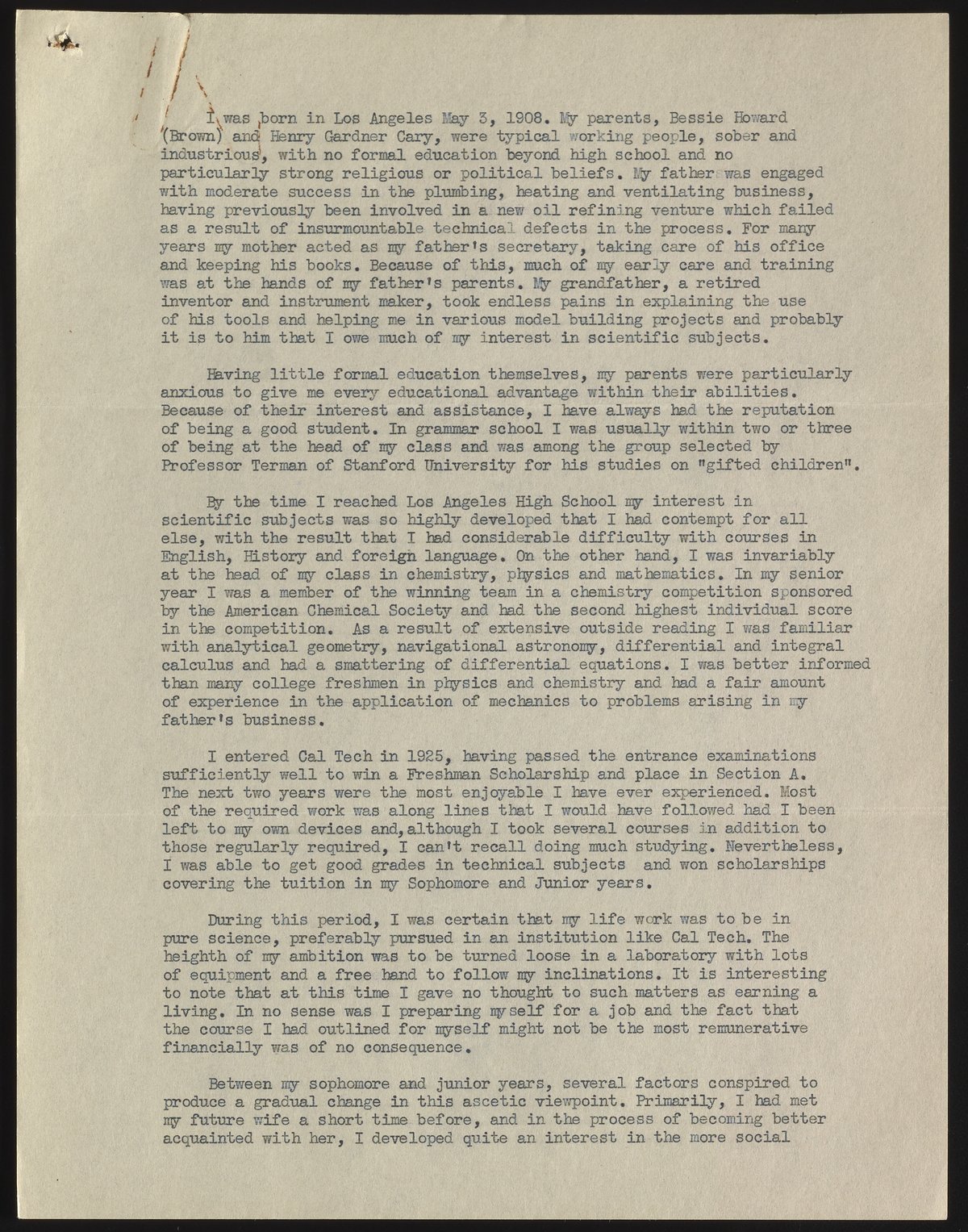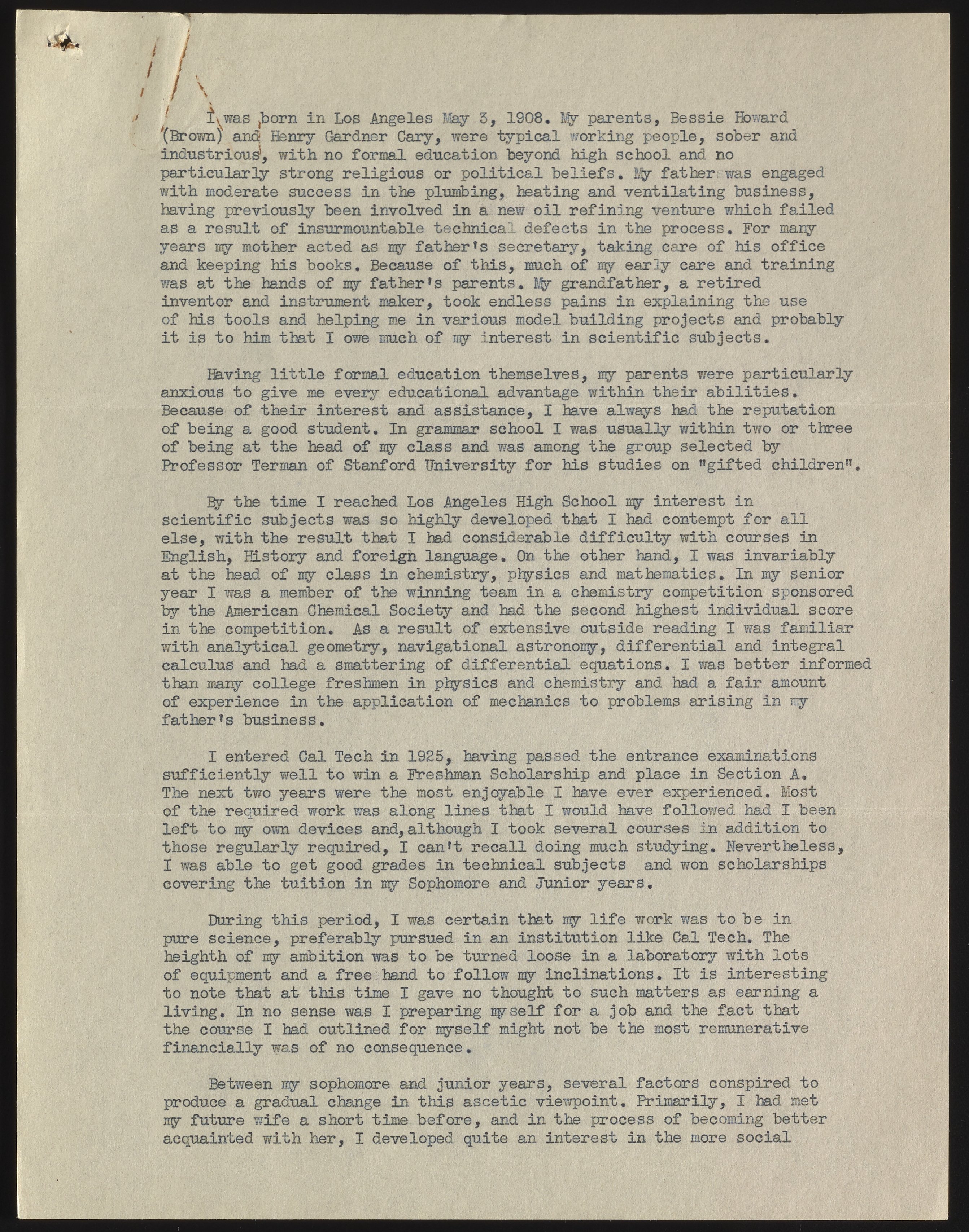 Autobiography of Howard Cary