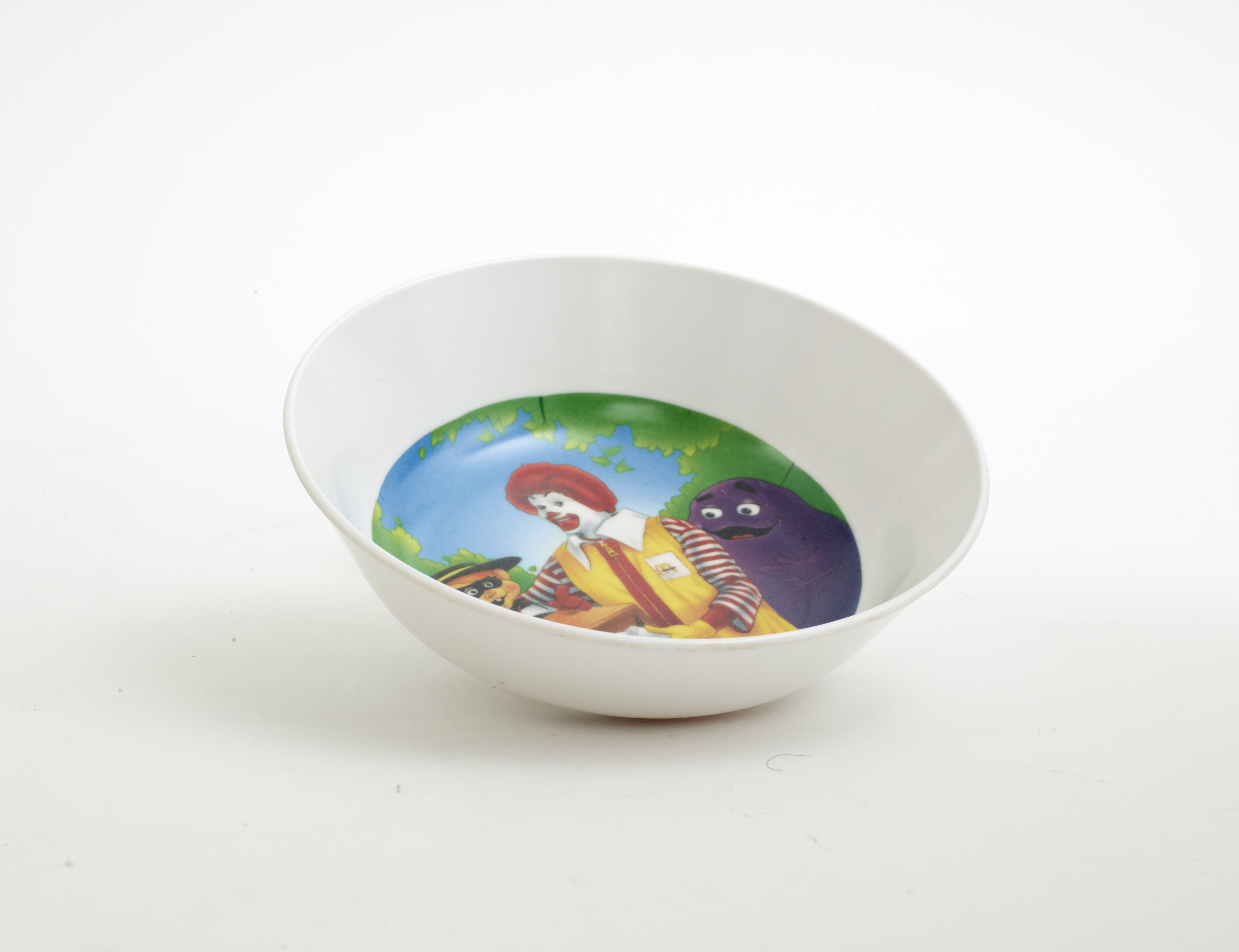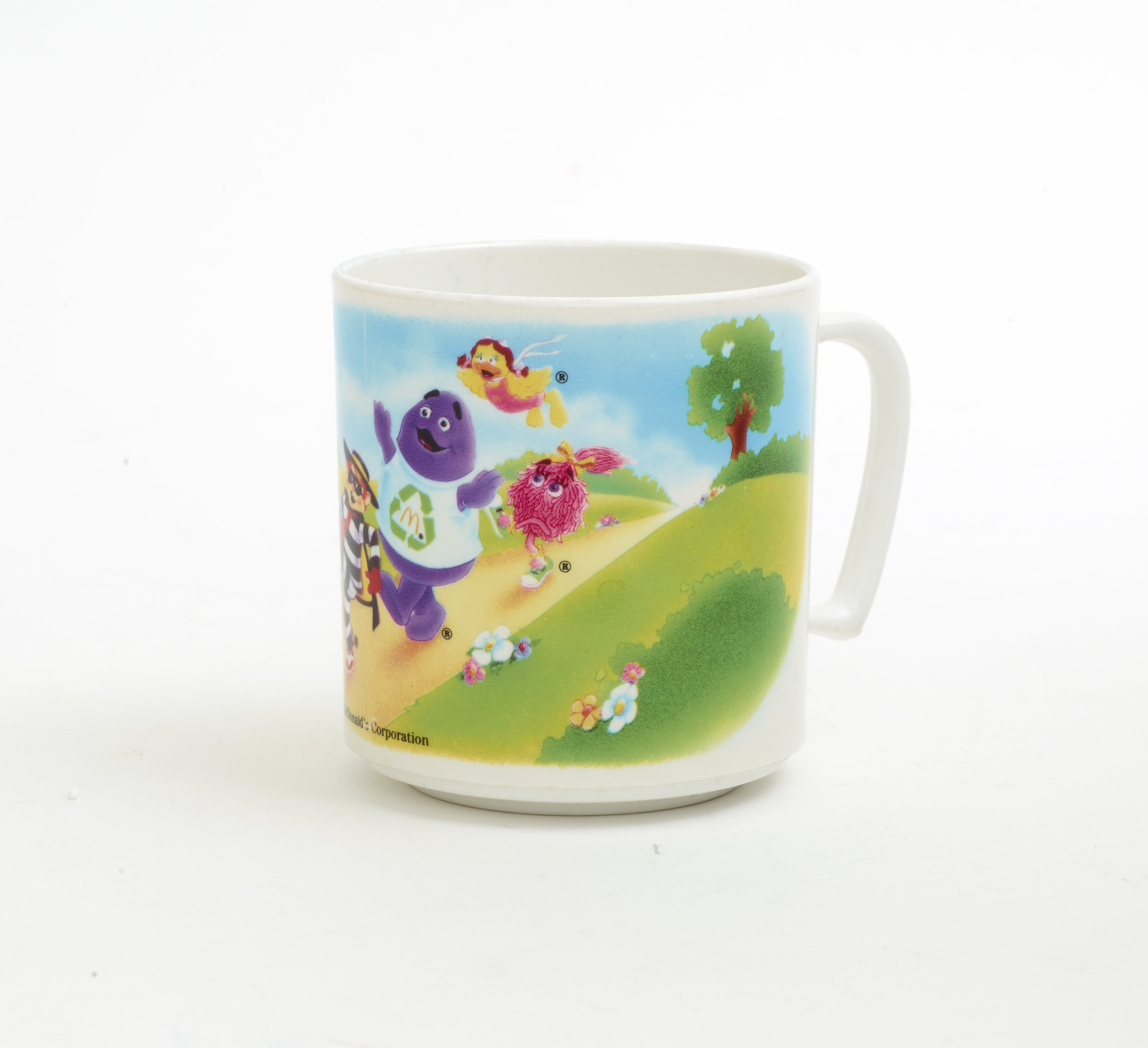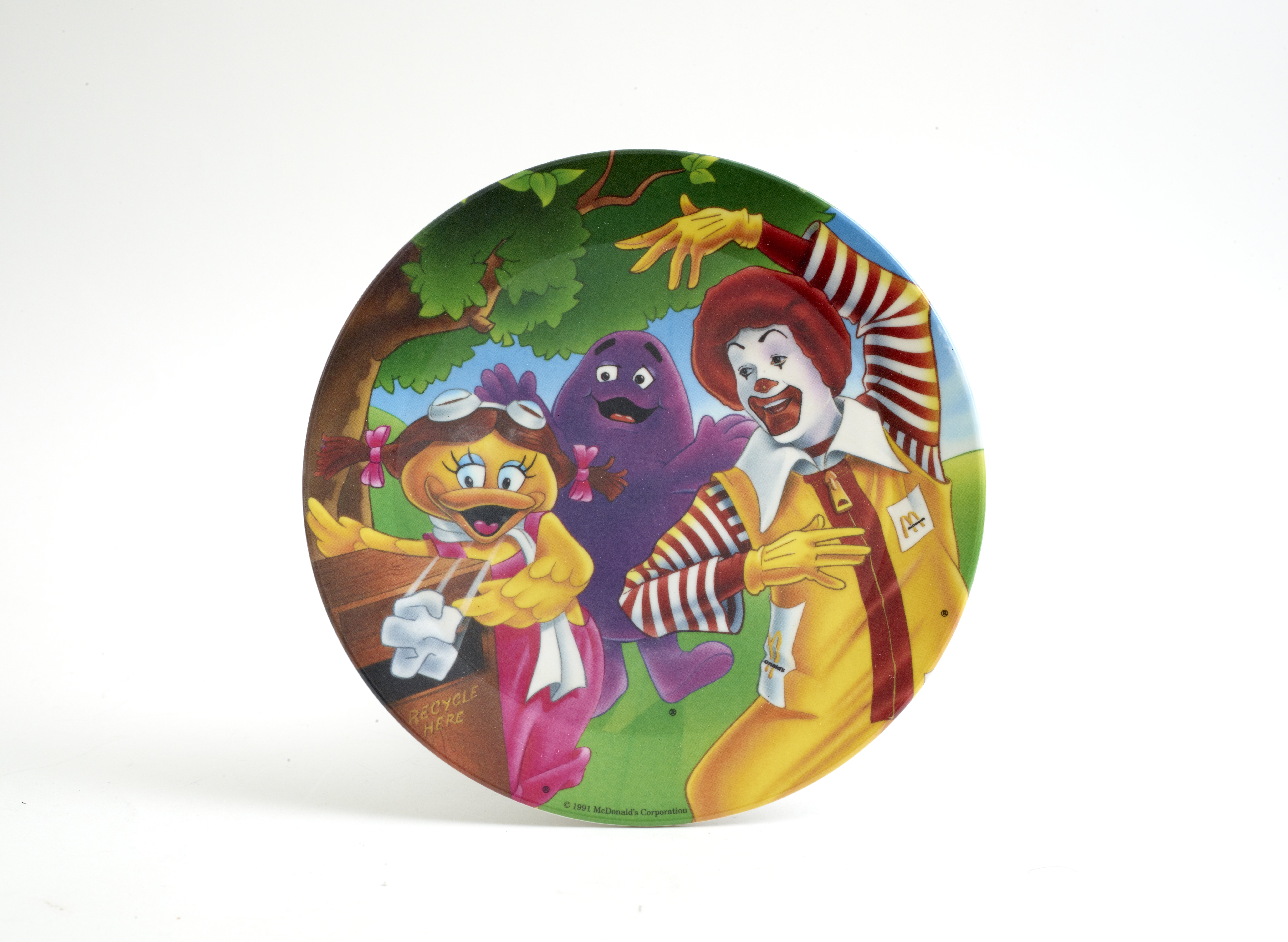 Small JPG1200 x 878px — 112 KBLarge JPG2880 x 2108px — 397 KBFull-sized JPG9609 x 7032px — 3.7 MBOriginal fileTIFF — 9609 x 7032px — 193 MBA 3-piece plastic tableware set featuring McDonald's Corporation character mascots, Ronald McDonald, the Hamburgler, Grimace, a pink "Fry Kid", and Birdie the Early Bird. The characters are promoting the eco-friendly habit of recycling.