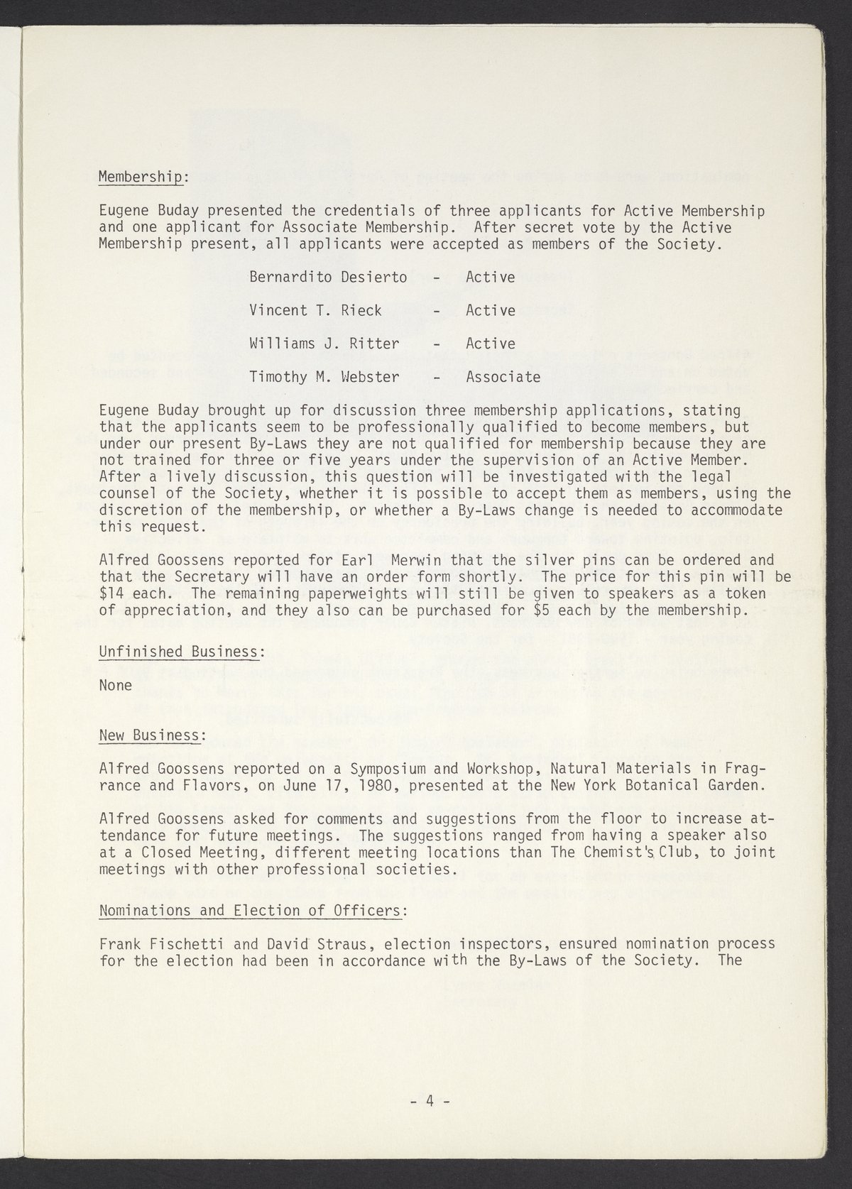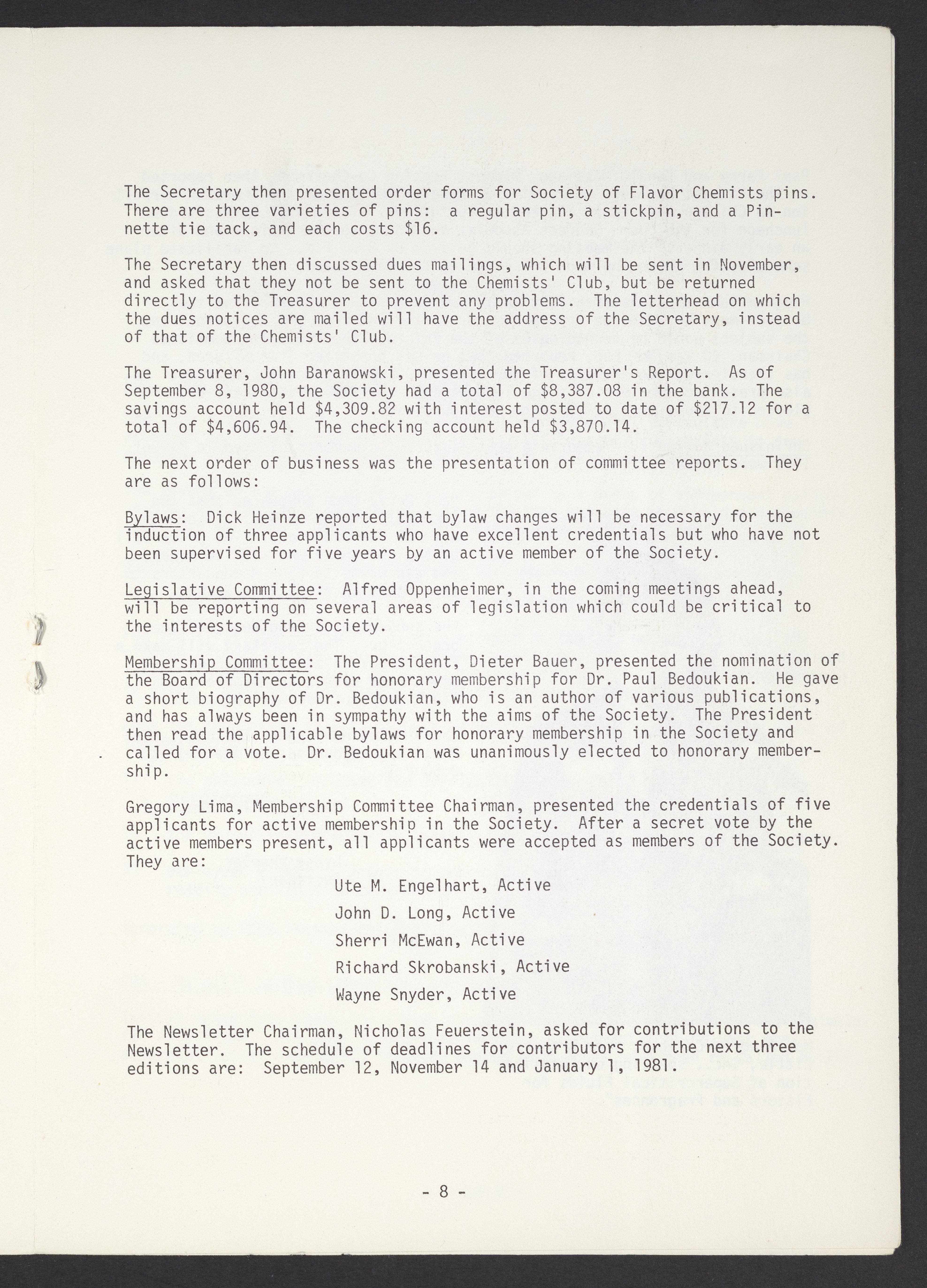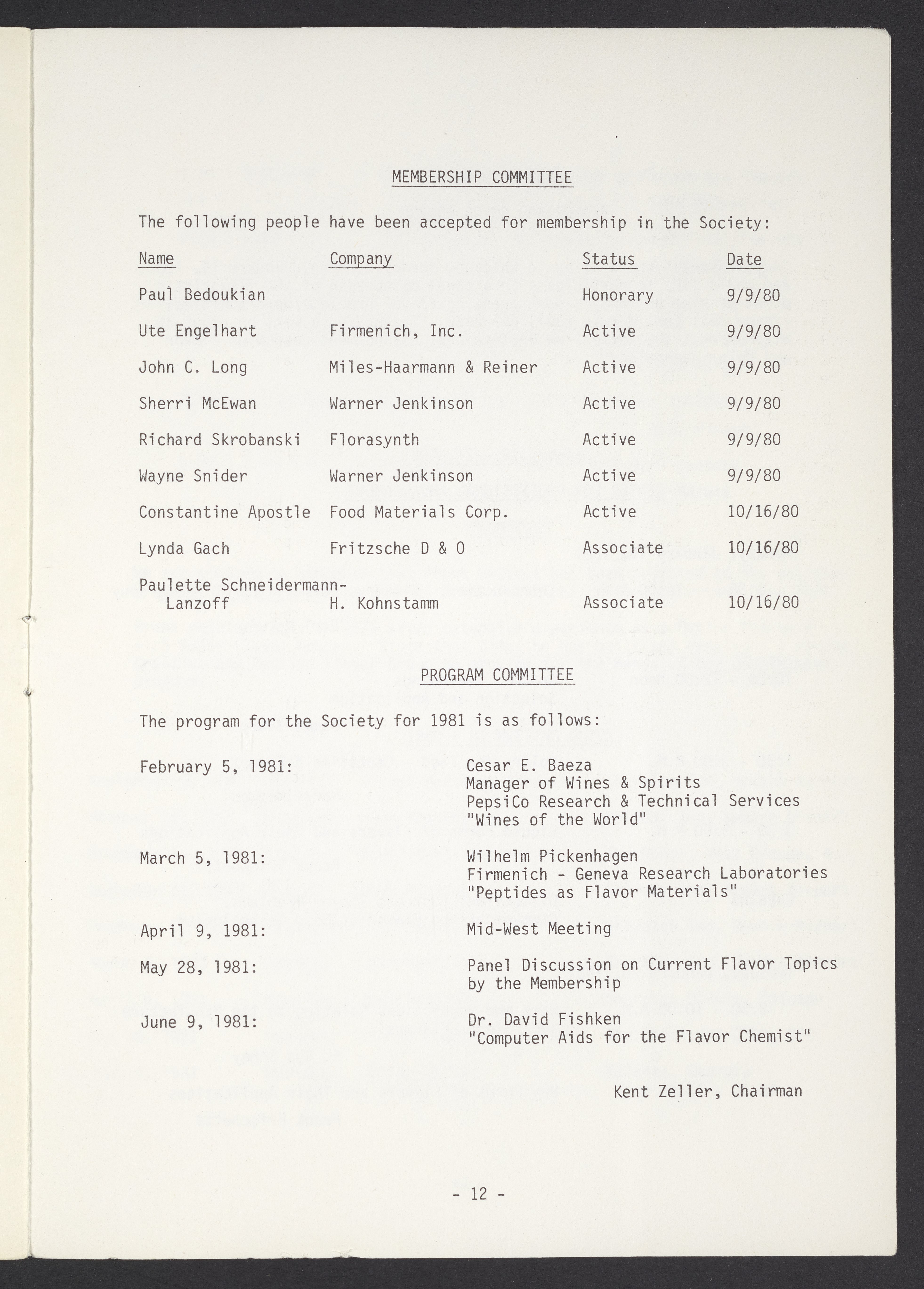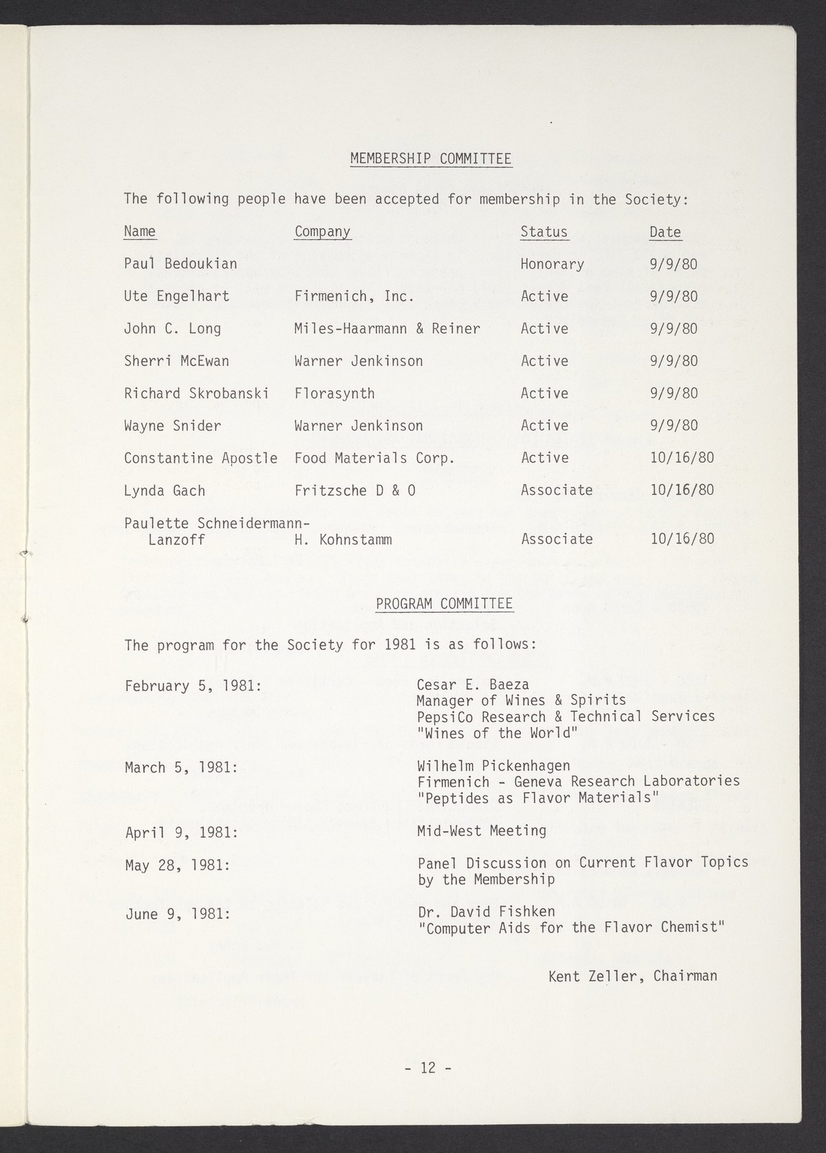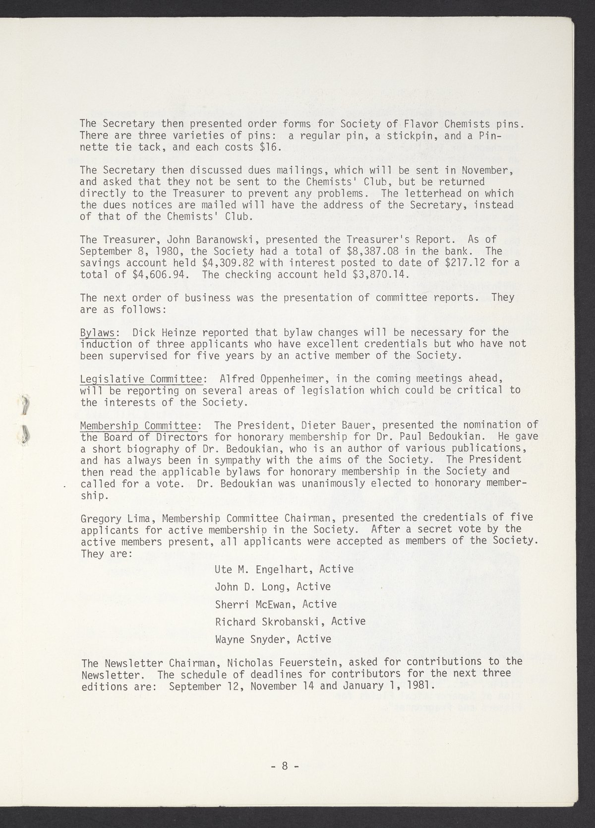 Society of Flavor Chemists. “Society of Flavor Chemists Newsletter, December 1980,” December 5, 1980. Society of Flavor Chemists Newsletters and Certificate of Incorporation, Box 1, Folder 1. Science History Institute. Philadelphia. https://digital.sciencehistory.org/works/14z0nx4.