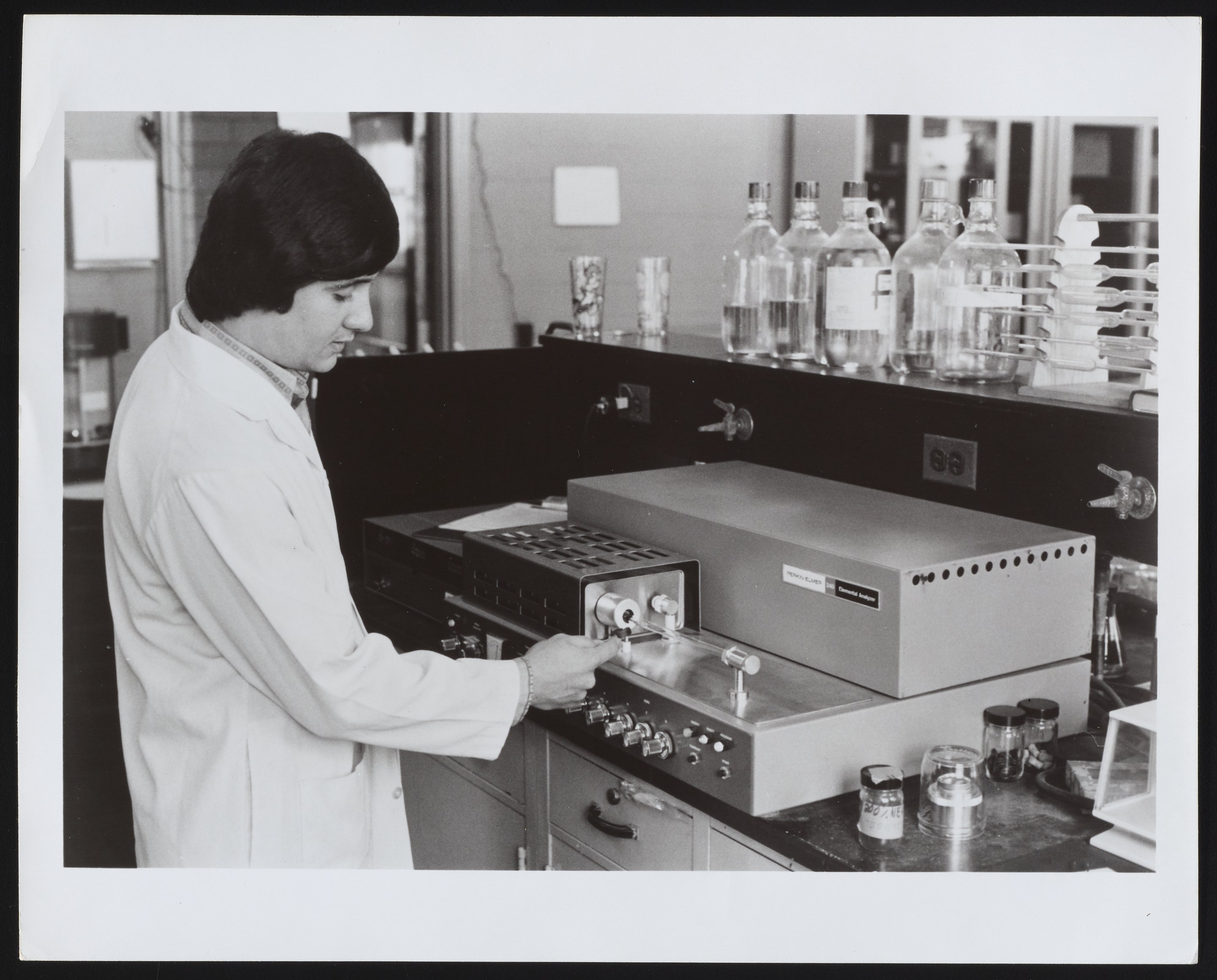 Perkin-Elmer Corporation. “Perkin-Elmer Elemental Analyzer in Use at Coal Research Bureau,” 1970–1979. Photographs from the Perkin-Elmer-Applera Collection, Box 5. Science History Institute. Philadelphia. https://digital.sciencehistory.org/works/1544bp90c.