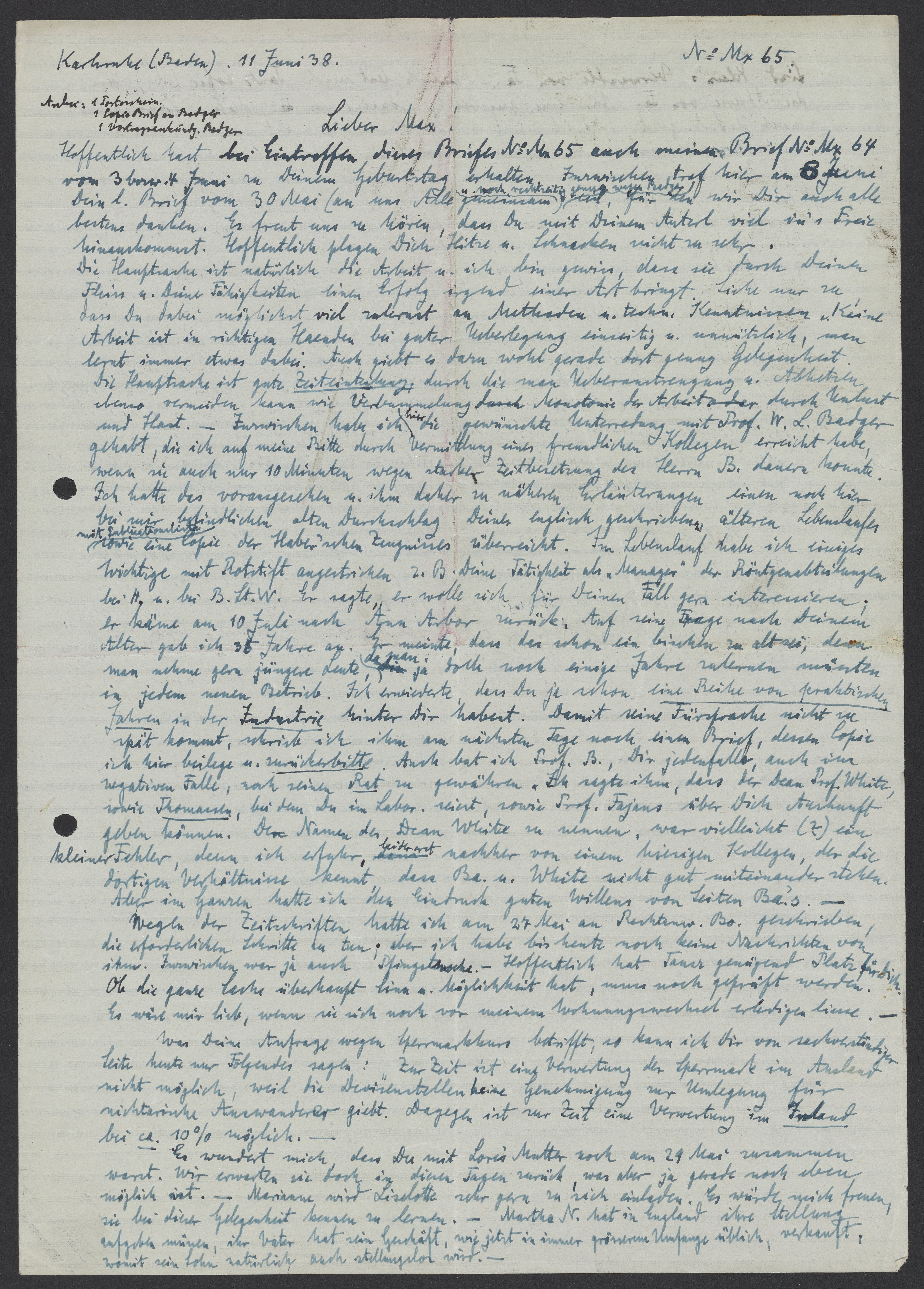 Letter from Georg Bredig to Max Bredig, June 11, 1938