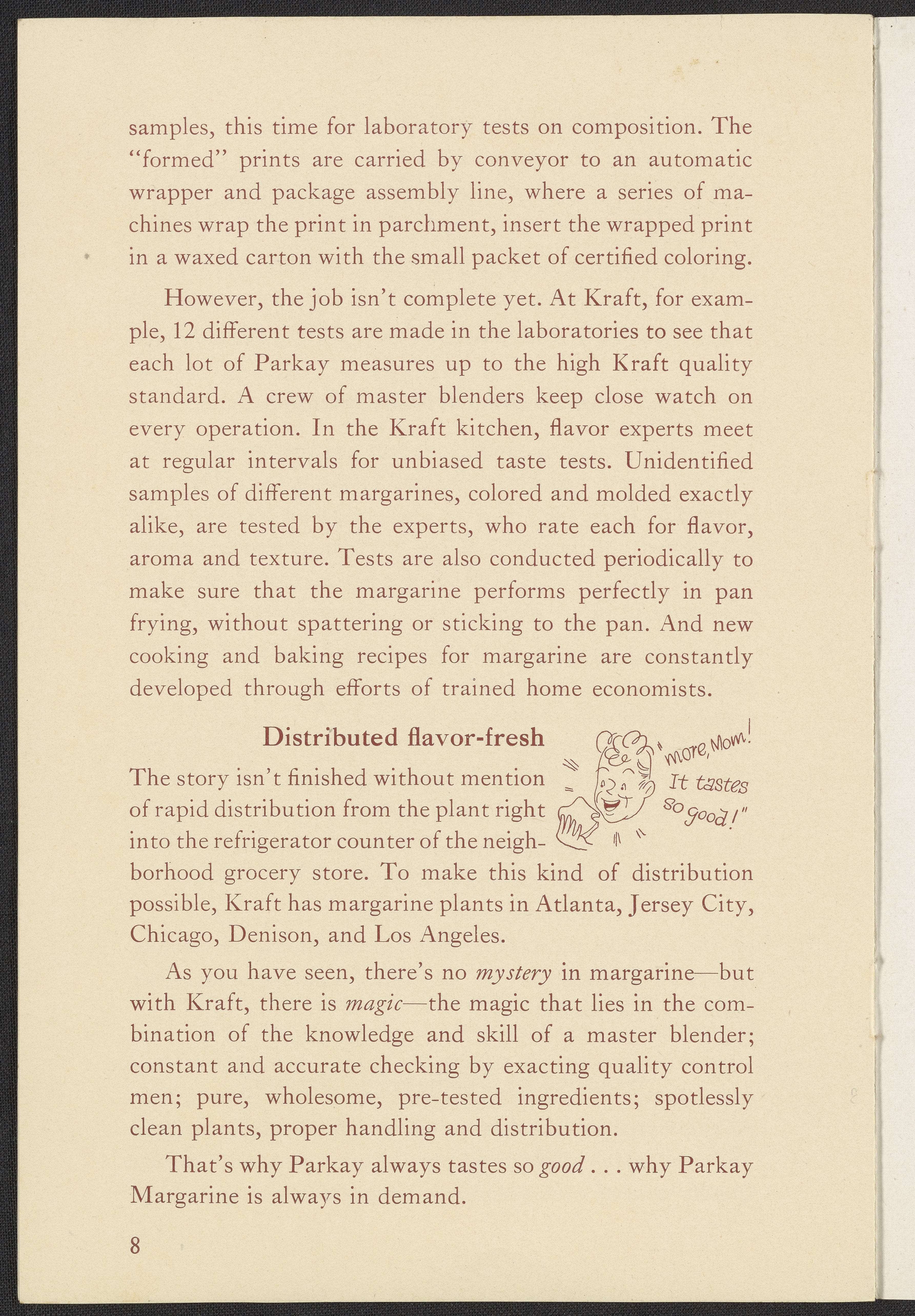 Kraft Foods Company. “Taking the MYSTERY Out of MARGARINE.” Chicago, Illinois, 1947. Science History Institute. Philadelphia. https://digital.sciencehistory.org/works/1g05fc82p.