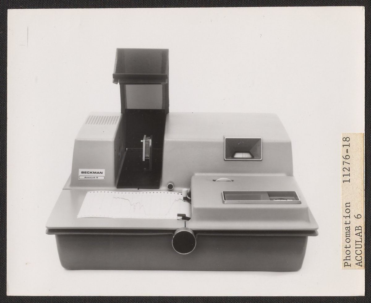 Hesketh, Dean D. “Beckman Acculab 6 Spectrophotometer with Open Sample Compartment,” 1973–1982. Beckman Historical Collection, Box 84. Science History Institute. Philadelphia. https://digital.sciencehistory.org/works/1j92g7694.