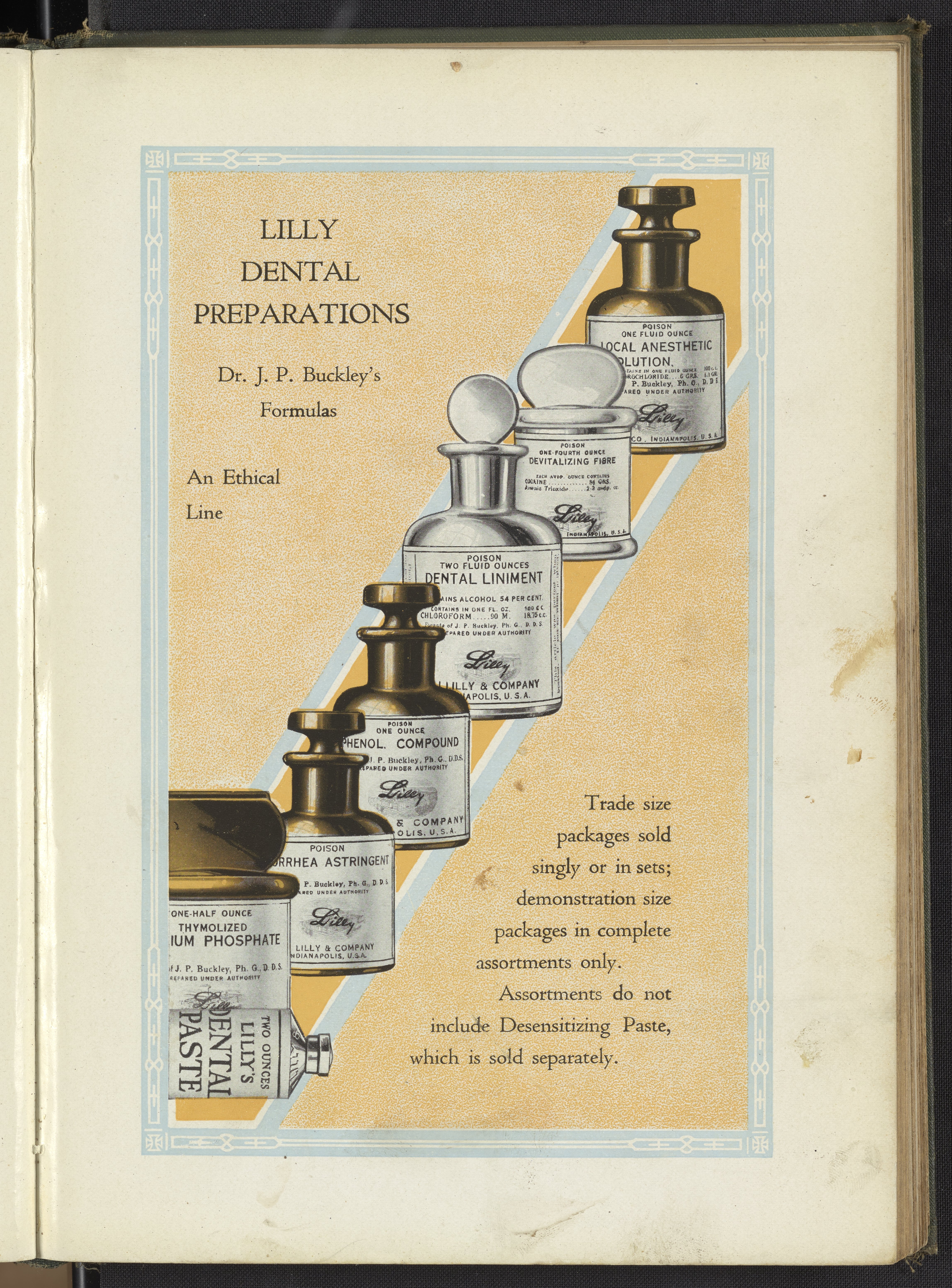 Eli Lilly and Company. “Lilly Dental Preparations.” Hand Book of Pharmacy and Therapeutics. Indianapolis, Indiana, circa 1919. https://digital.sciencehistory.org/works/1r66j2269.