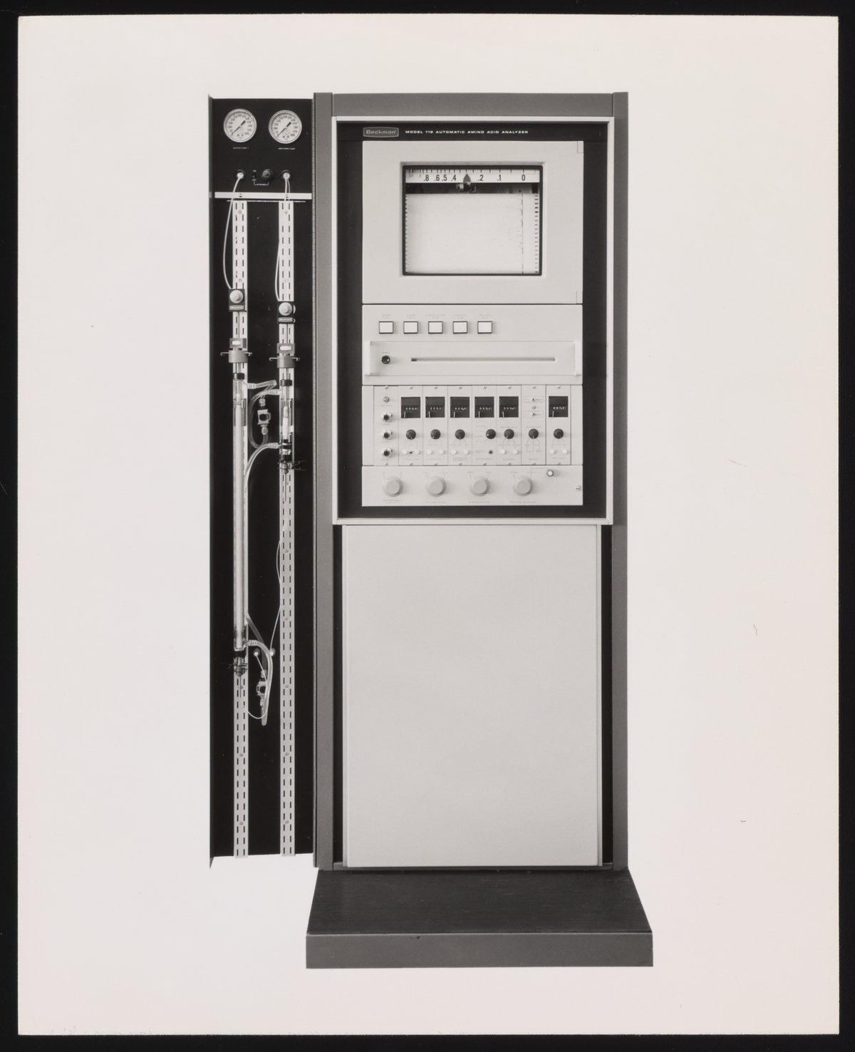 Illig, Russell. “Beckman/Spinco Model 119 Automatic Amino Acid Analyzer,” n.d. Beckman Historical Collection, Box 77. Science History Institute. Philadelphia. https://digital.sciencehistory.org/works/1v53jx087.