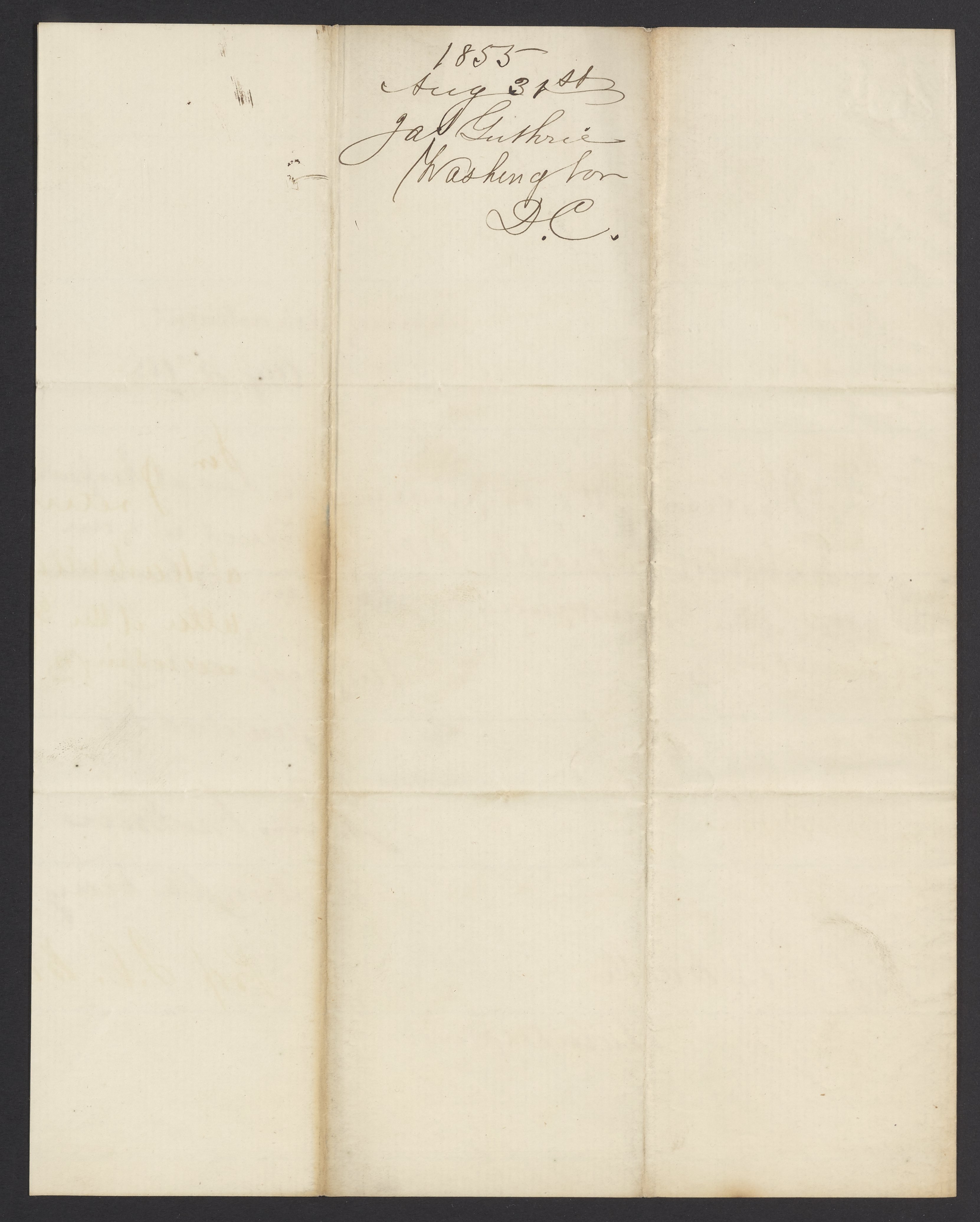 Letter from James B. Guthrie to James Curtis Booth, August 31, 1855