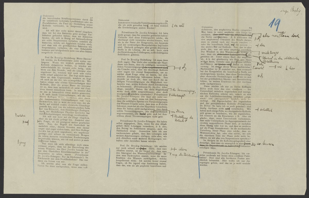 “Interview of Georg Bredig and Eduard Jordis,” circa 1901. Papers of Georg and Max Bredig, Box 5, Folder 6. Science History Institute. Philadelphia. https://digital.sciencehistory.org/works/1xz01e3.