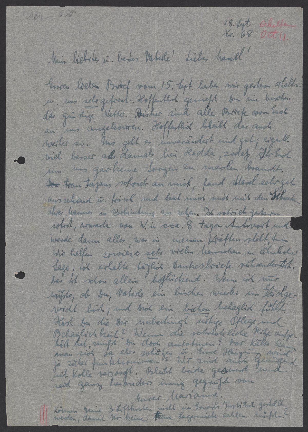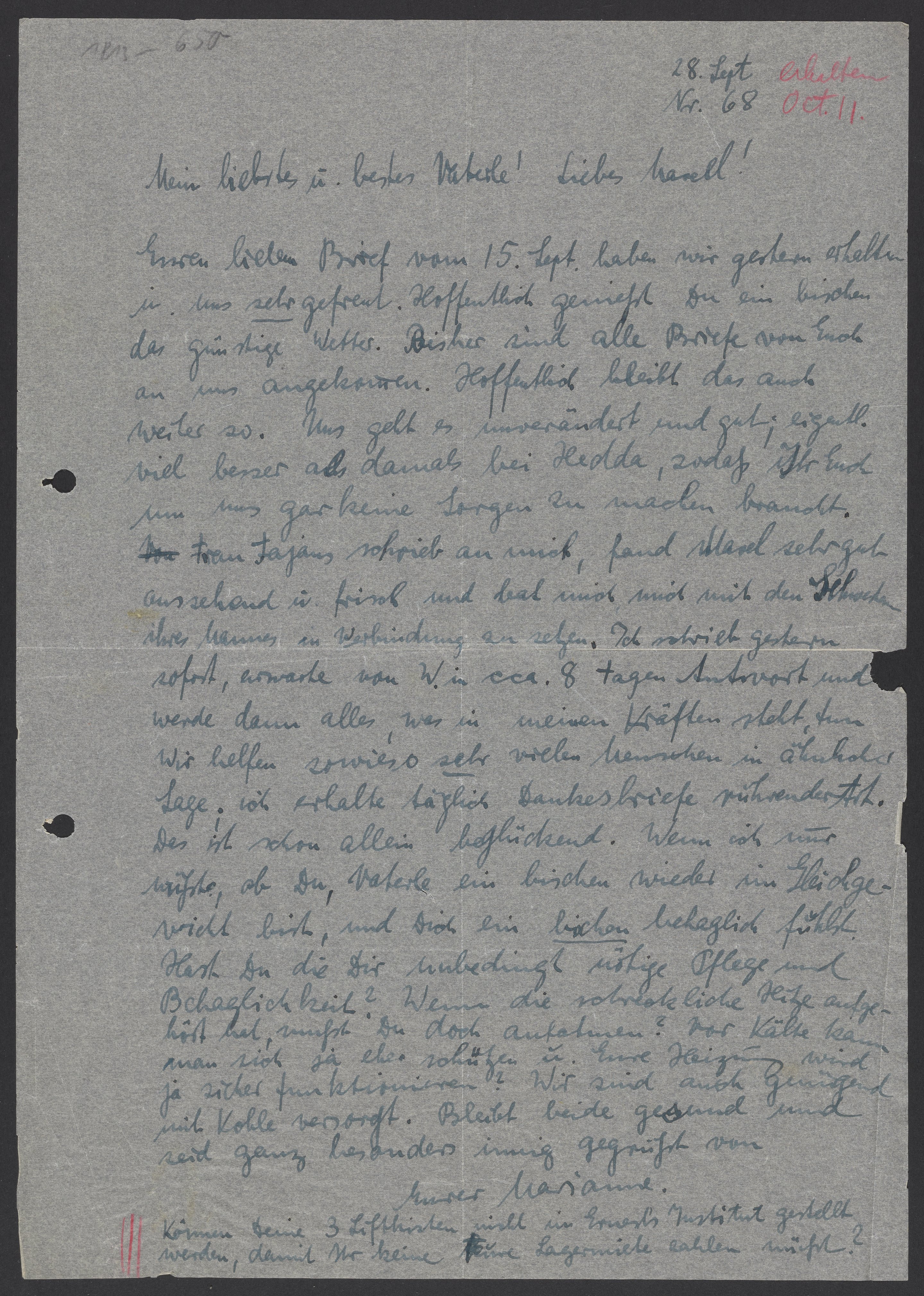 Letter from Marianne Homburger to Georg and Max Bredig, September 28, 1940