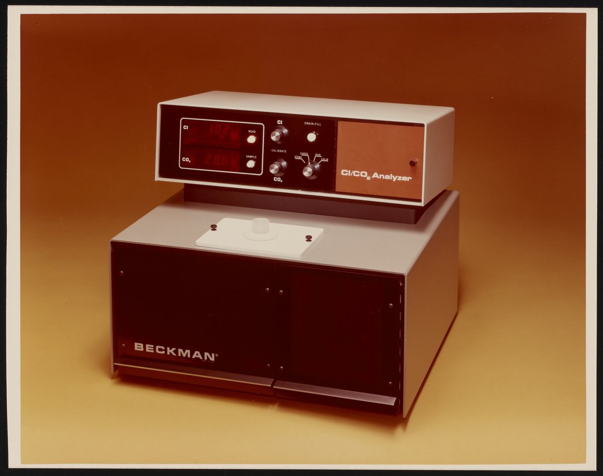 “Beckman Cl/CO2 Analyzer,” 1975–1984. Beckman Historical Collection, Box 87. Science History Institute. Philadelphia. https://digital.sciencehistory.org/works/1z40ks94b.