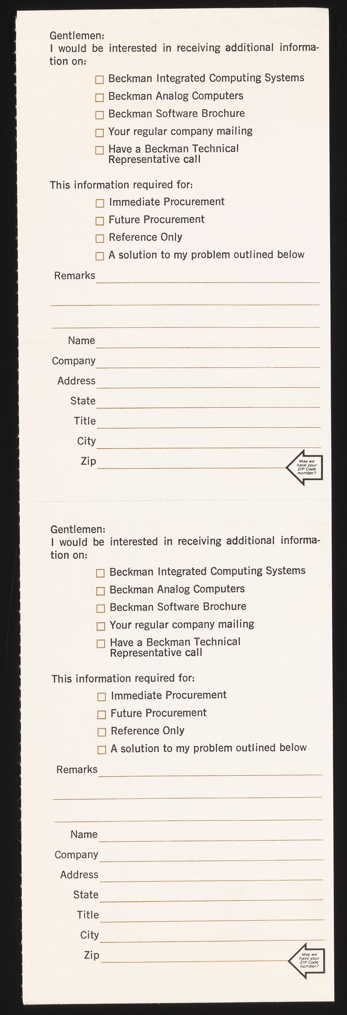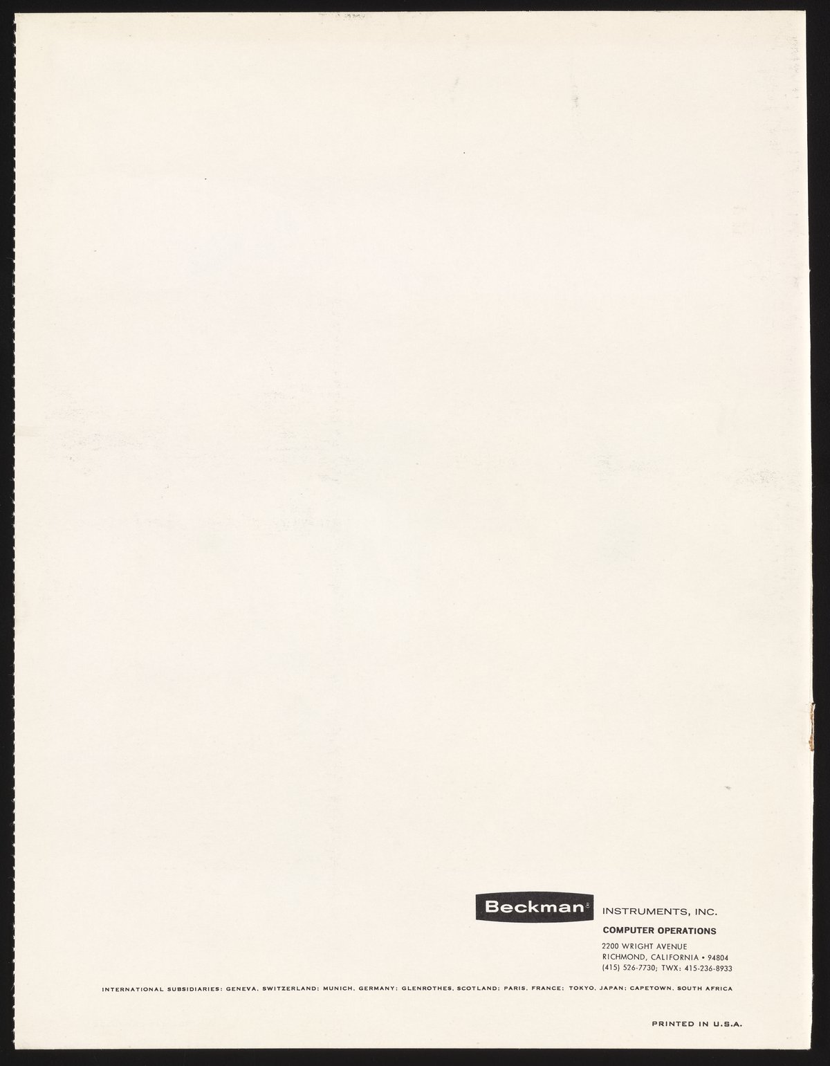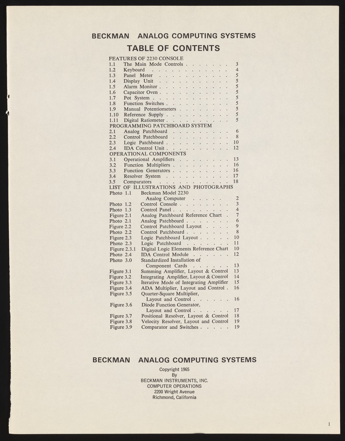 Beckman Instruments, Inc. “Instructions, Beckman Analog Computing System,” 1965. Beckman Historical Collection, Box 121, Folder 57. Science History Institute. Philadelphia. https://digital.sciencehistory.org/works/1z40kt66c.