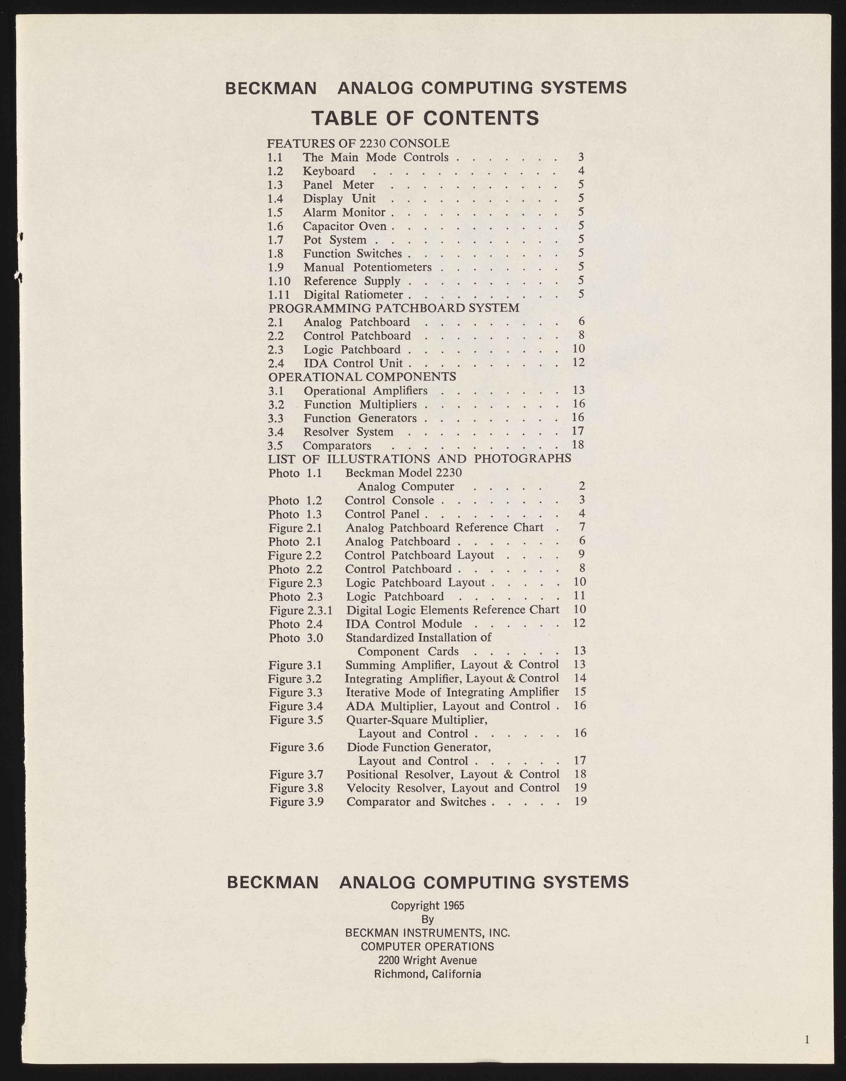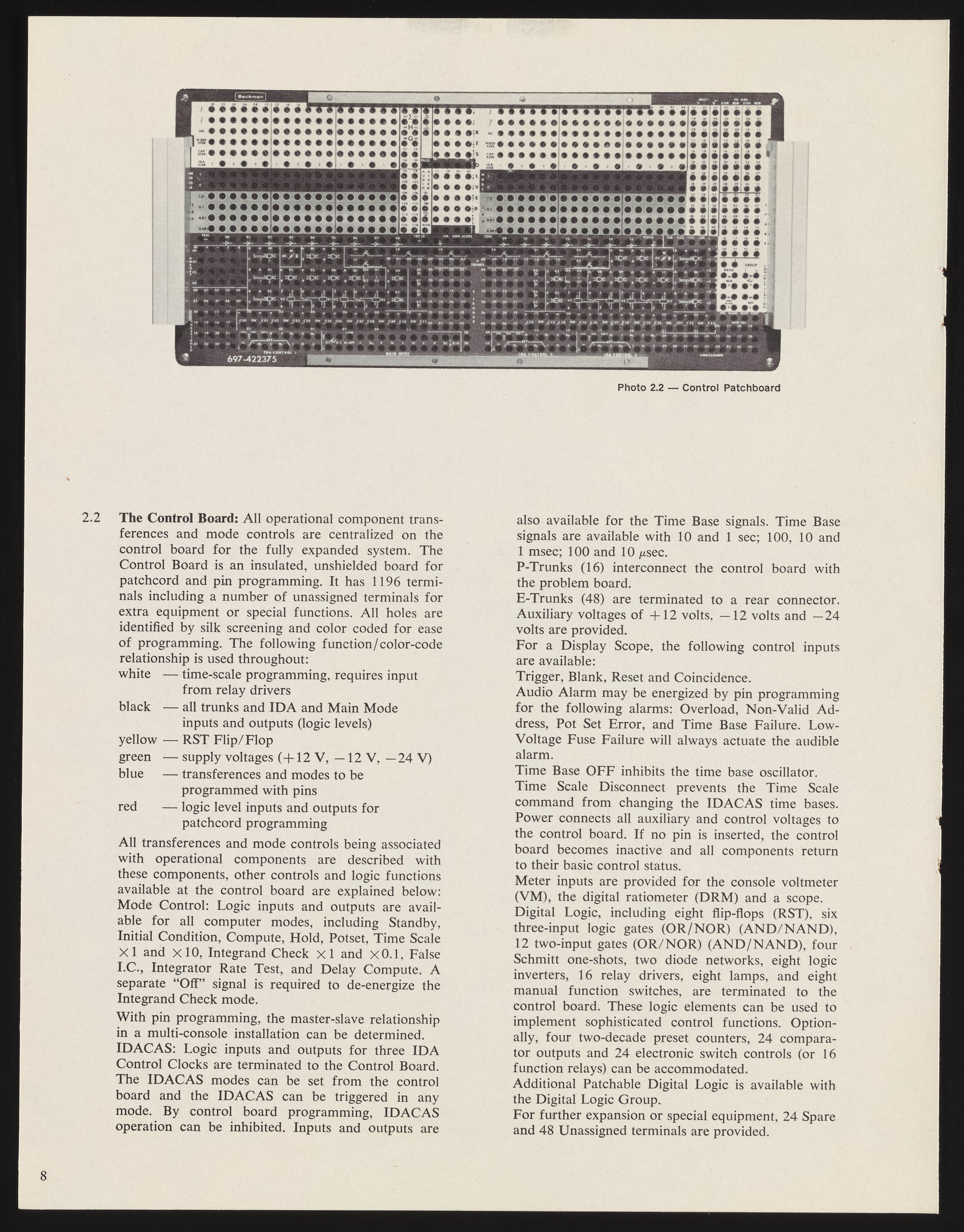 Small JPG1200 x 1533px — 329 KBFull-sized JPG2714 x 3467px — 1.4 MBOriginal fileTIFF — 2714 x 3467px — 27.0 MBThis manual describes the features, programming patchboard system, and operational components of the Model 2230 analog computer.