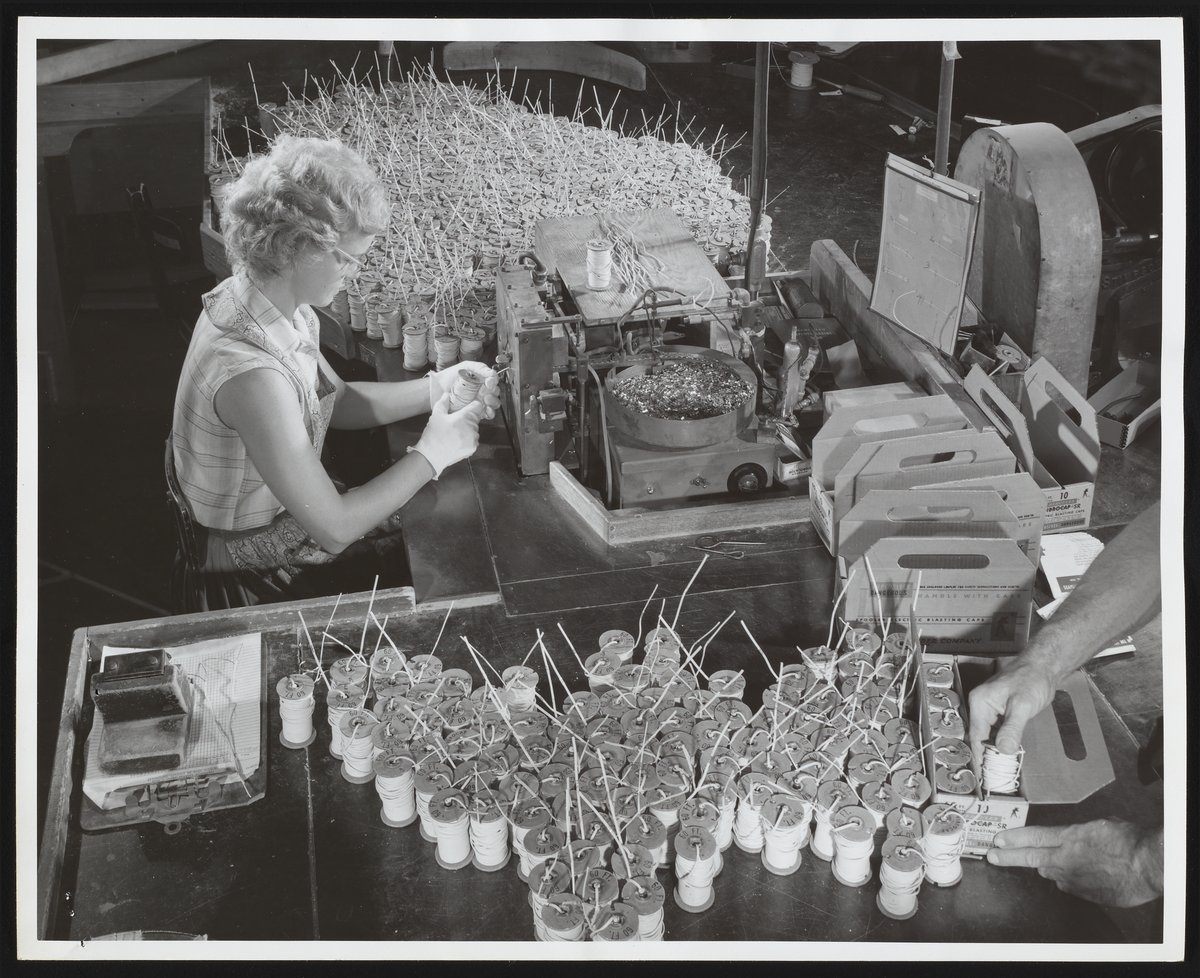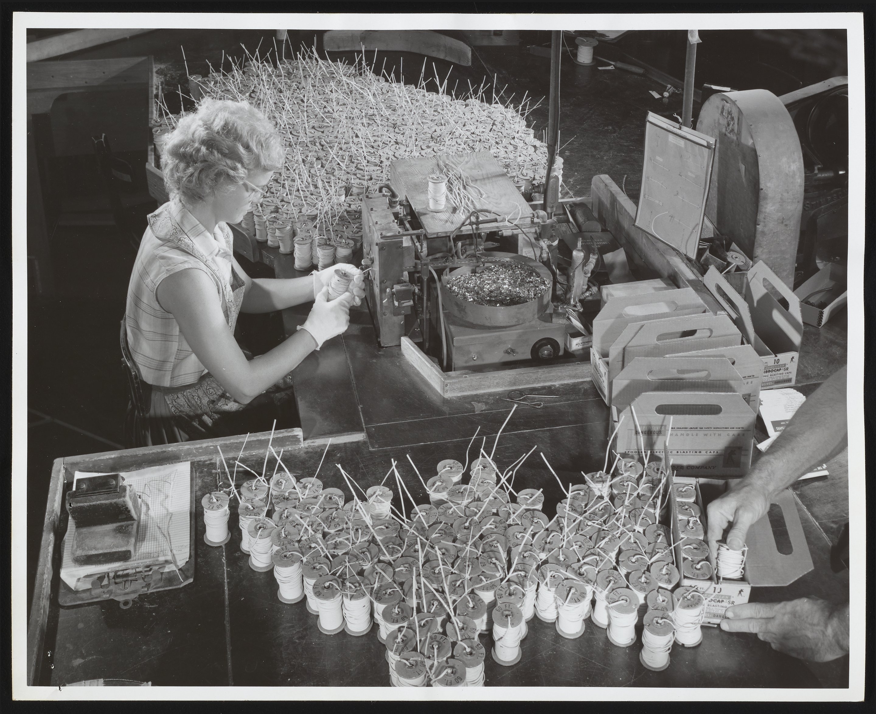 Elizabeth Bailey working with spooled Vibrocaps at Hercules Port Ewen plant