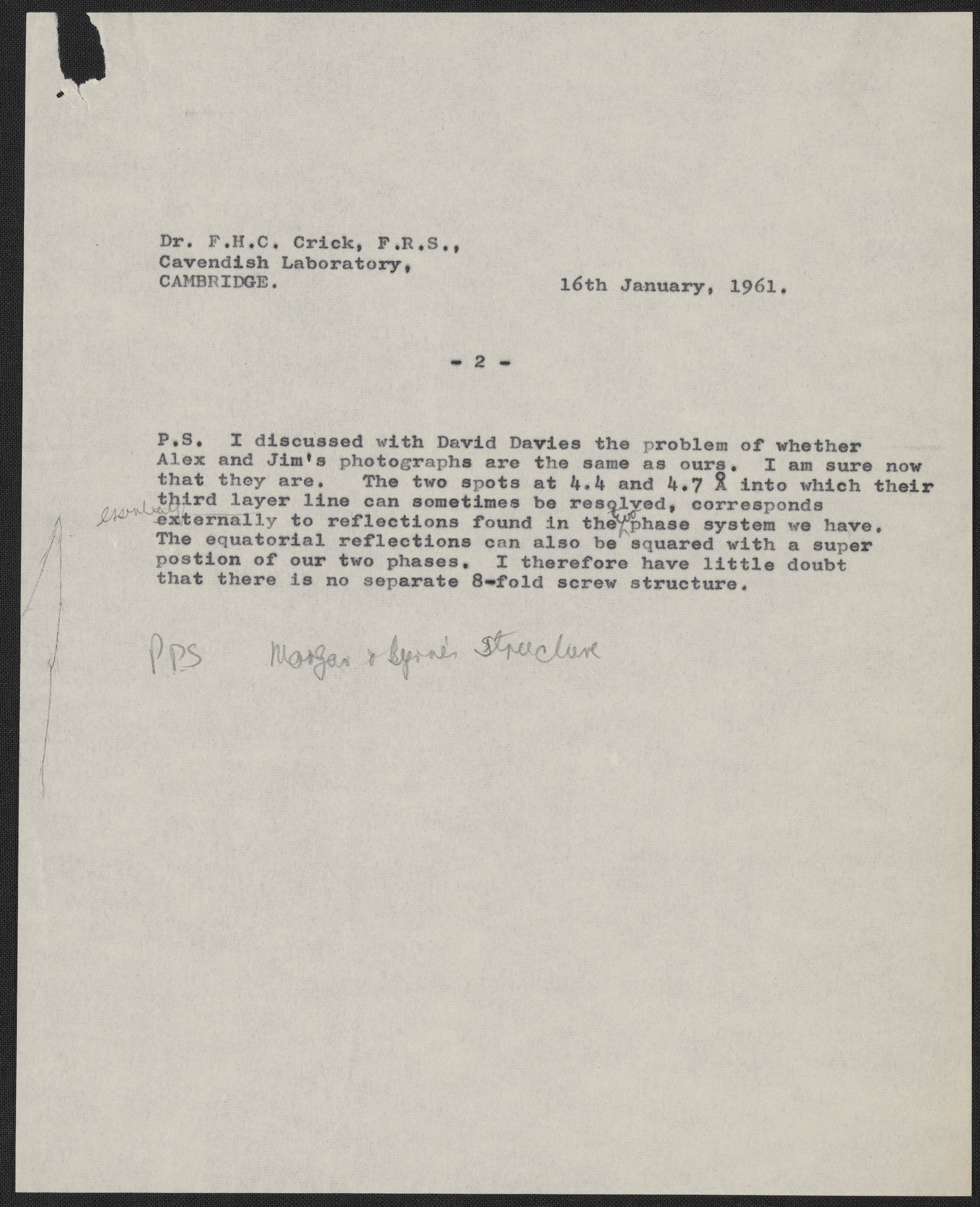Klug, A. (Aaron), Sir. “Letter from Aaron Klug to Francis Crick, January 16, 1961,” January 16, 1961. History of Molecular Biology Collection, Box 19, Folder 20. Science History Institute. Philadelphia. https://digital.sciencehistory.org/works/24cwlh0.