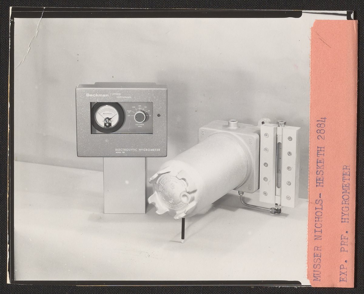 Hesketh, Dean D., and Musser-Nichols Photography. “Beckman Electrolytic Hygrometer,” n.d. Beckman Historical Collection, Box 84. Science History Institute. Philadelphia. https://digital.sciencehistory.org/works/2514nk64d.