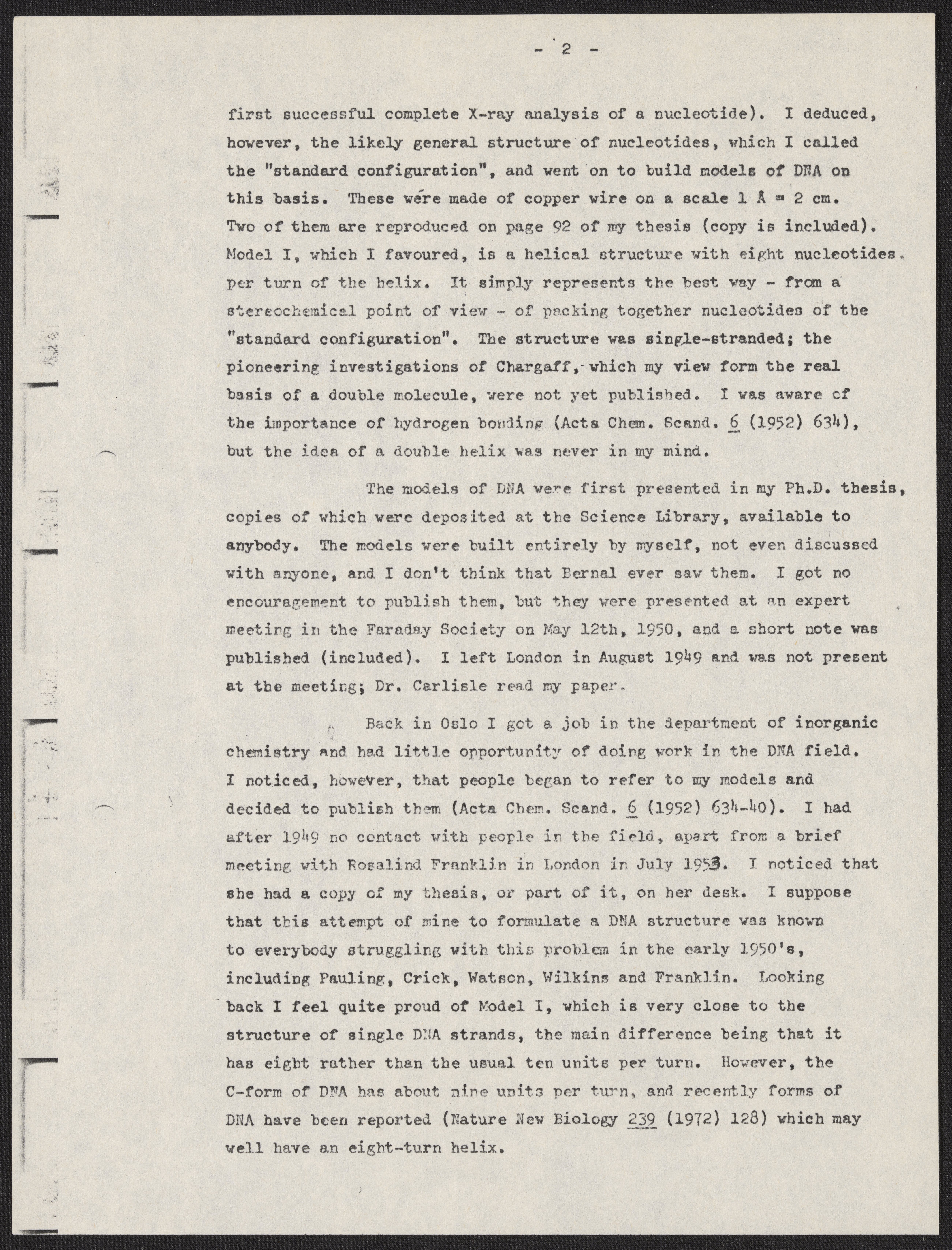 My work on Nucleic Acid Structure 1947-1949