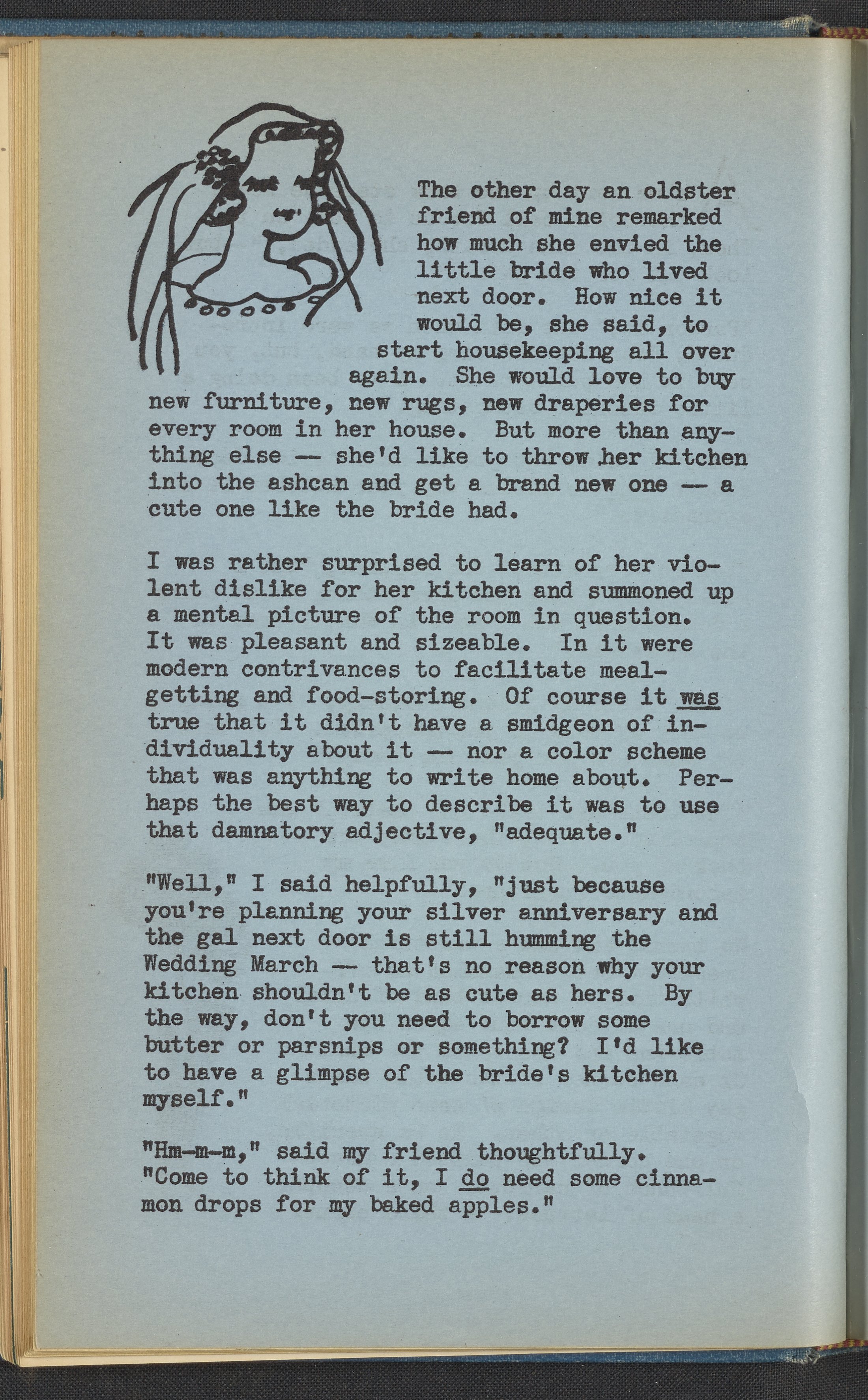 National Paint, Varnish. “A Bride Looks at Her Kitchen.” Pamphlets Corresponding to Radio Shows Produced by the National Paint, Varnish and Lacquer Association. Washington (D.C.), 1940–1949. TP935 .K46. Science History Institute. Philadelphia. https://digital.sciencehistory.org/works/27hki8a.