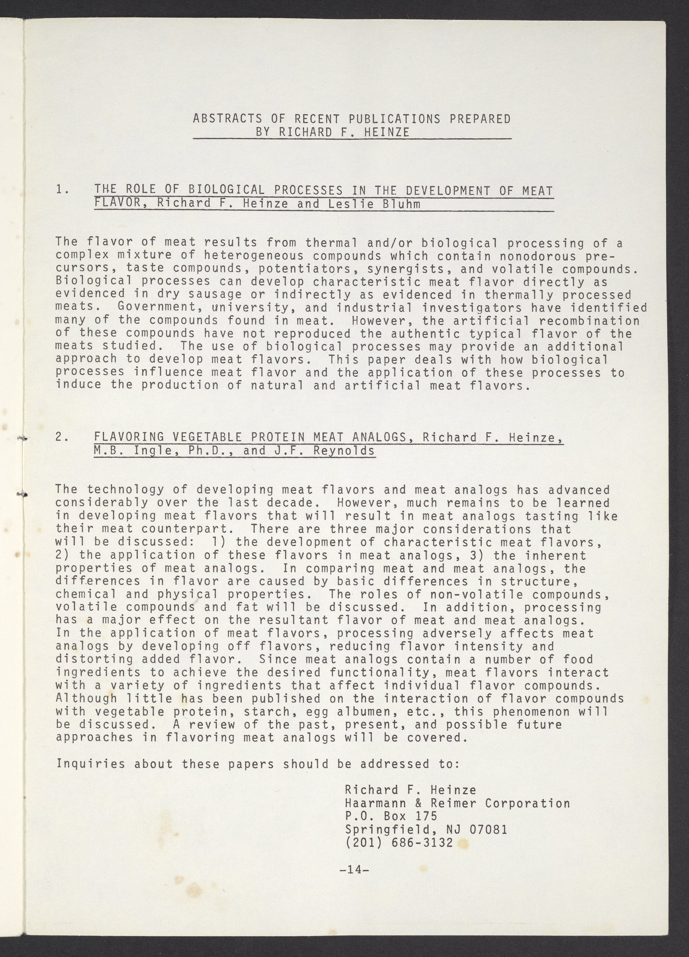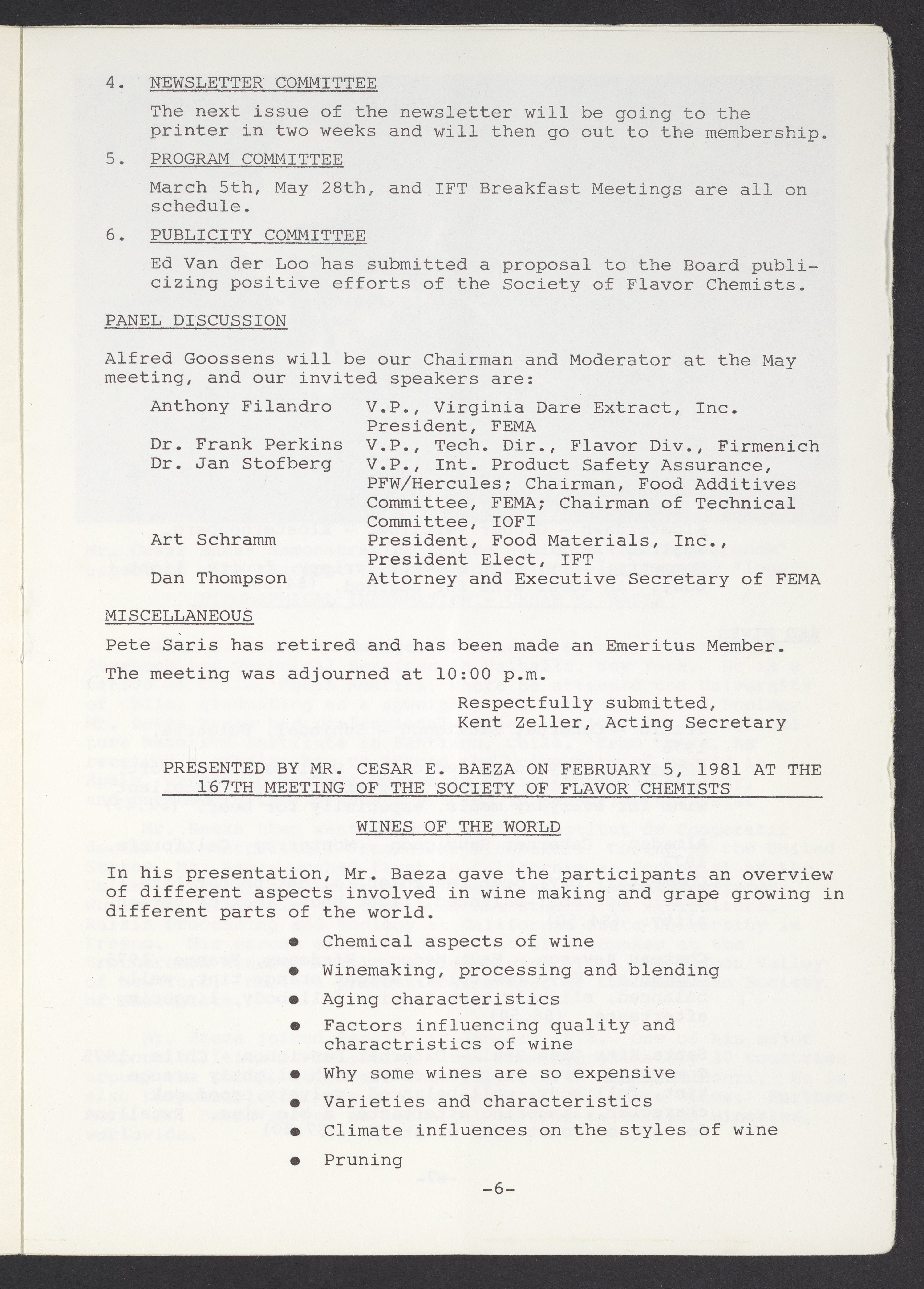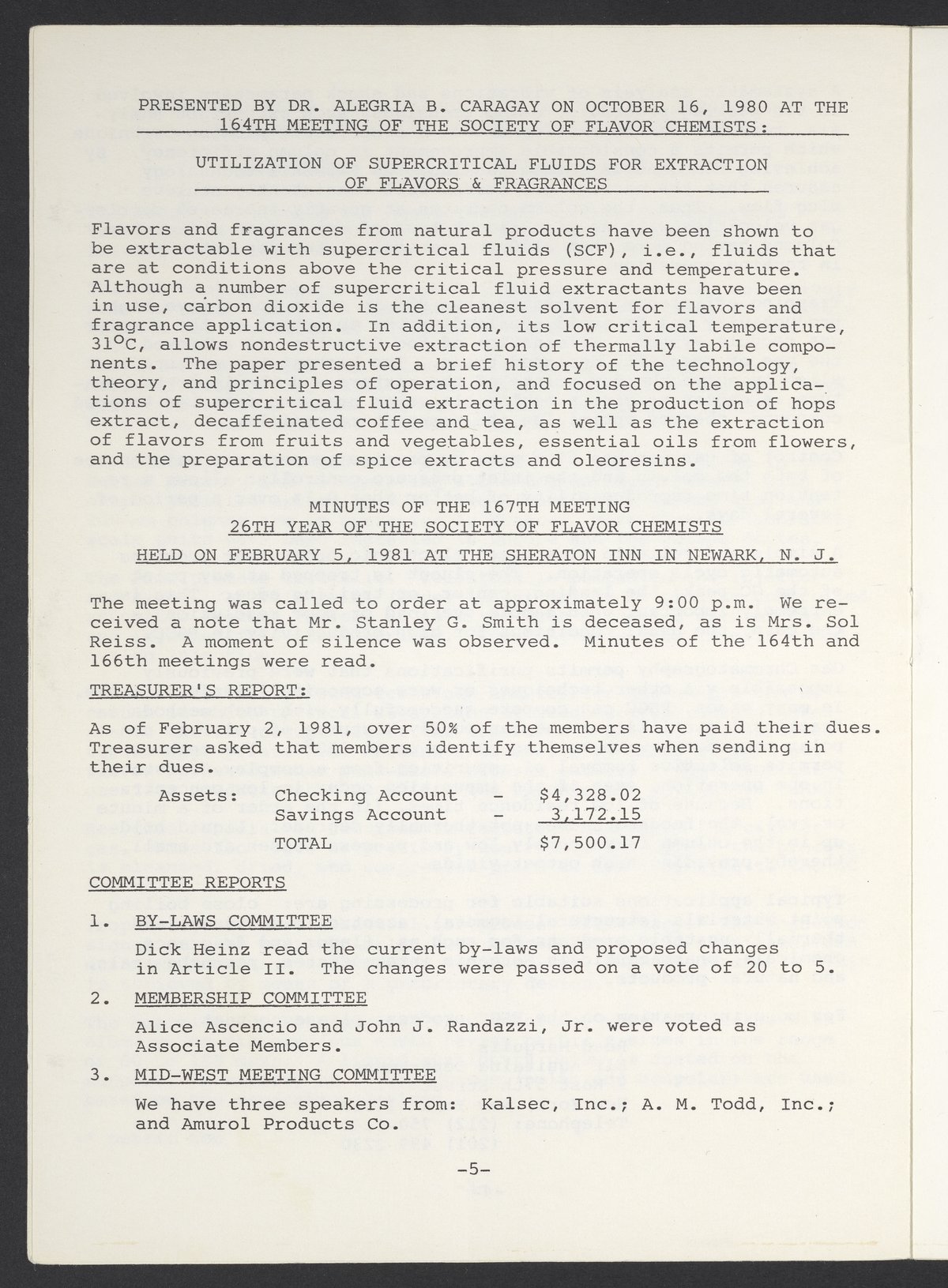Society of Flavor Chemists newsletter, May 1981