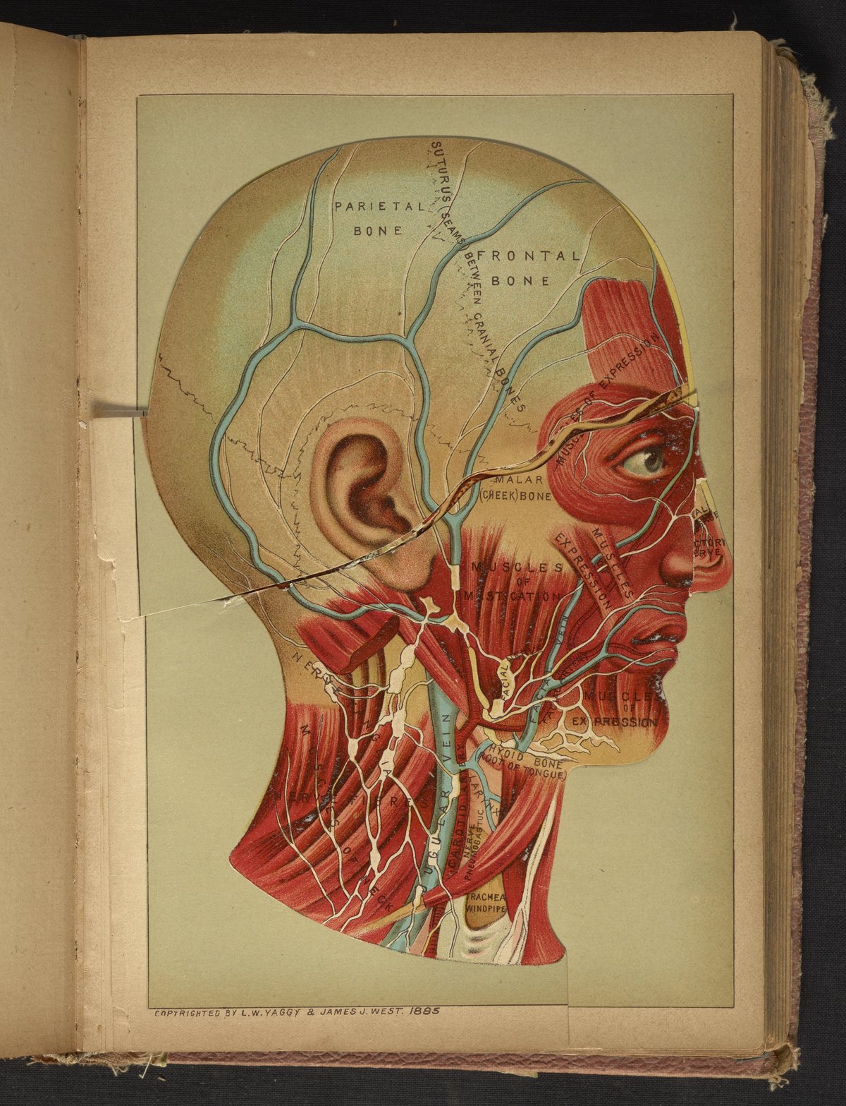 West, James J., and Yaggy, L. W. (Levi W.). “Three-Dimensional Anatomical Diagram of Human Head.” The Book of Health. Providence, Rhode Island: W.P. Mason, 1885–1898. Science History Institute. Philadelphia. https://digital.sciencehistory.org/works/2b88qc81s.