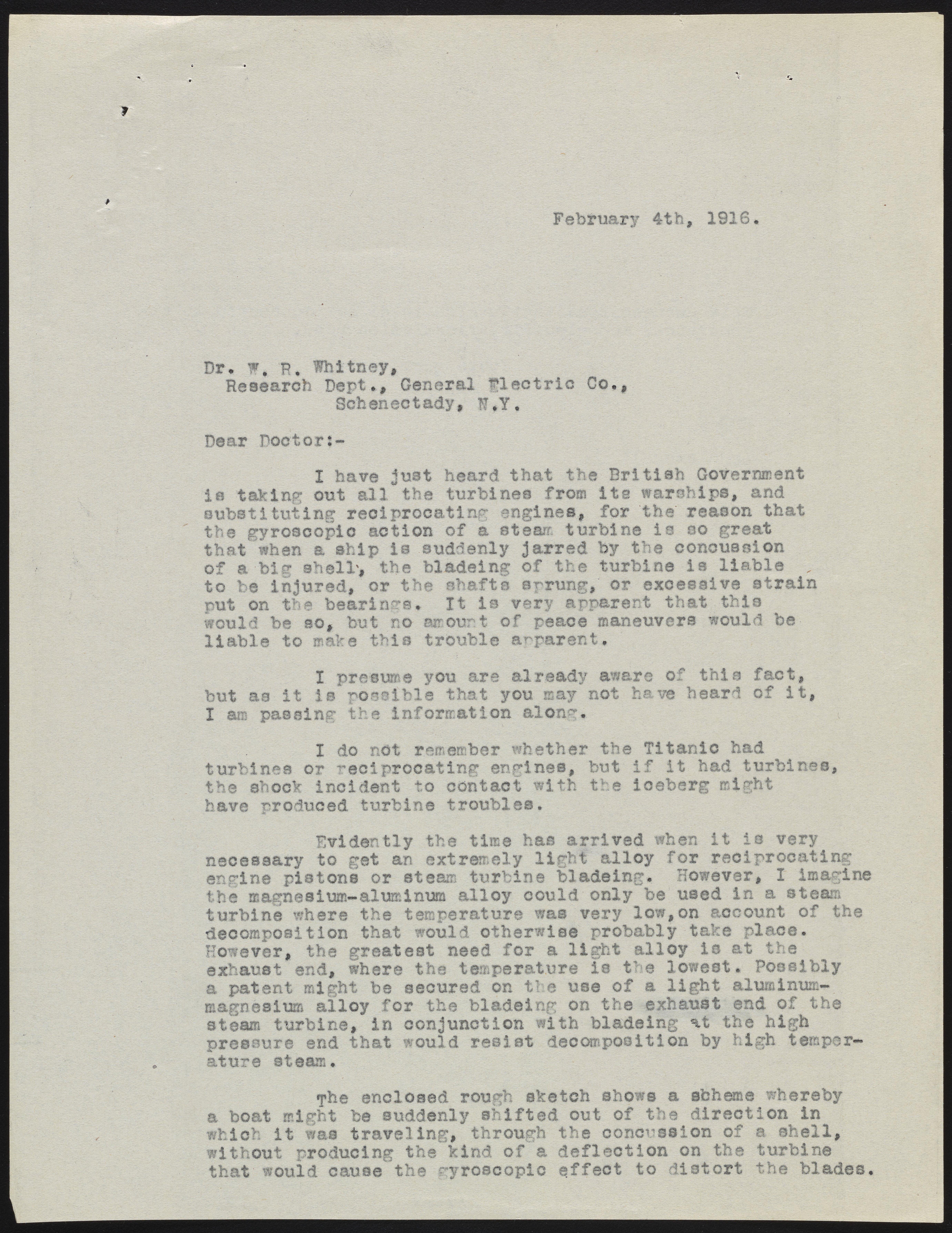 Letter from Herbert H. Dow to Dr. Willis R. Whitney, February 4, 1916