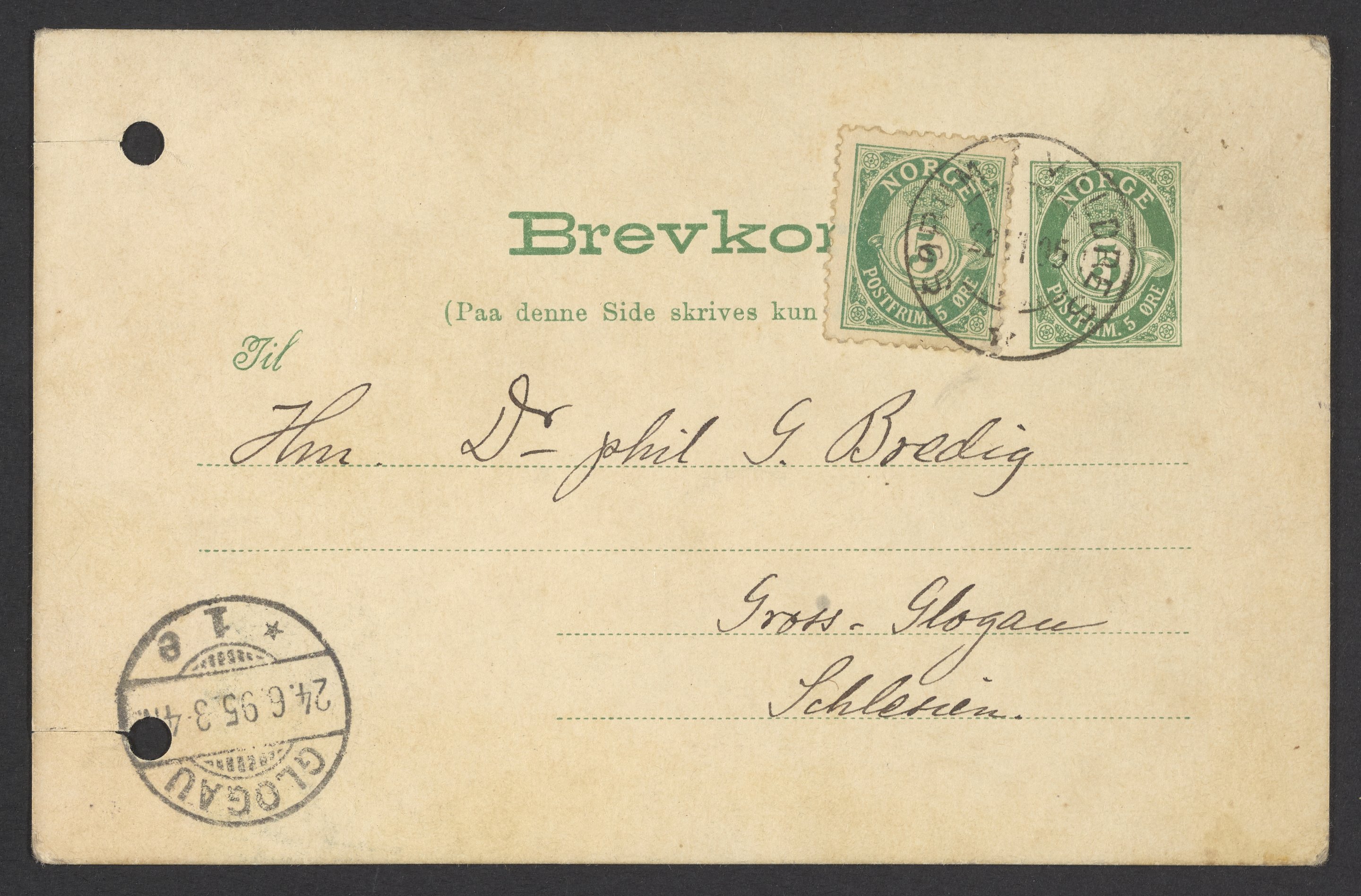 Postcard from Svante Arrhenius to Georg Bredig, June 1895
