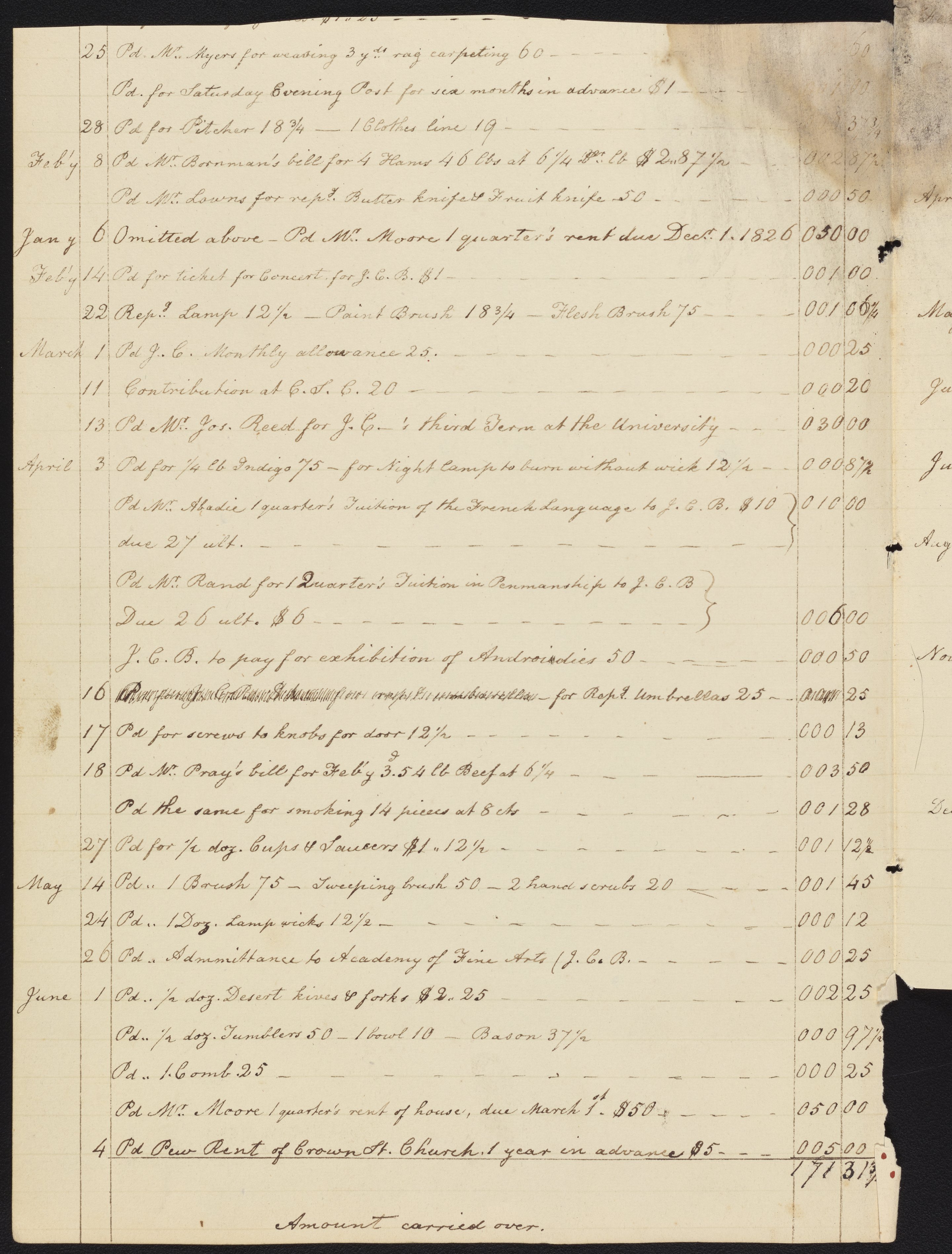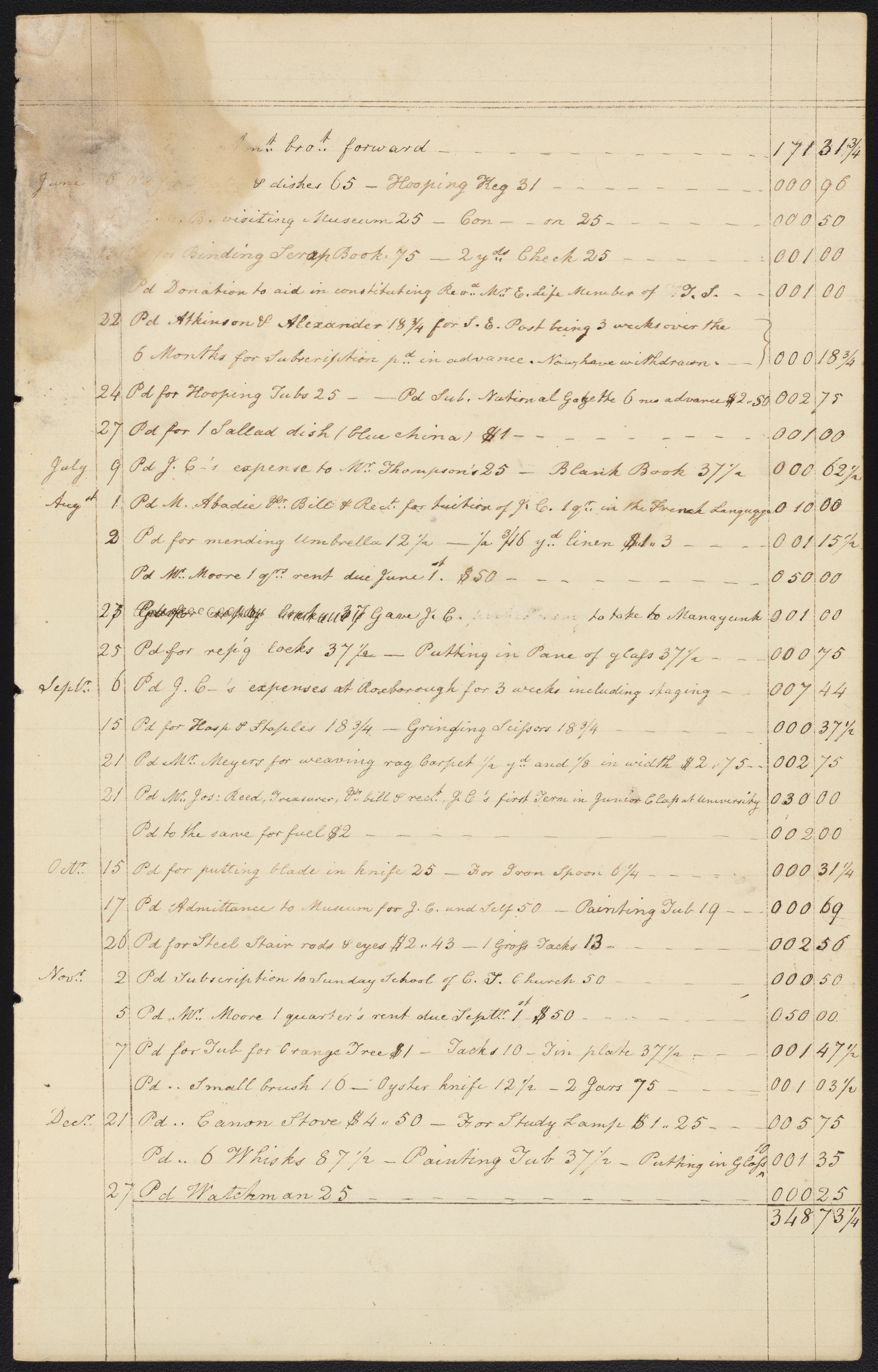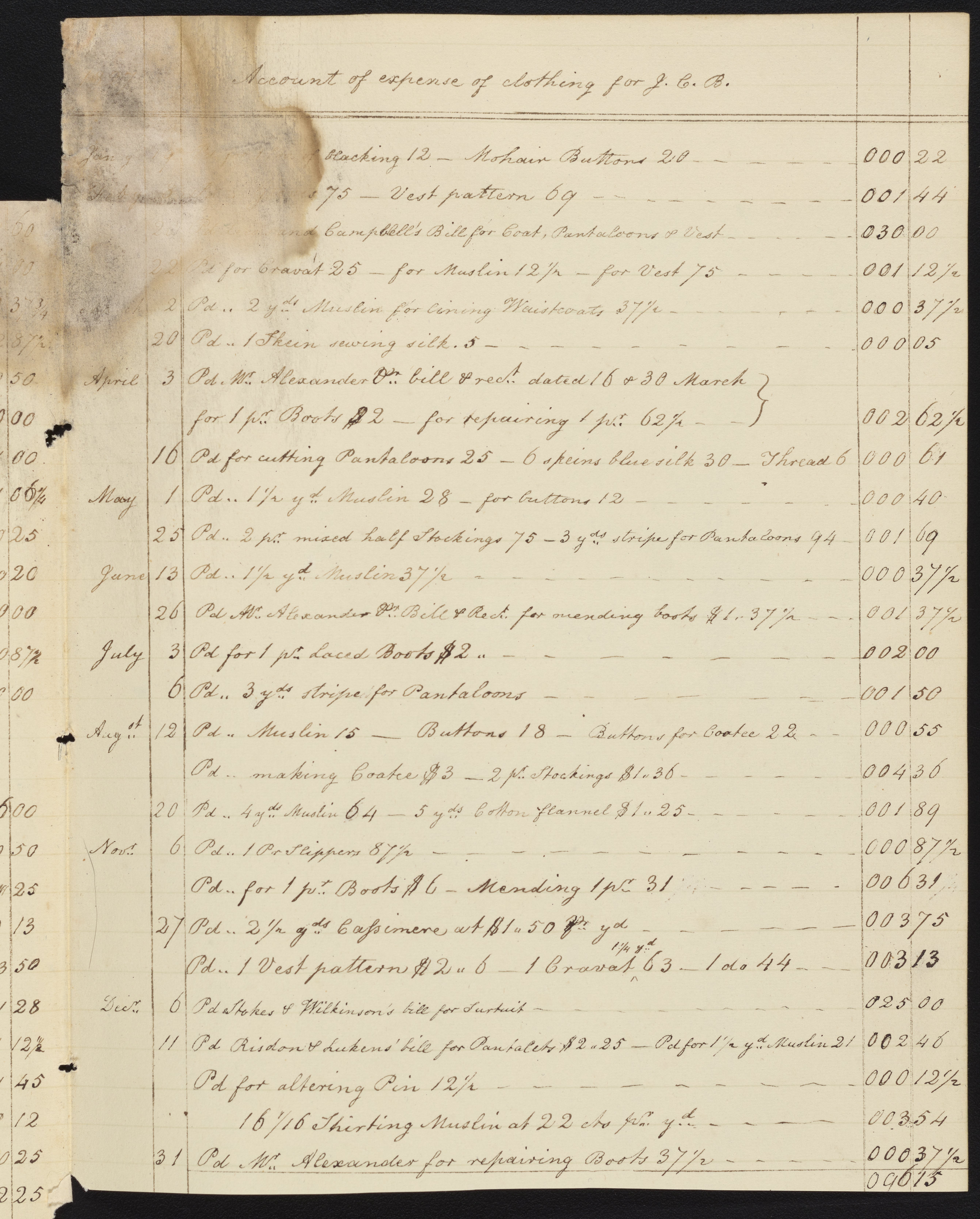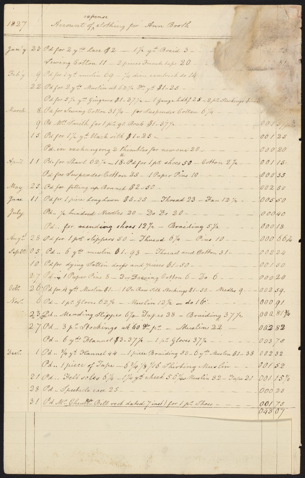 Pages of an account book showing expenses of Ann Booth