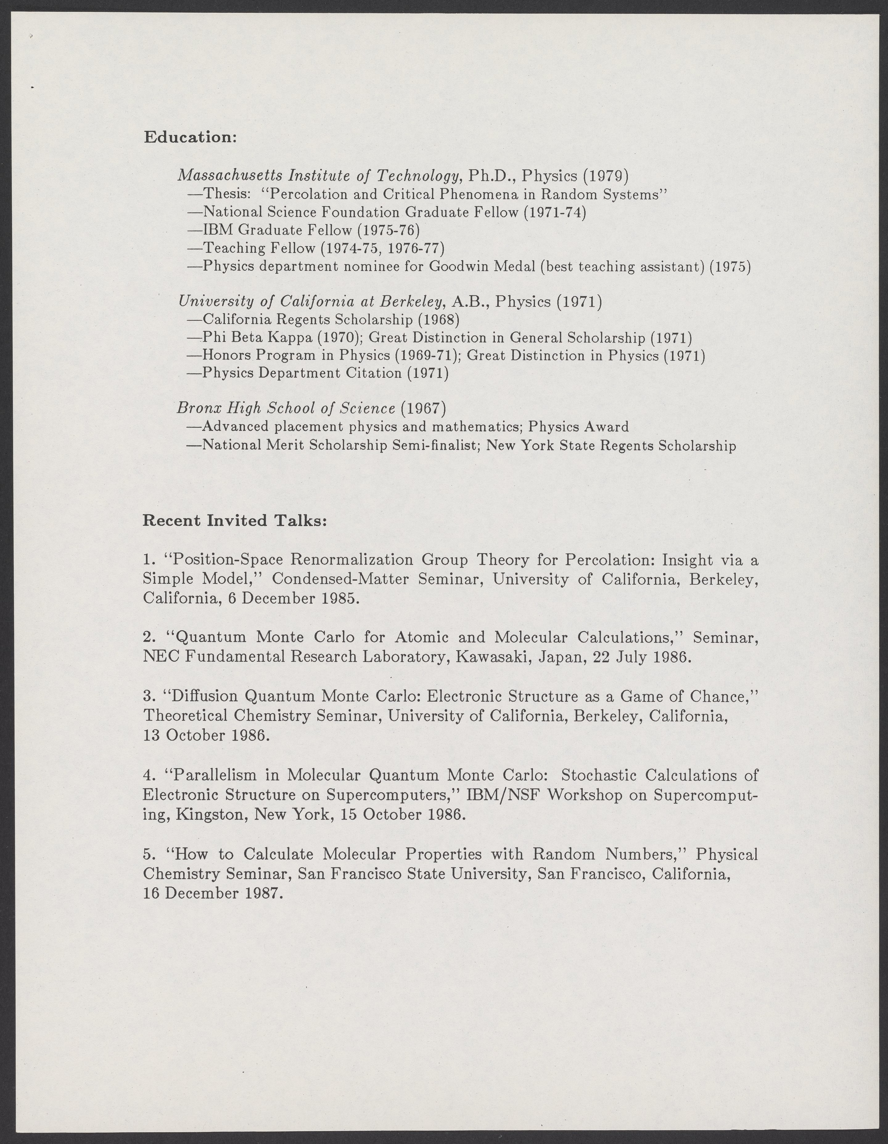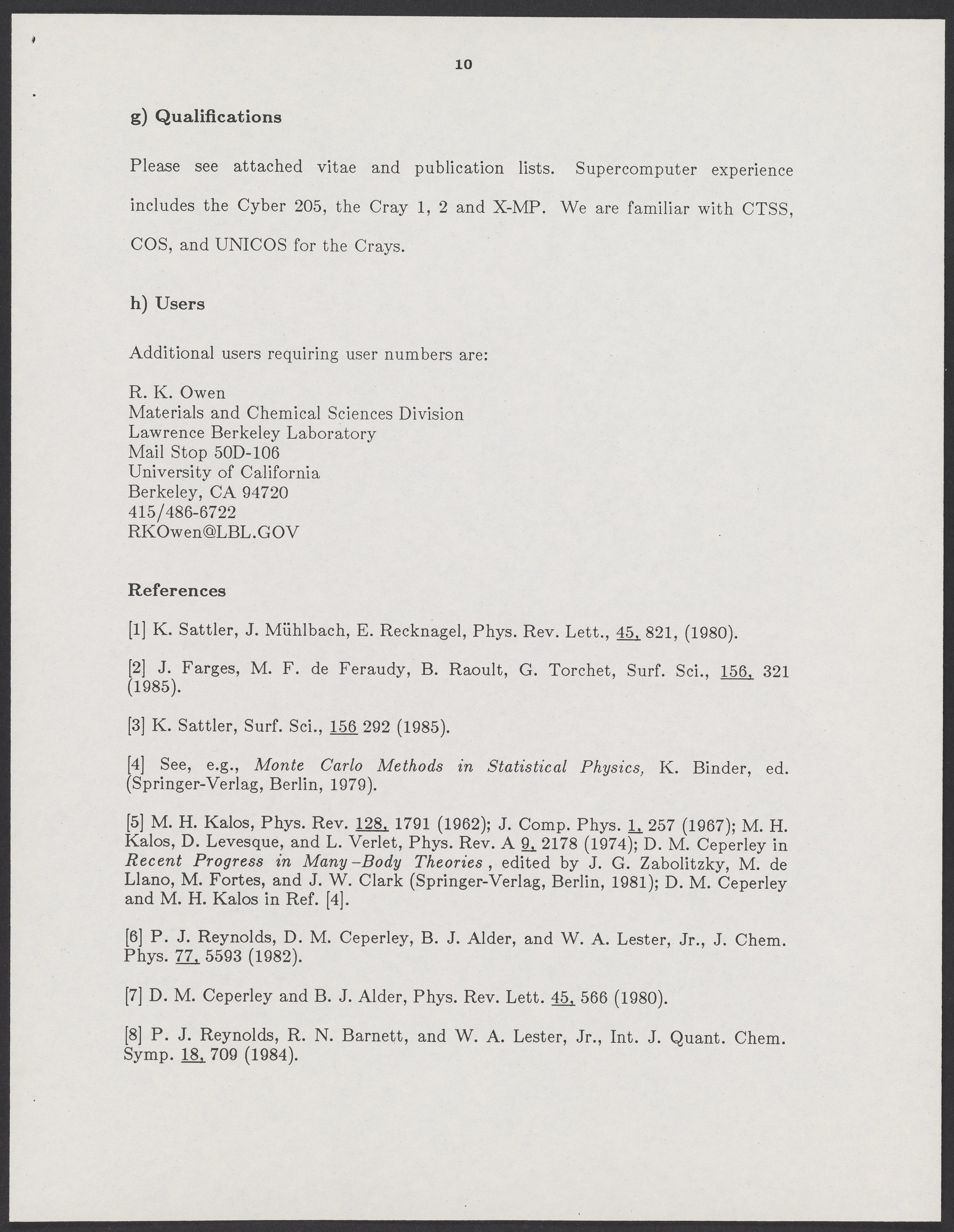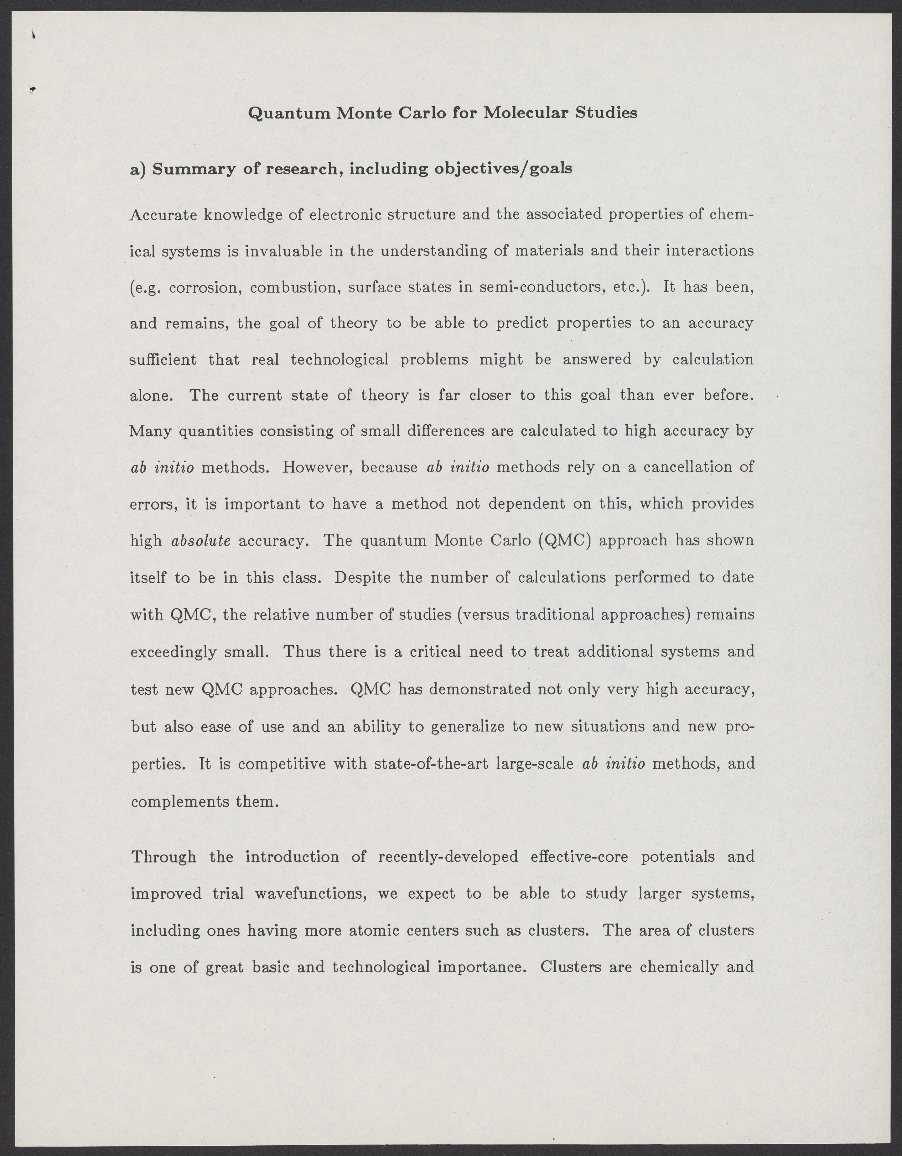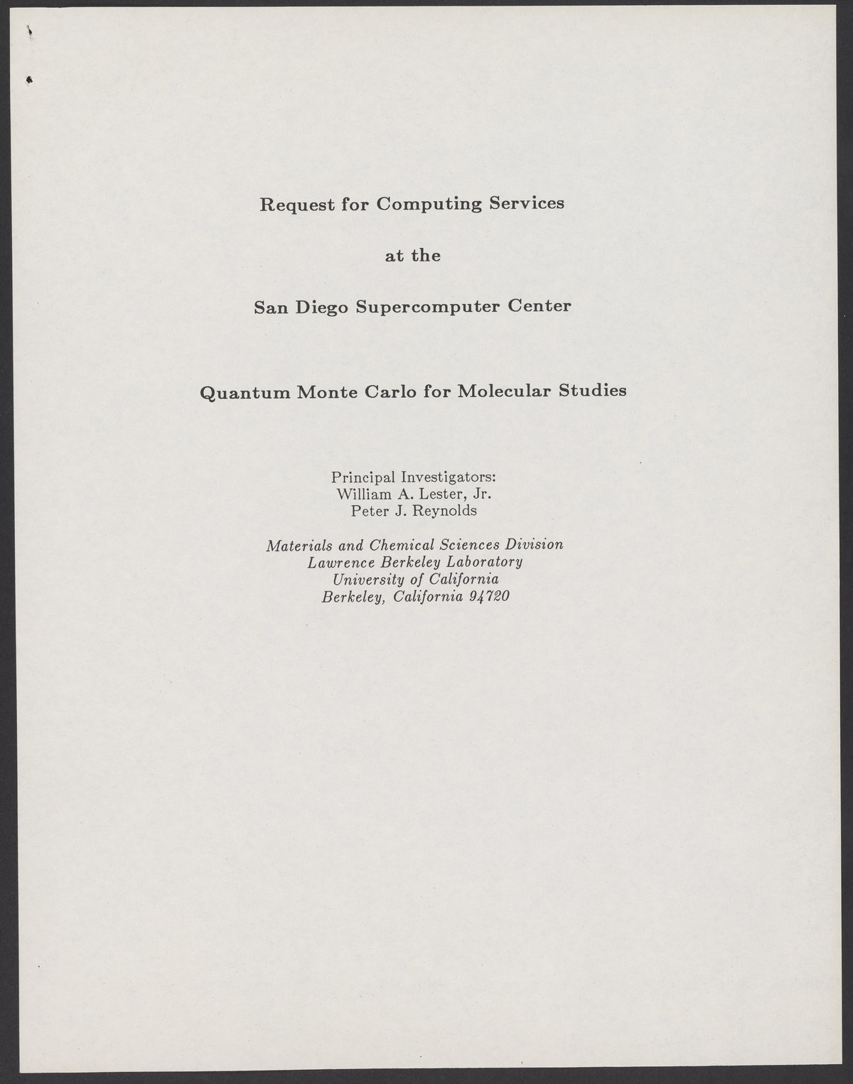 Lester, William A., Jr., Peter J. Reynolds, and San Diego. Computer Center University of California. “Materials Relating to the Quantum Monte Carlo for Molecular Studies Project's Use of the San Diego Supercomputer Center, 1988,” 1988. William A. Lester, Jr. Papers, Box 10, Folder 6. Science History Institute. Philadelphia. https://digital.sciencehistory.org/works/2flvtgg.