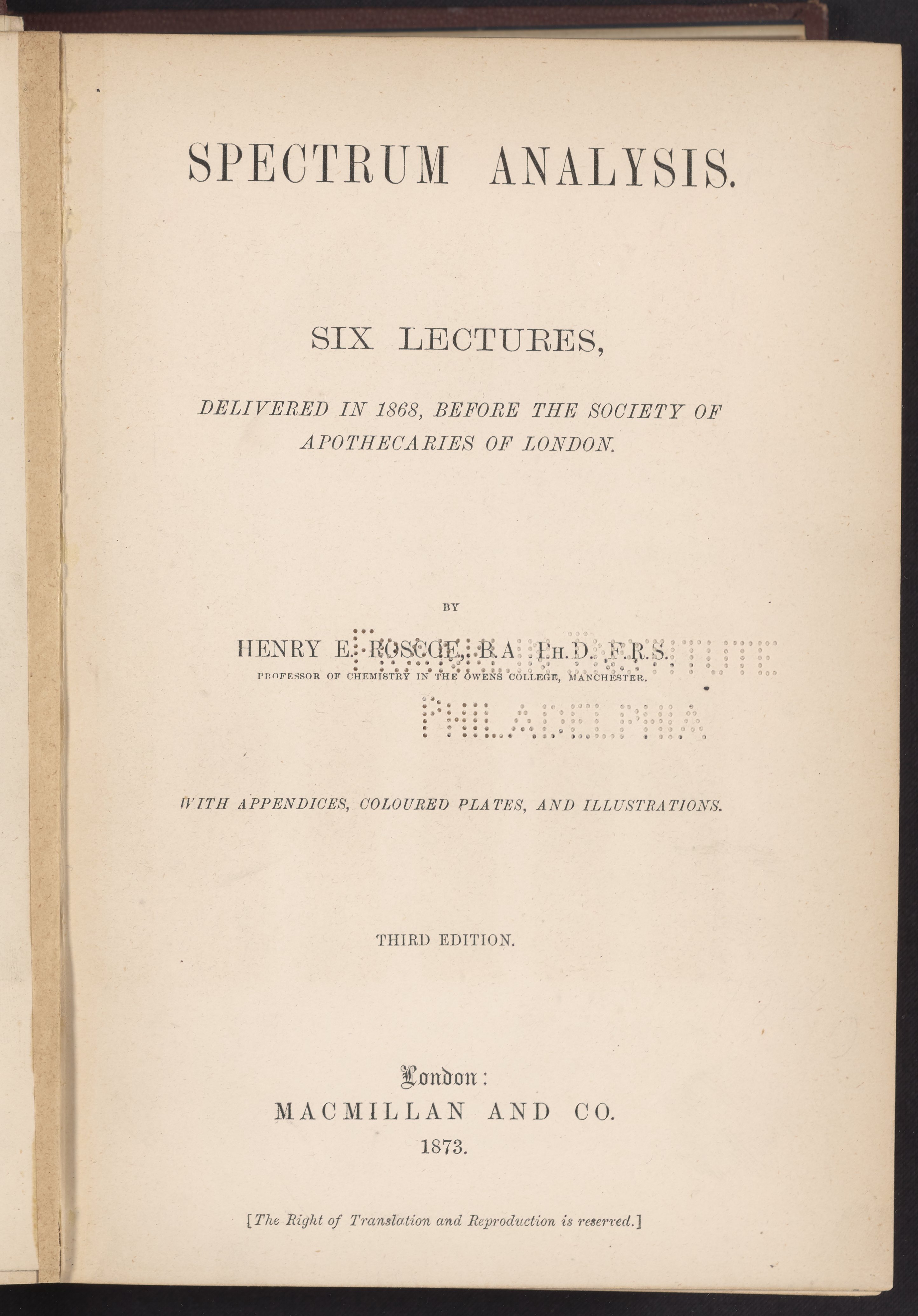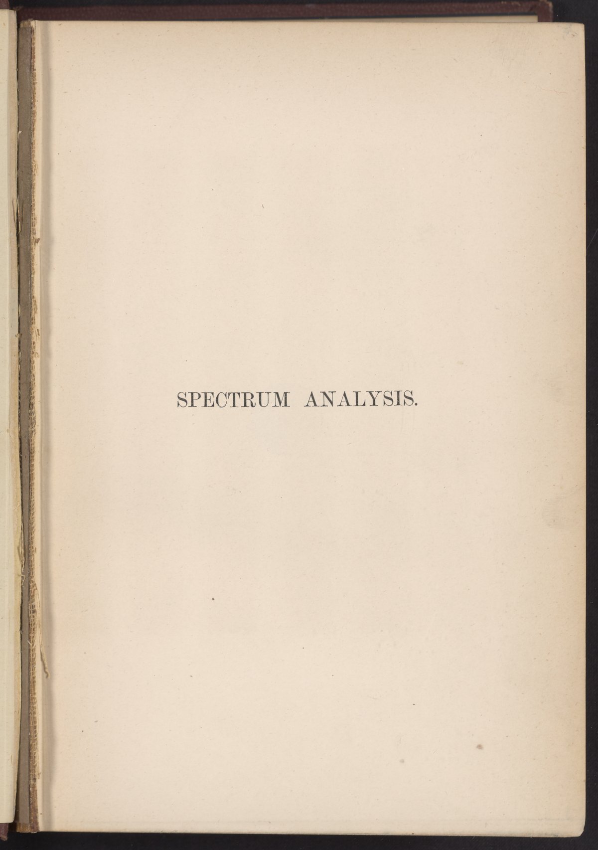 Spectrum Analysis: Six Lectures, Delivered in 1868, Before the Society of Apothecaries of London