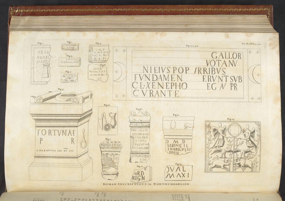 Camden, William. “Roman Inscriptions in Northumberland [Vol. III, Plate XXIX].” In Britannia: or, a Chorographical Description of the Flourishing Kingdoms of England, Scotland, and Ireland, and the Islands Adjacent, Vol. 3. London, England: John Stockdale, 1806. https://digital.sciencehistory.org/works/2g18vw0.