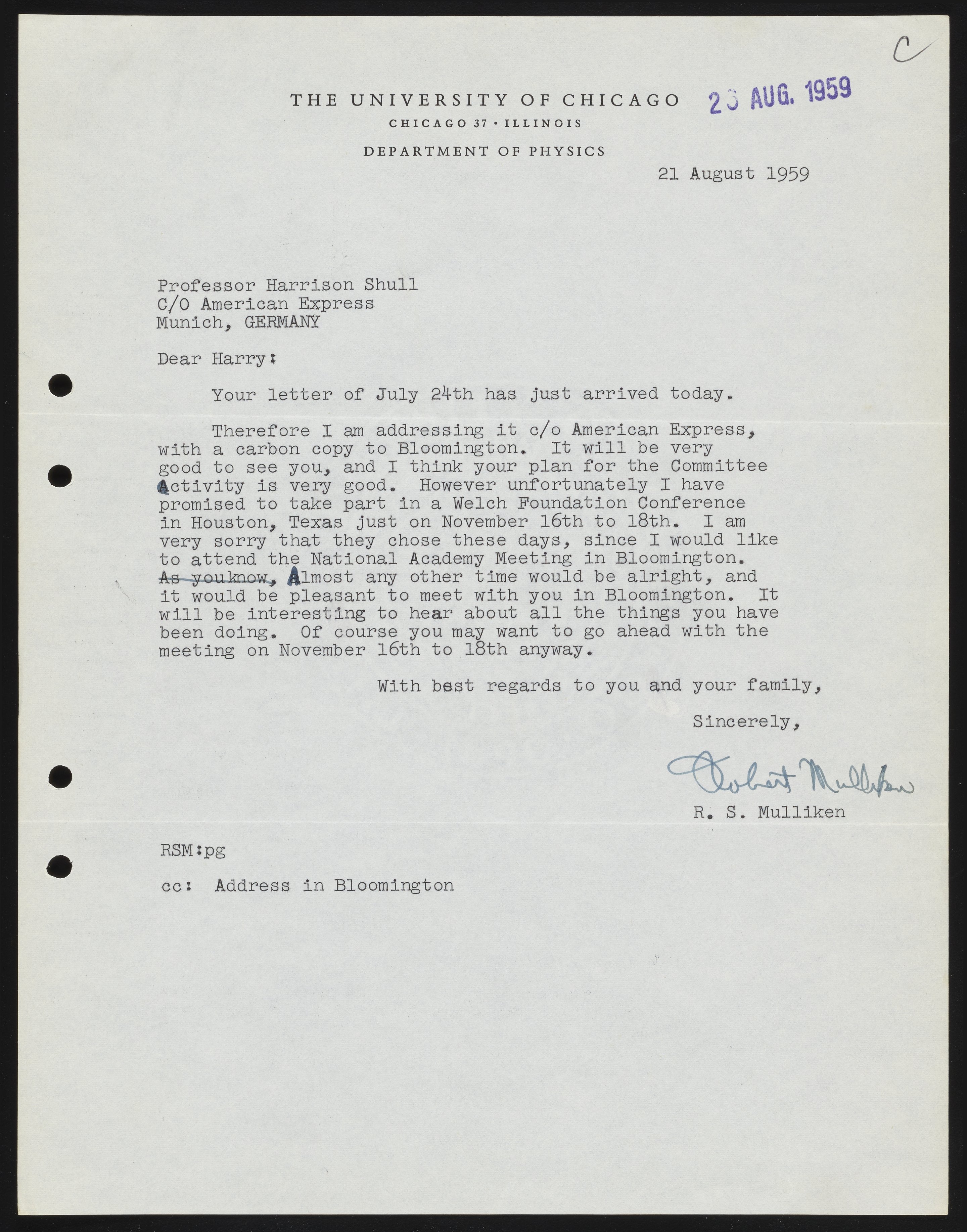 Mulliken, Robert Sanderson. “Letter from Robert S. Mulliken to Harrison Shull, 1959,” August 21, 1959. Robert S. Mulliken & Harrison Shull Correspondence, Box 1. Science History Institute. Philadelphia. https://digital.sciencehistory.org/works/2j62s4919.