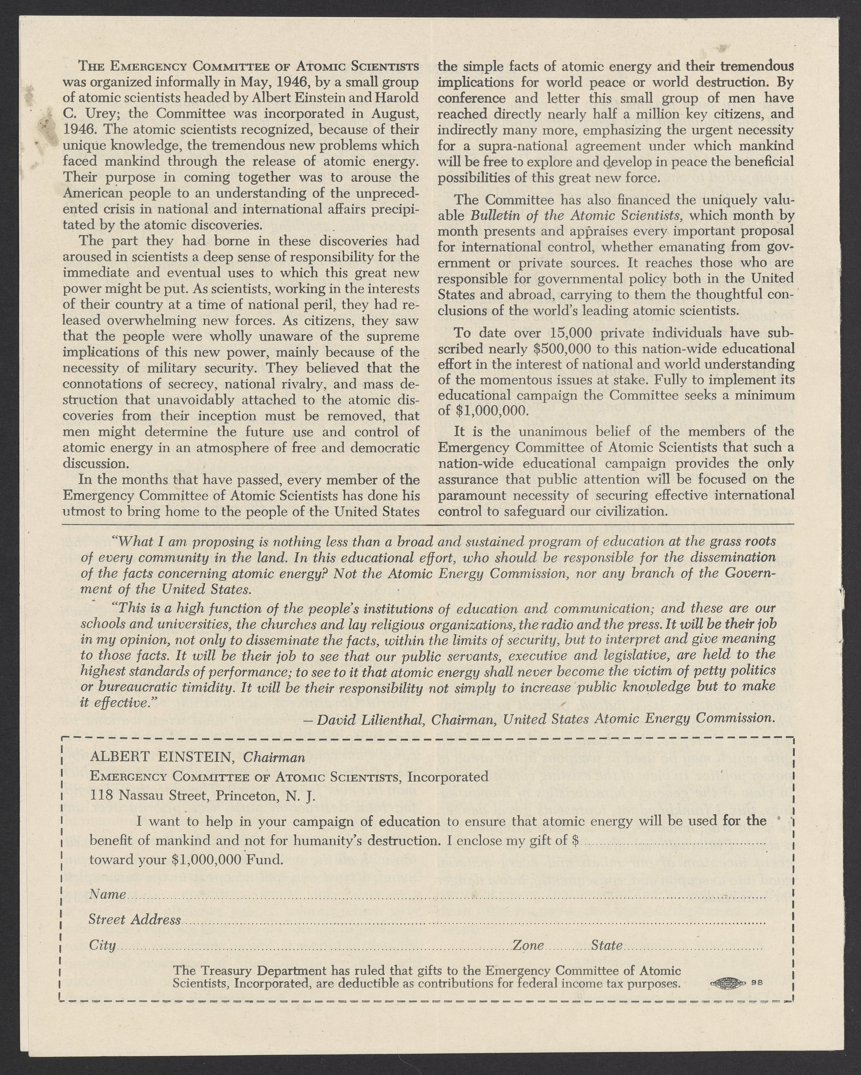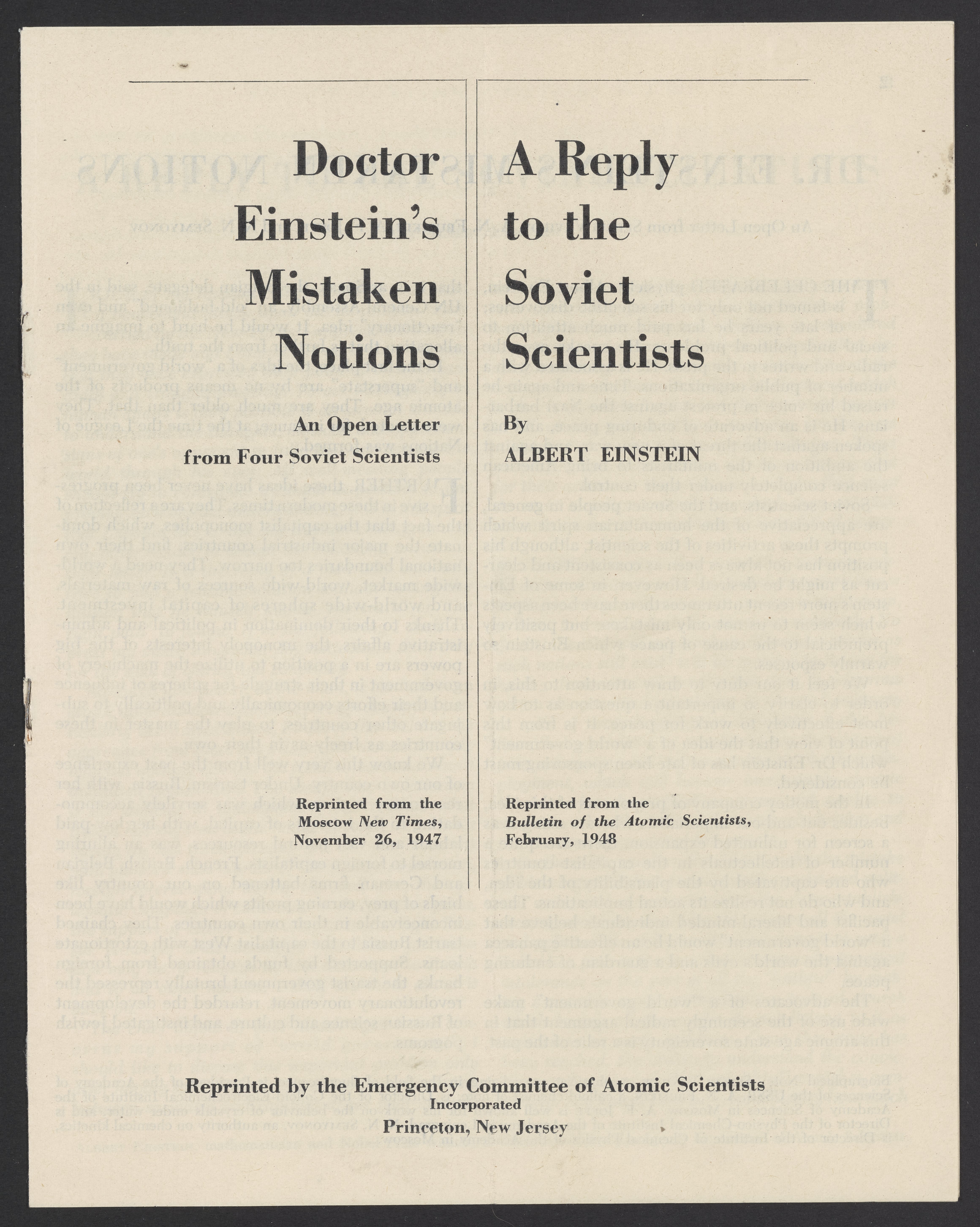 • Essays printed by the Emergency Committee of Atomic Scientists