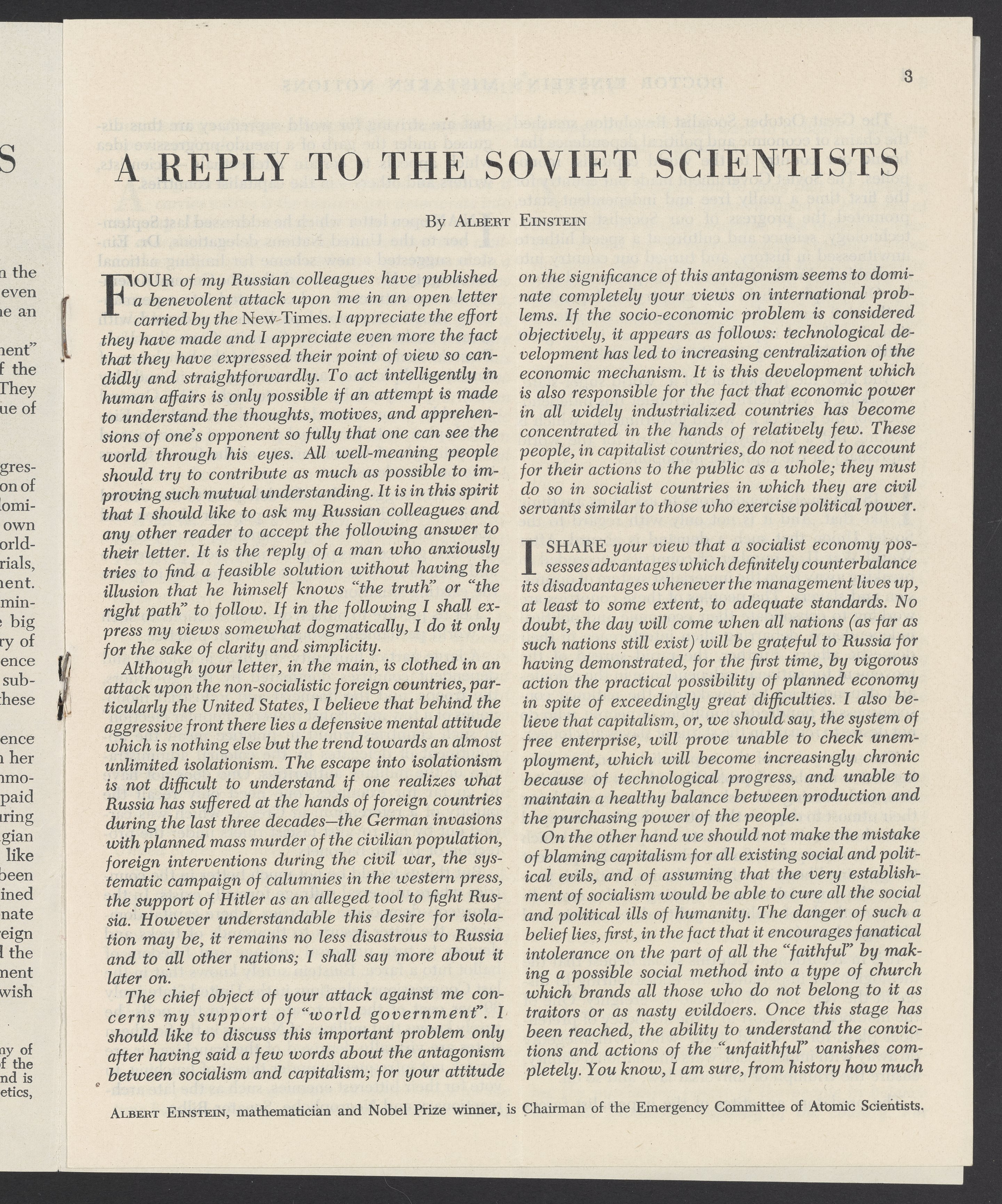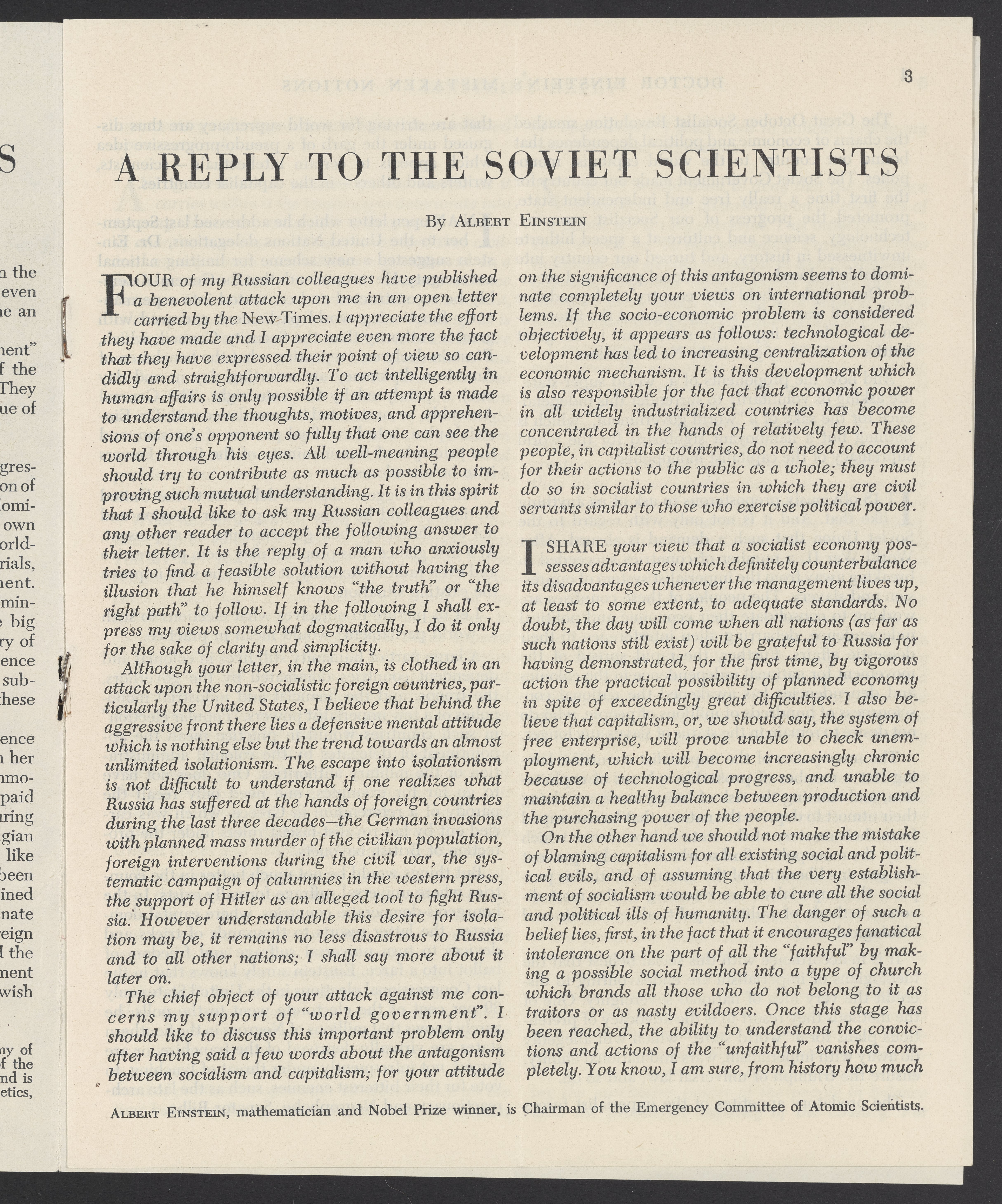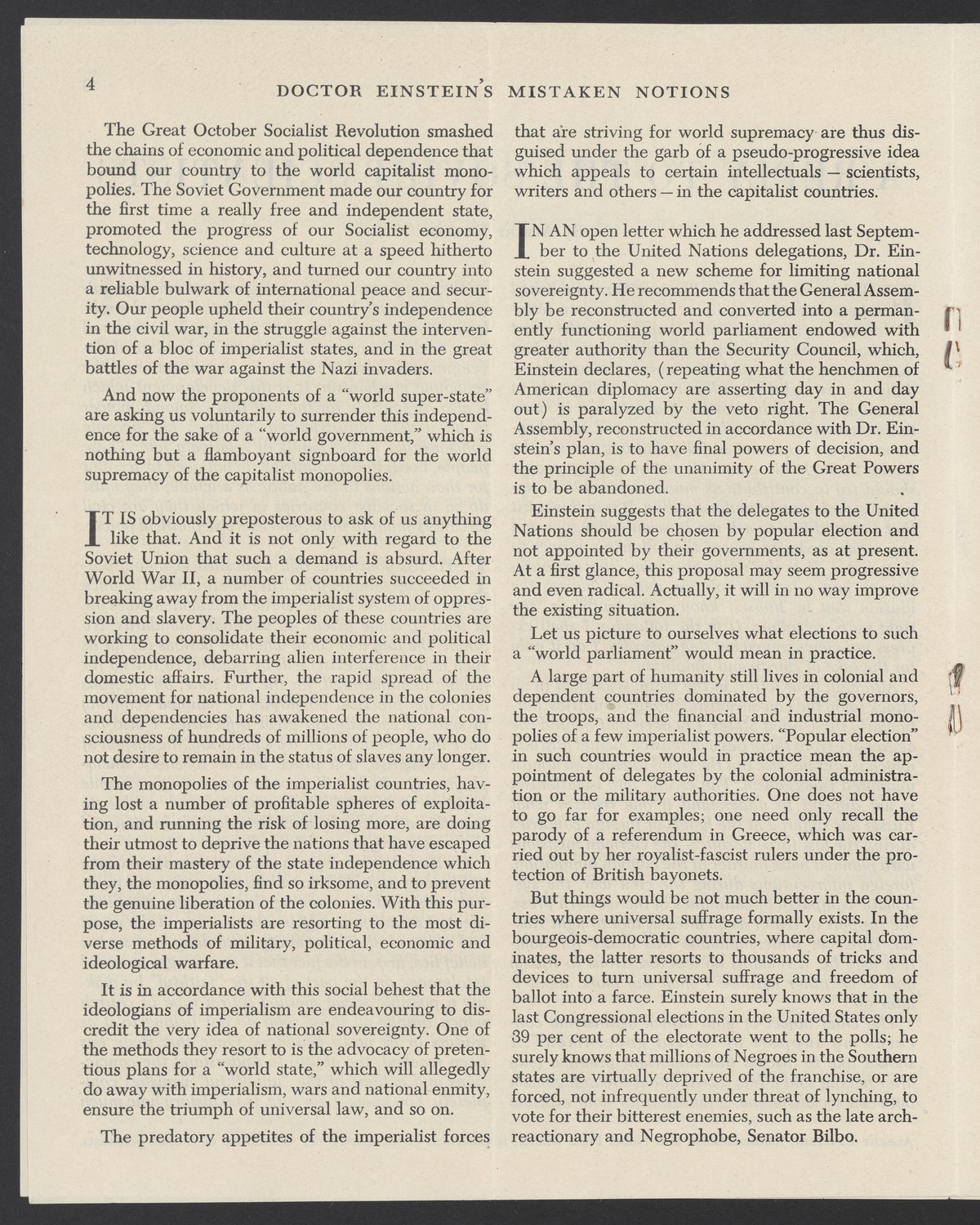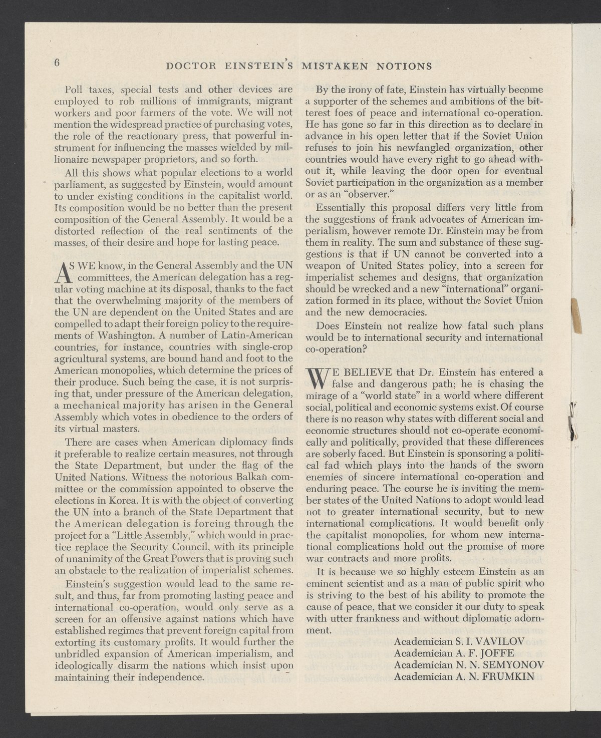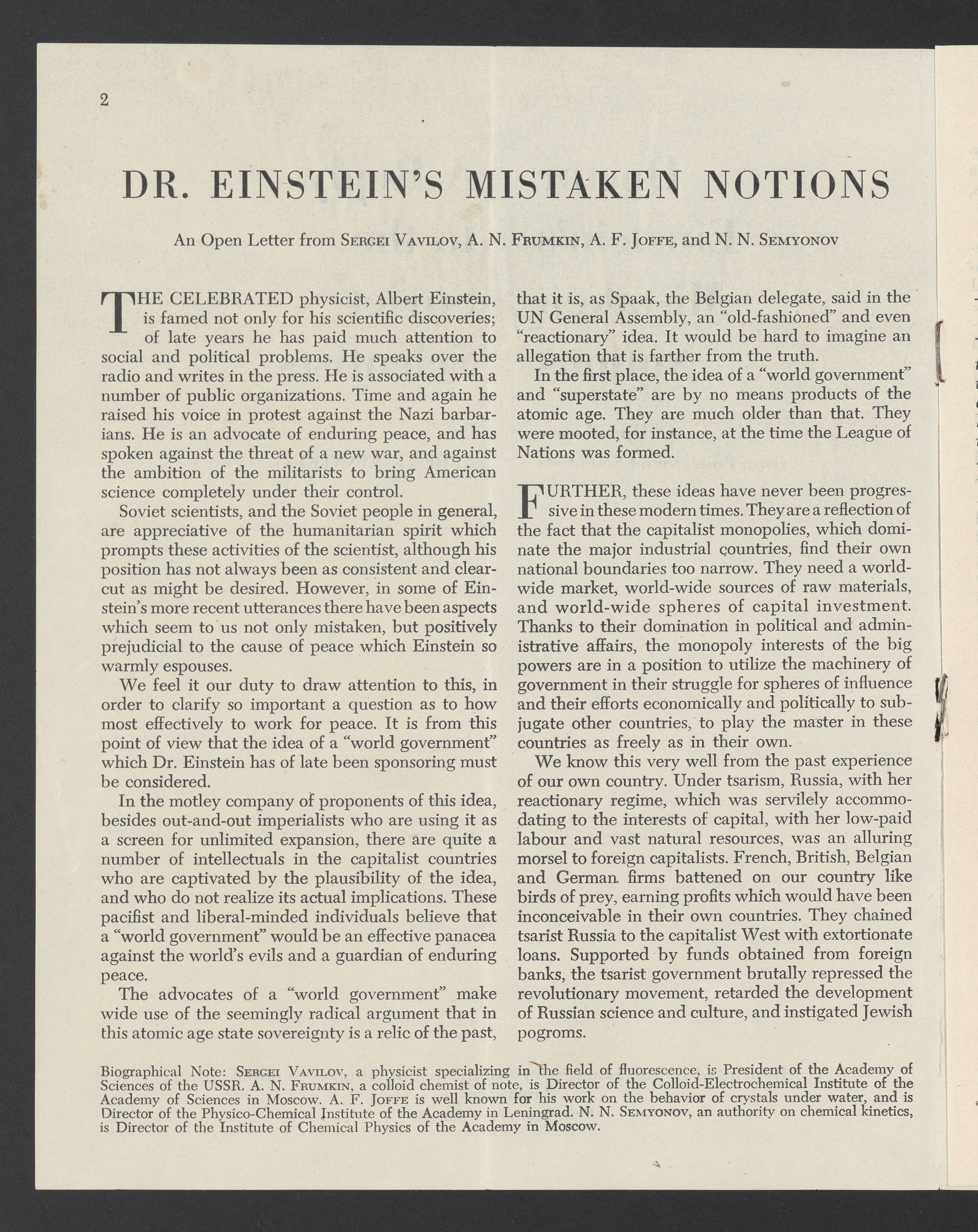 Doctor Einstein Mistaken Notions and A Reply to the Soviet Scientists