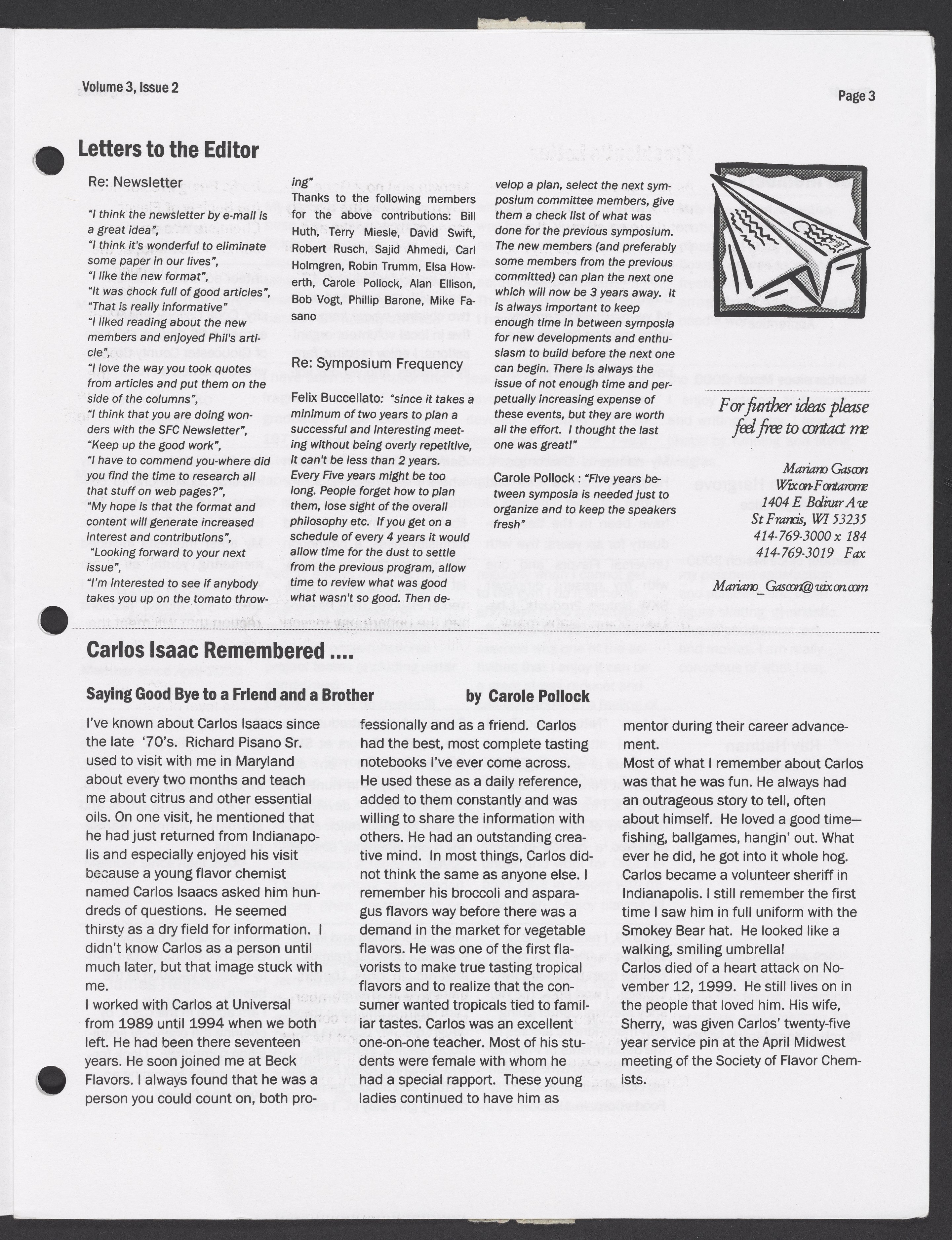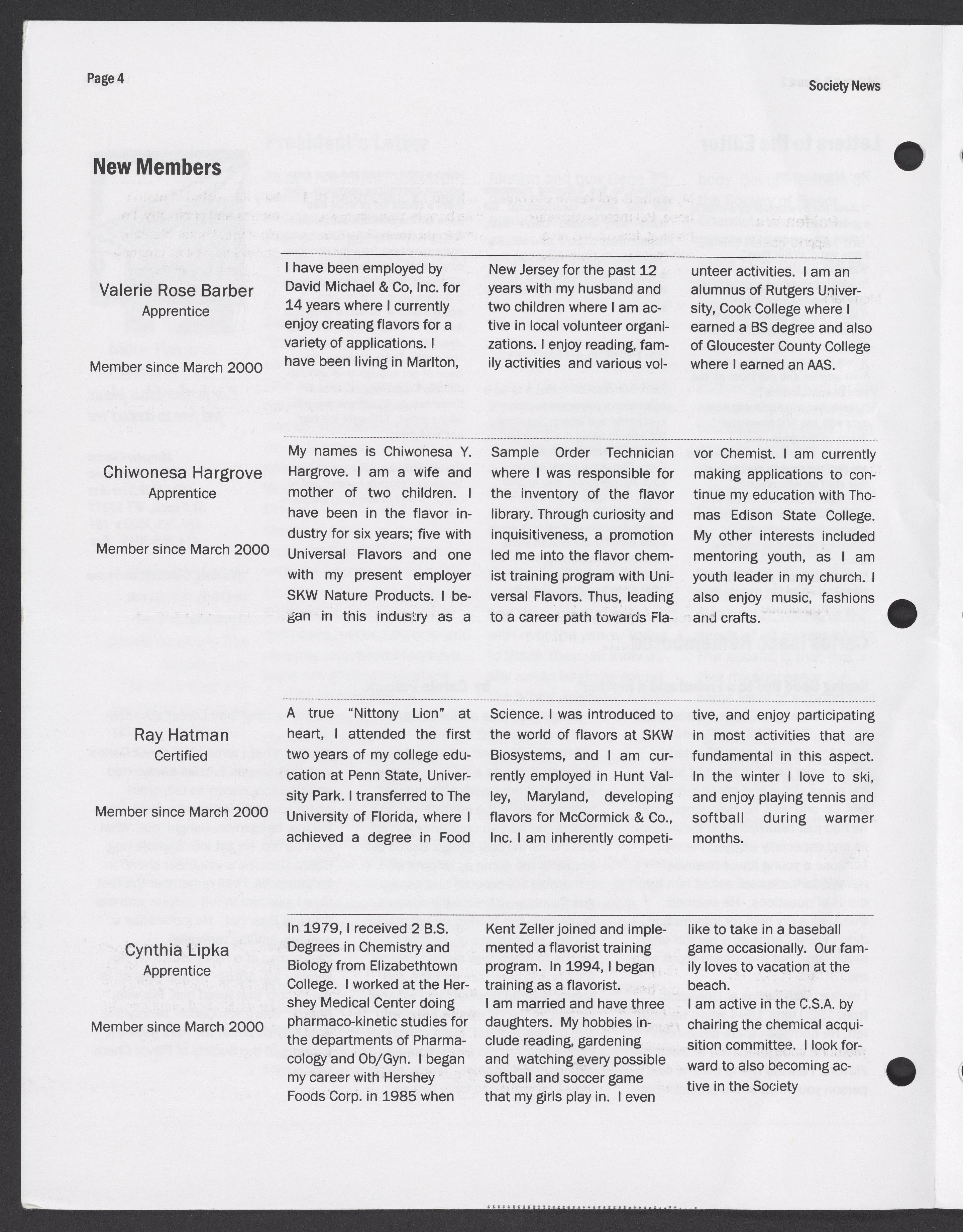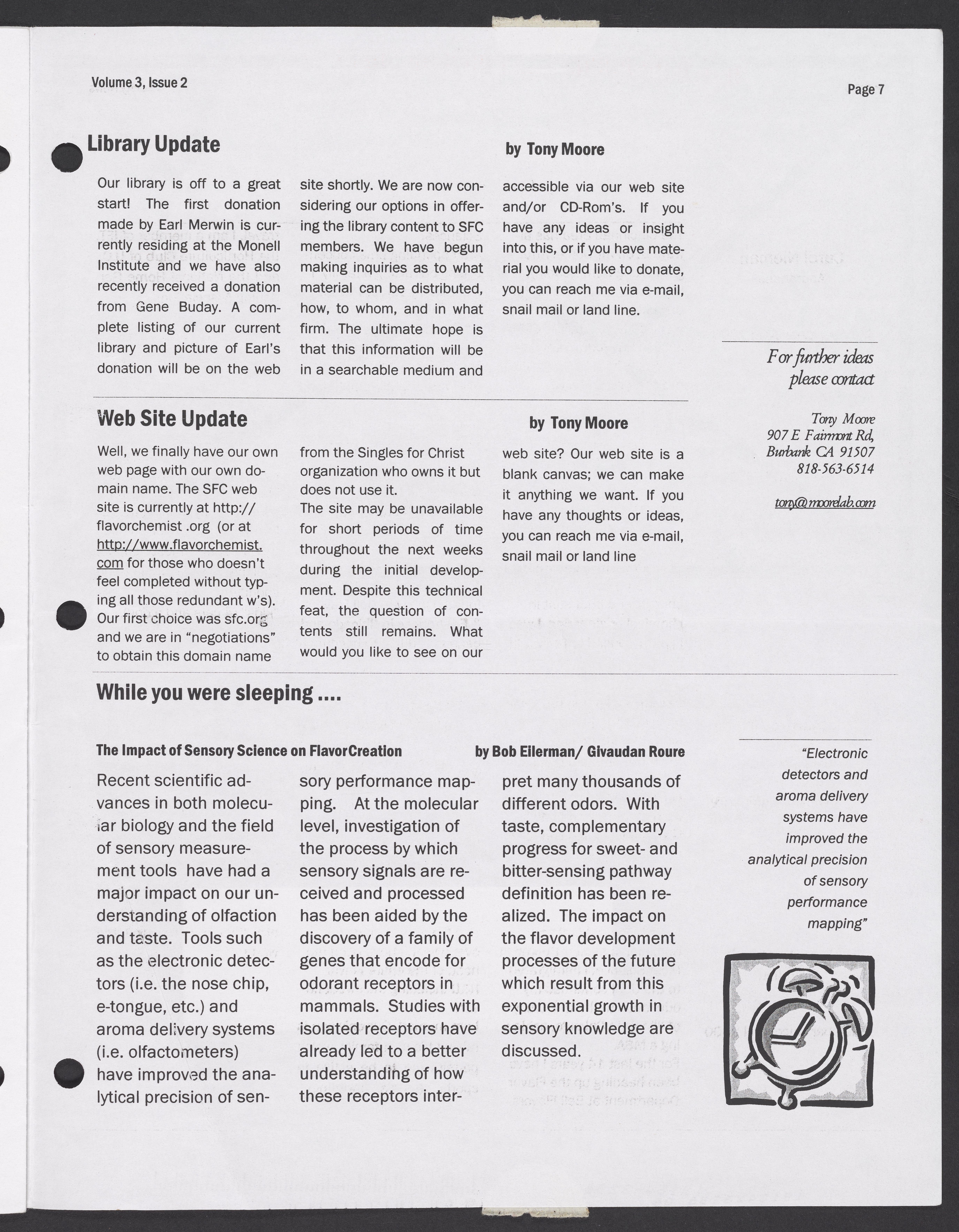 Small JPG1200 x 1554px — 366 KBLarge JPG2880 x 3730px — 1.7 MBFull-sized JPG5414 x 7012px — 5.4 MBOriginal fileTIFF — 5414 x 7012px — 109 MBSpring 2000 issue of the Society News, the Society of Flavor Chemists newsletter.