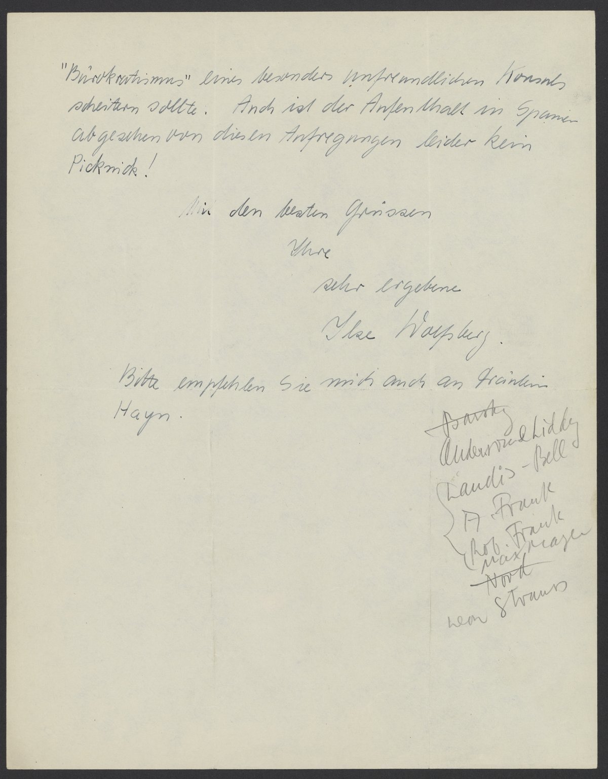 Bitten empfehlen Sie mich an Fräulein Hayn.
