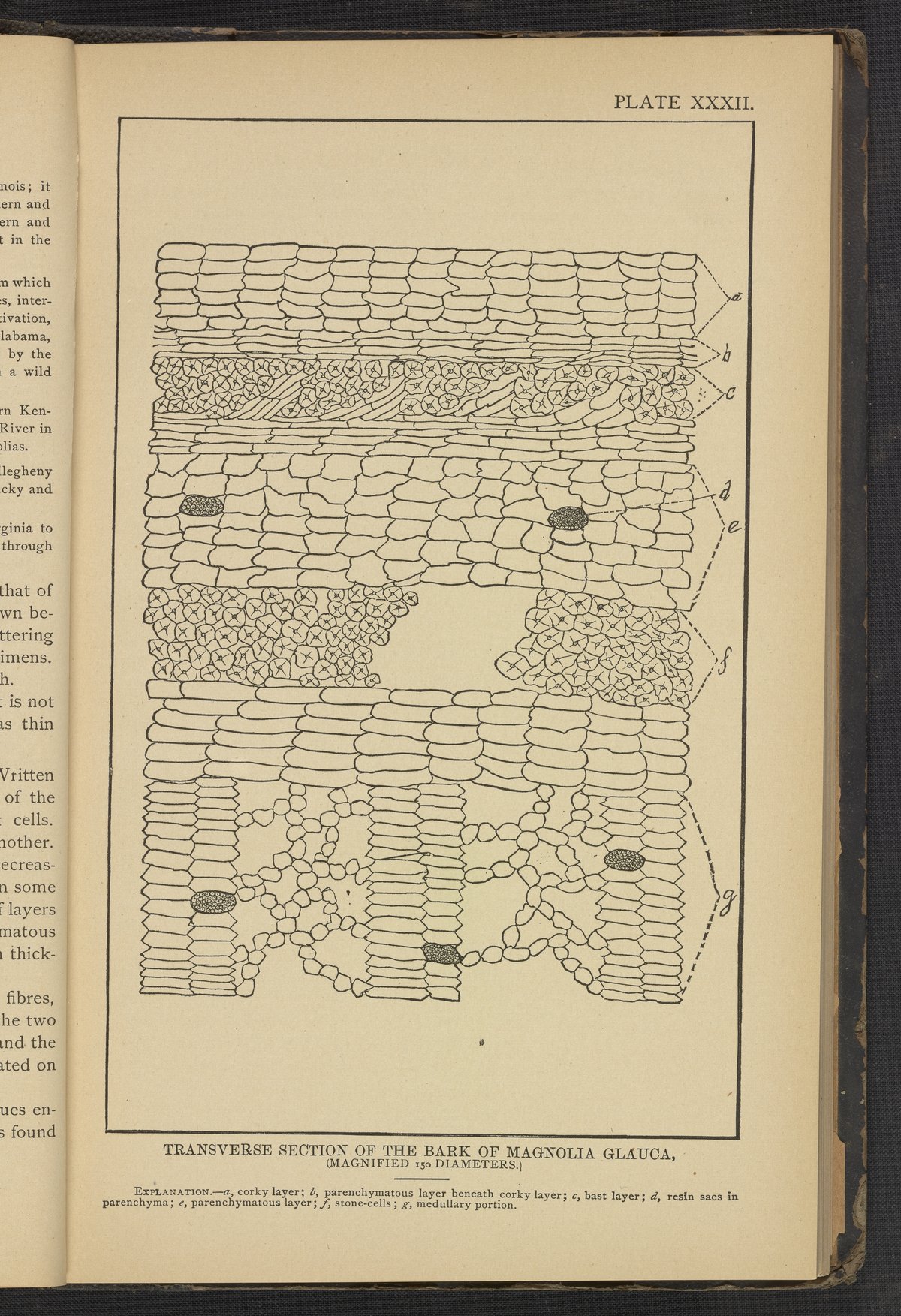 Plate XXXII: Transverse section of the bark of magnolia glauca