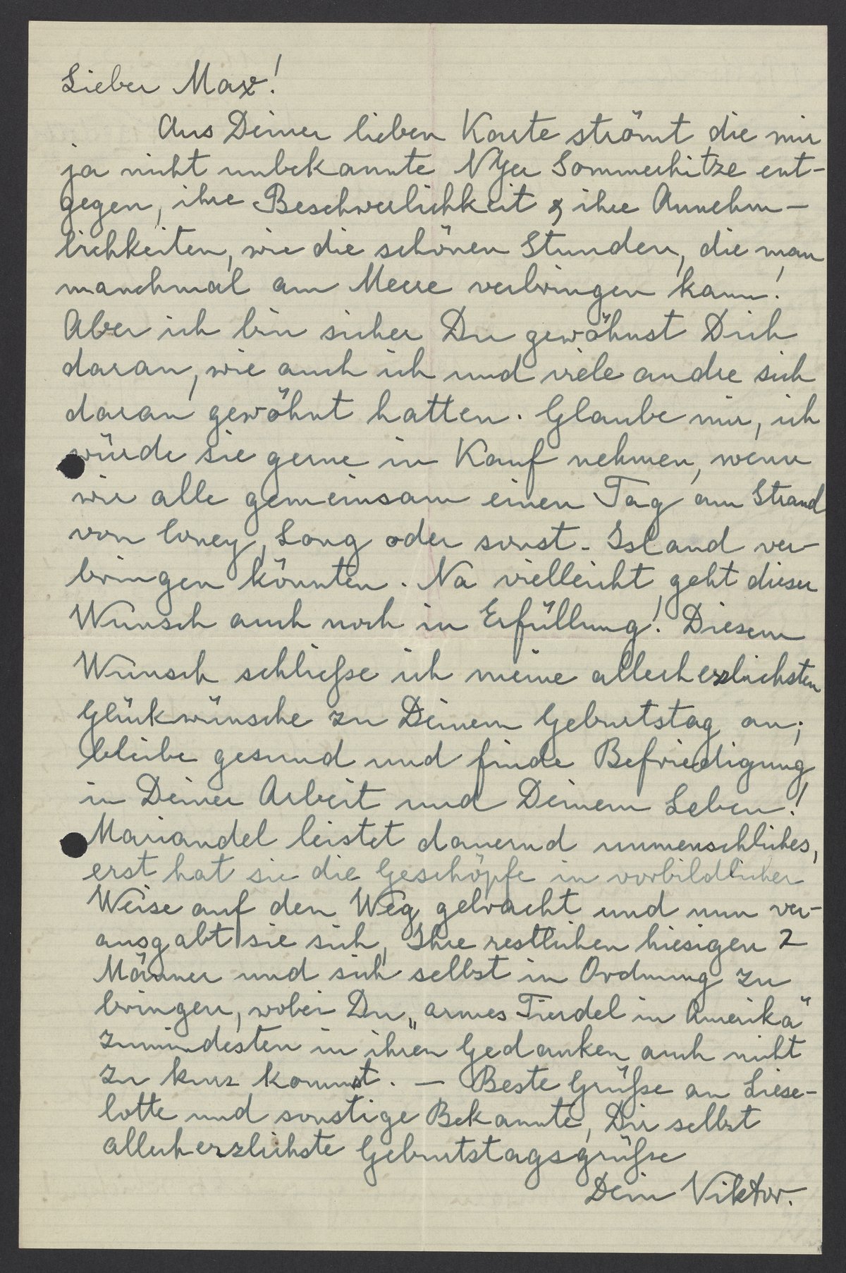 Letter from Marianne and Viktor Homburger to Max Bredig, June 11, 1939