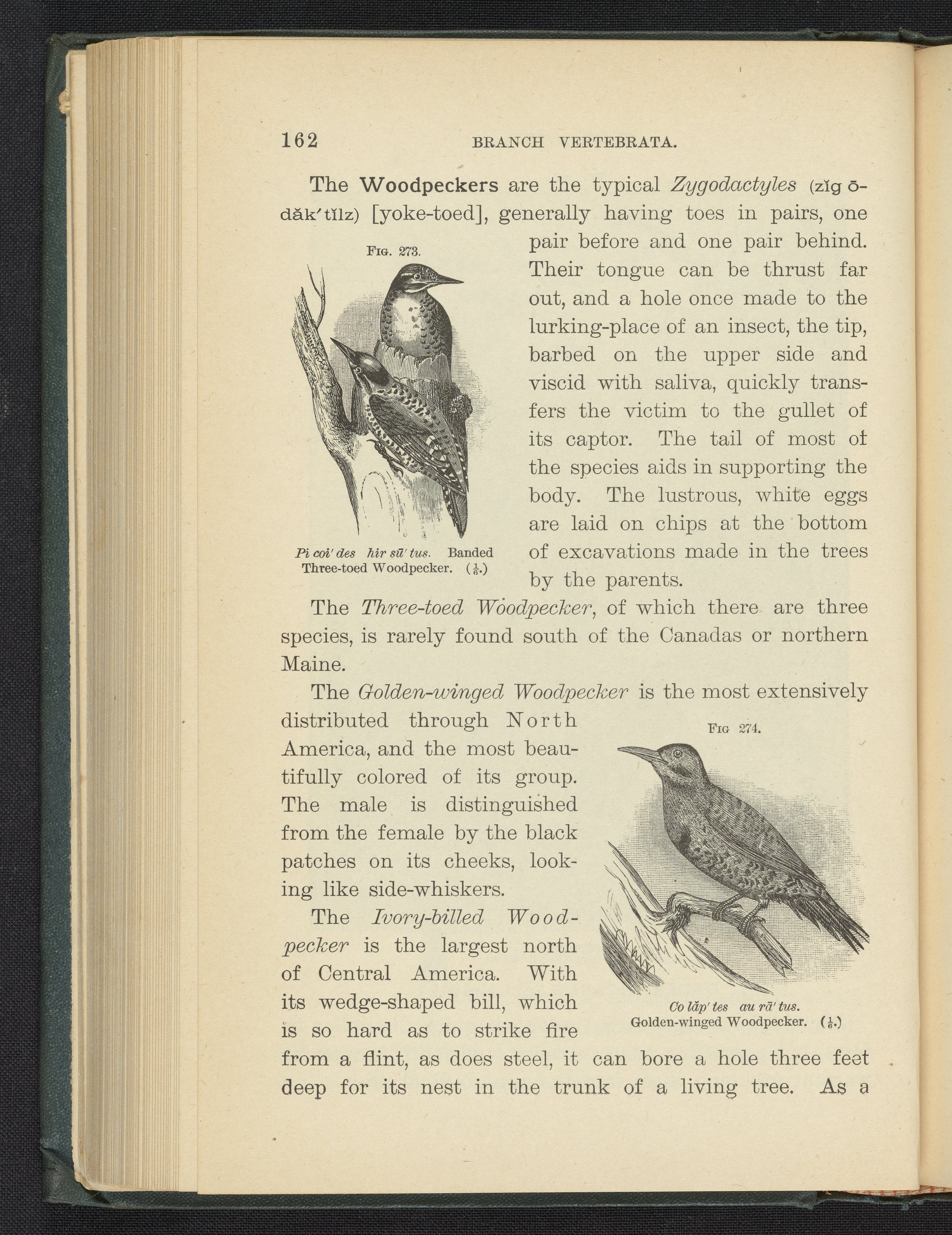 Steele, Joel Dorman, and Jenks, J. W. P. (John Whipple Potter). “Figure 273. Banded Three-Toed Woodpecker. Figure 274. Golden-Winged Woodpecker.” Popular Zoology. New York, New York: Chautauqua Press, 1887. https://digital.sciencehistory.org/works/2od0rto.