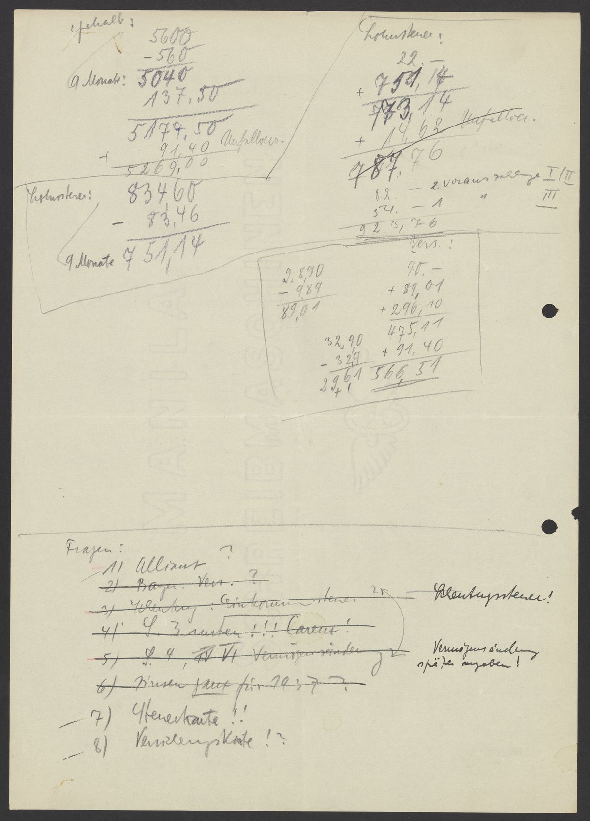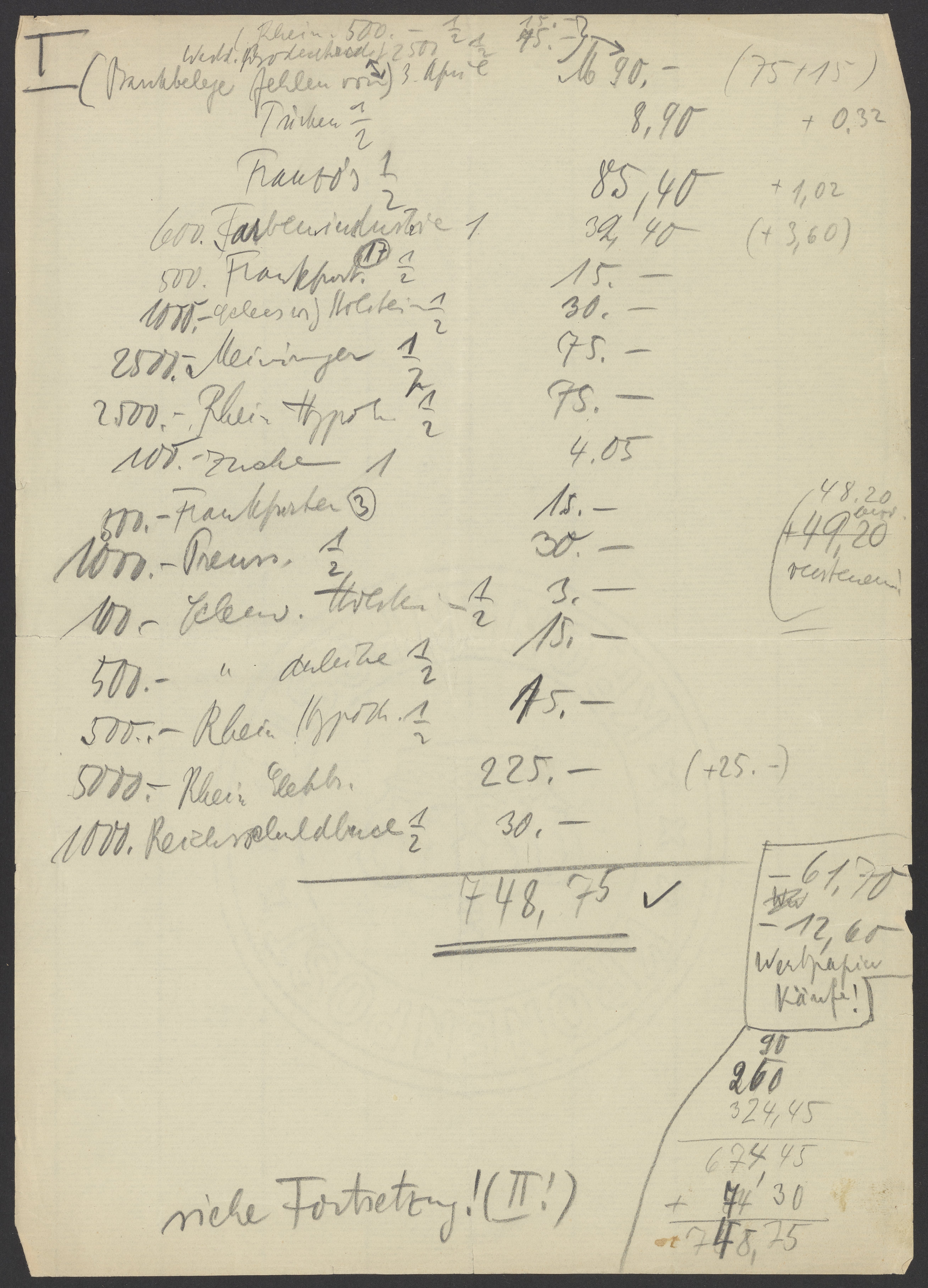 Financial documents of Max Bredig, undated
