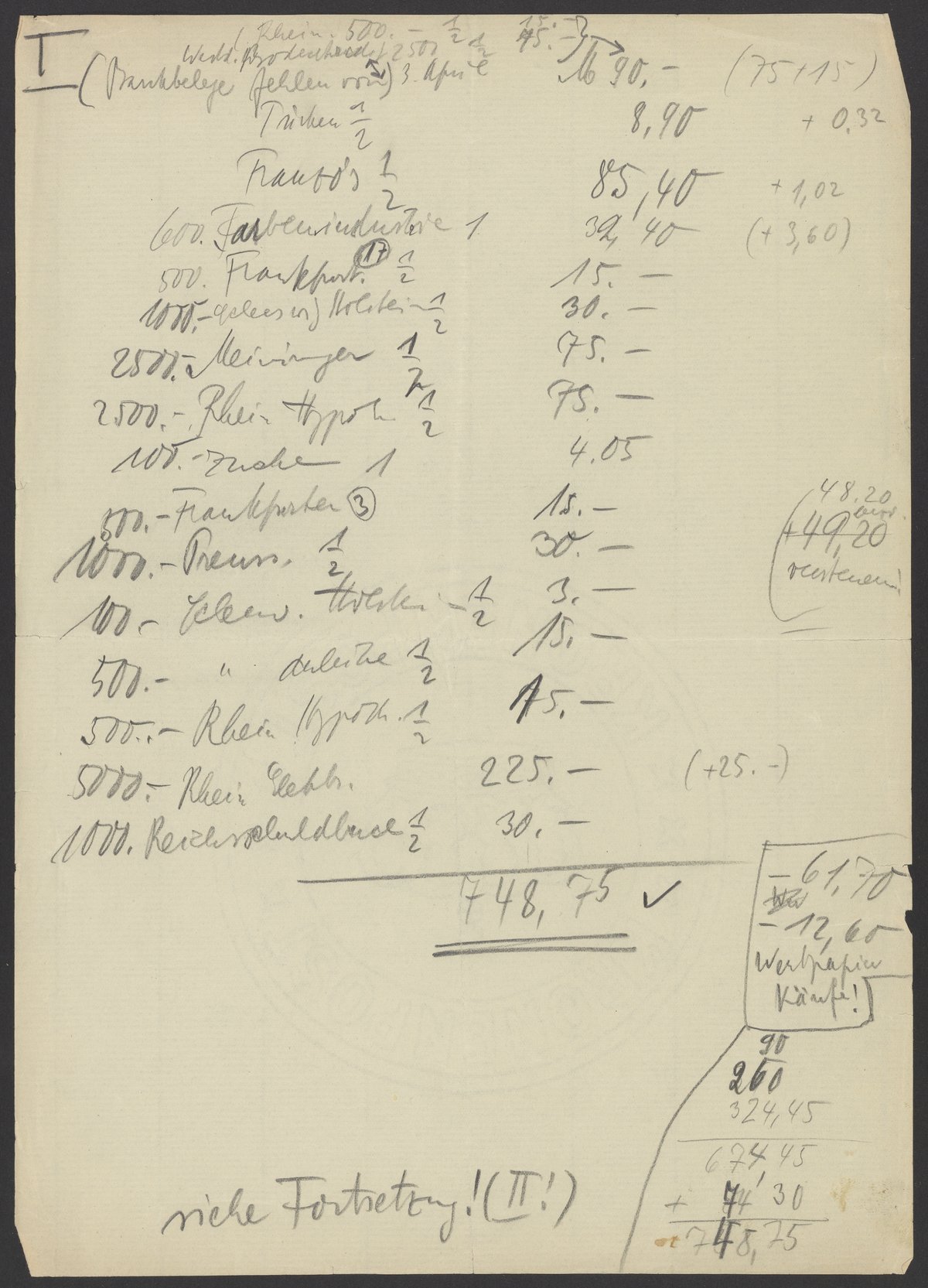Financial documents of Max Bredig, undated