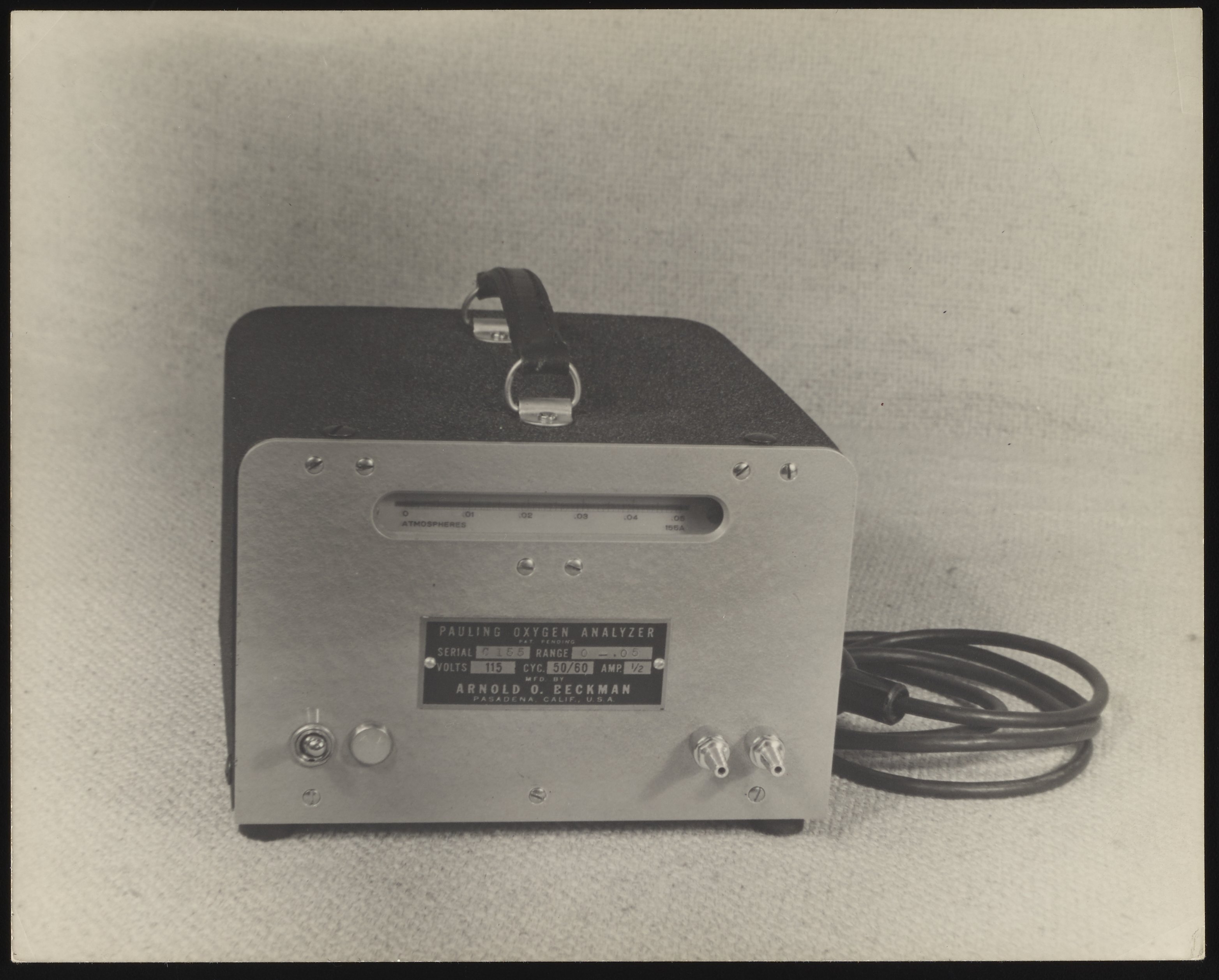 Small JPG1200 x 966px — 174 KBLarge JPG2880 x 2318px — 687 KBFull-sized JPG3158 x 2542px — 791 KBOriginal fileTIFF — 3158 x 2542px — 23.0 MBDeveloped from a Linus Pauling design during WWII, the technology behind Beckman Instruments’ oxygen analyzers ended up doing such diverse jobs as monitoring astronauts’ respiration, maintaining packaged food safety, and preventing blindness in newborn babies.